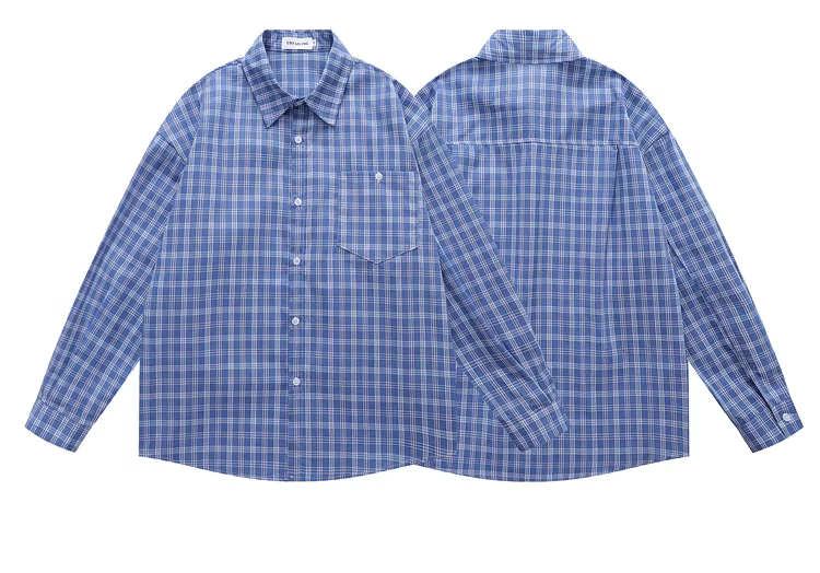 - Áo sơ mi dài tay kẻ caro màu xanh từ sao Hỏa Thiết kế giản dị Áo sơ mi cổ điển dáng rộng phong cách lười biếng Ins