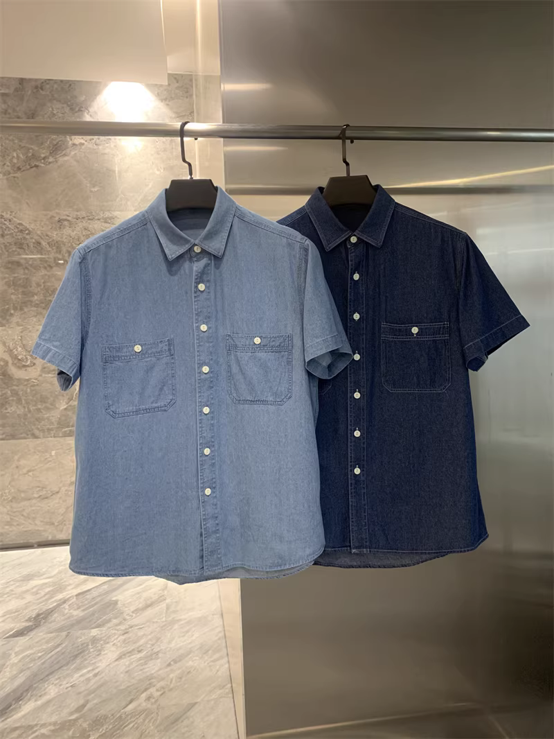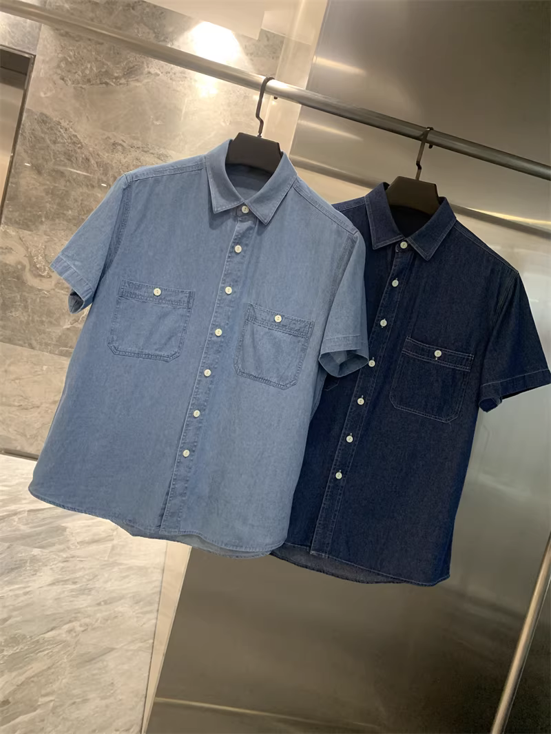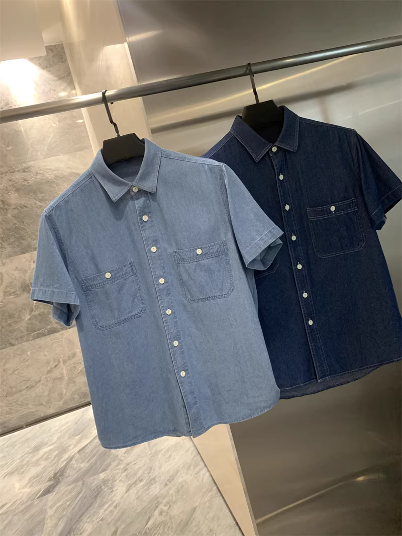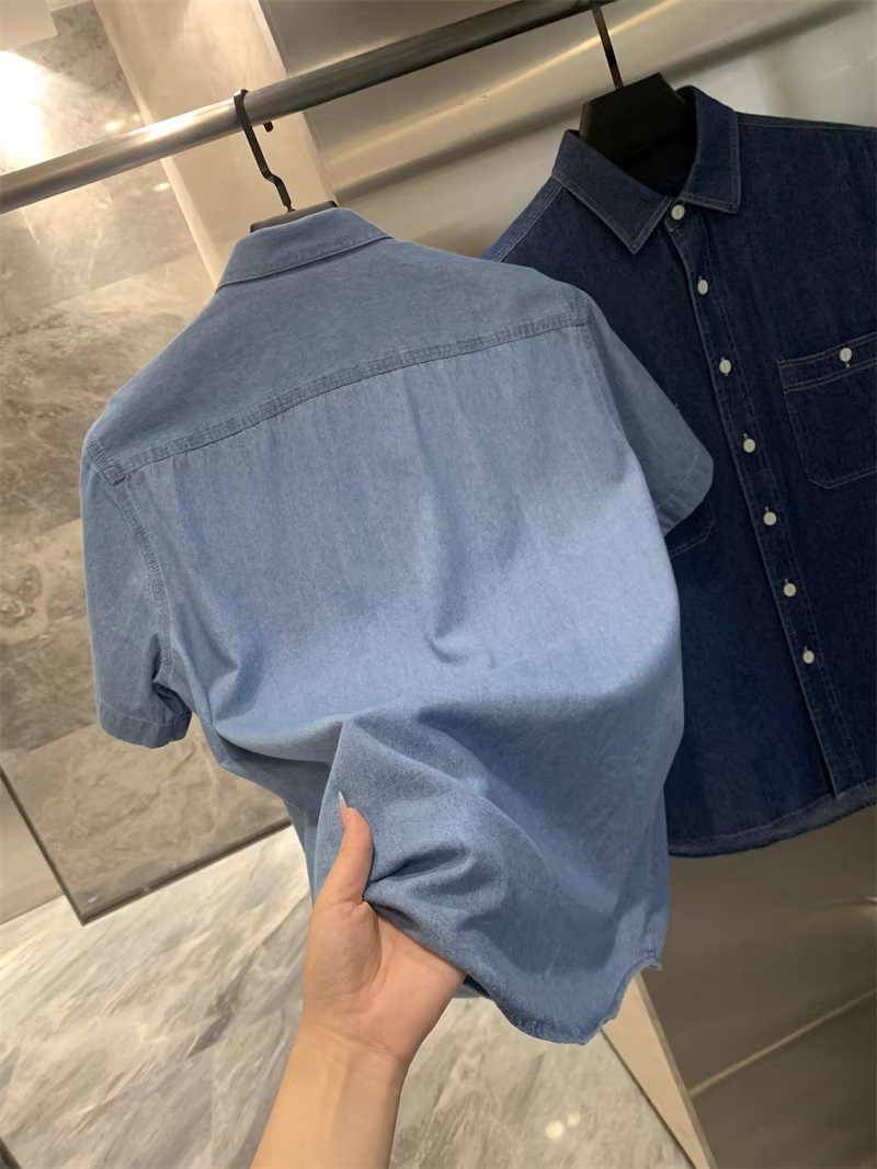 Áo sơ mi denim cổ trụ tay ngắn phong cách cổ điển Don Quixote! Chất liệu denim 100% cotton, đã qua xử lý enzyme! Áo sơ mi denim đa năng, phong cách thường ngày dành cho nam.