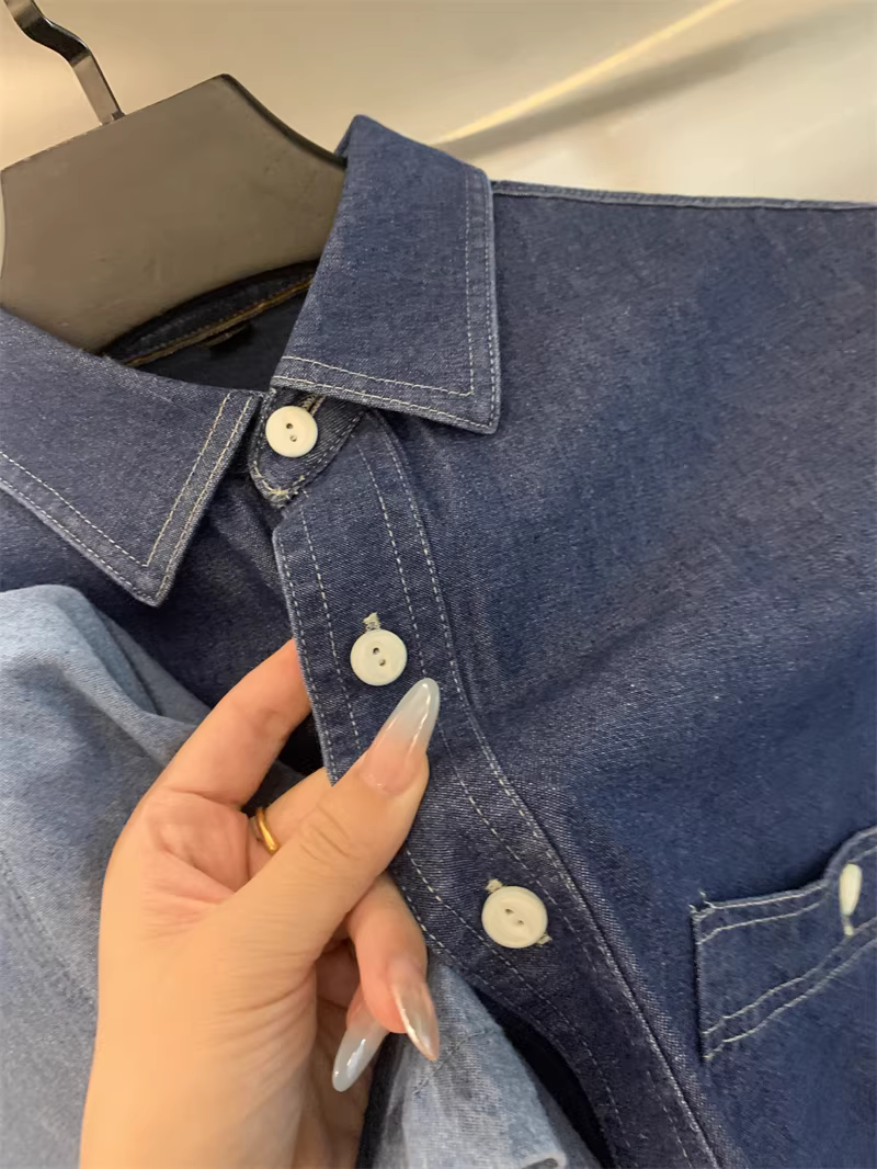 - Áo sơ mi denim cổ trụ tay ngắn phong cách cổ điển Don Quixote! Chất liệu denim 100% cotton, đã qua xử lý enzyme! Áo sơ mi denim đa năng, phong cách thường ngày dành cho nam.