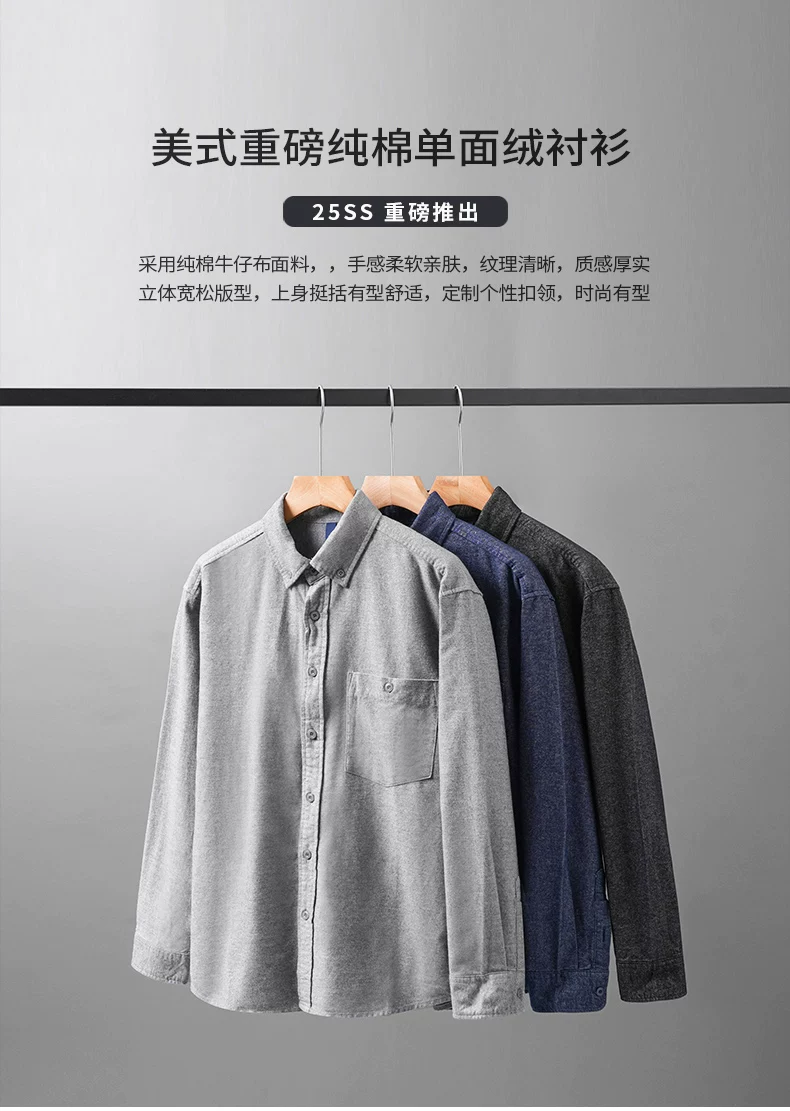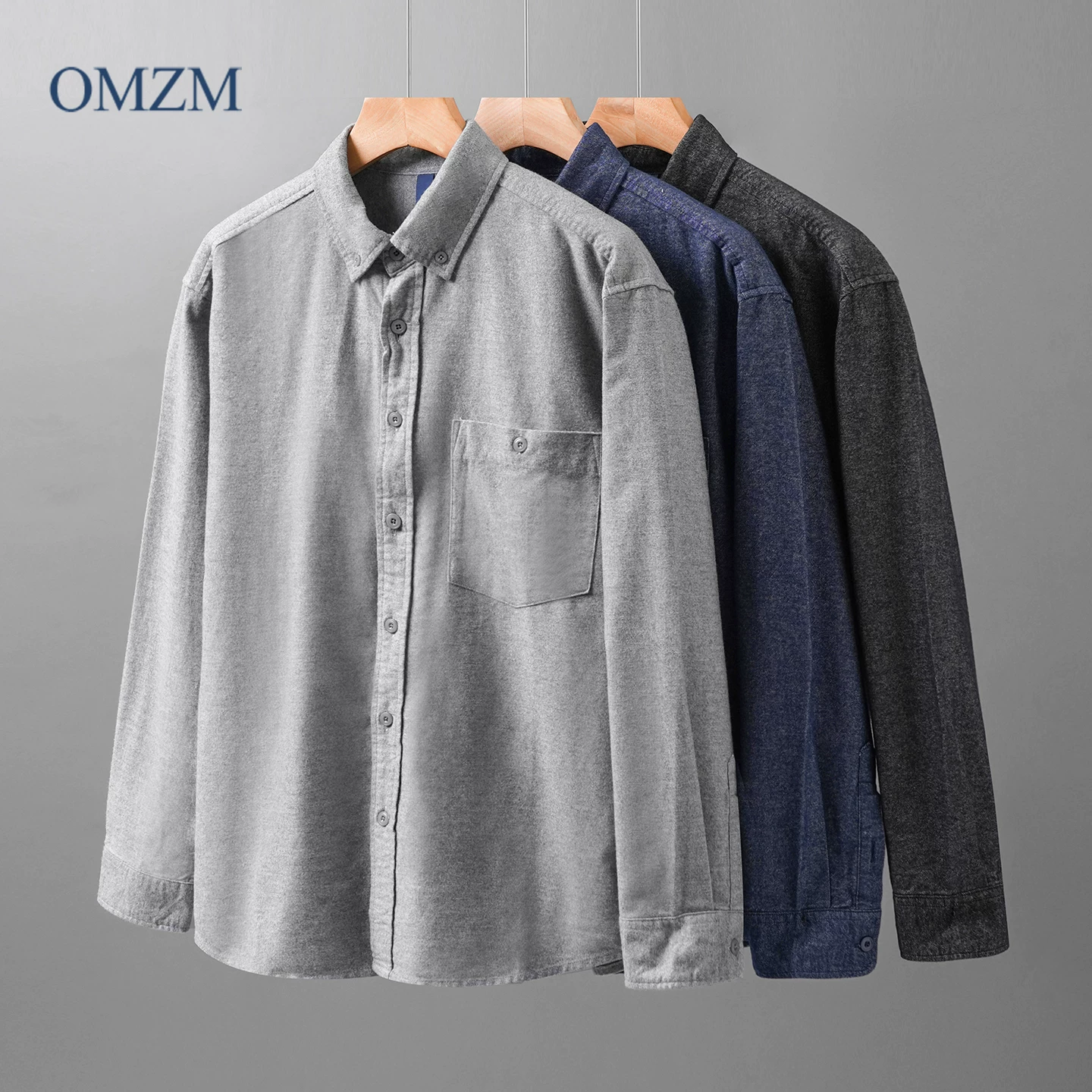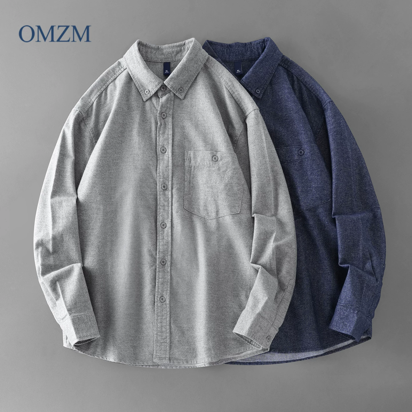 - Áo sơ mi denim cotton nguyên chất hạng nặng OMZM dành cho nam, mùa thu đông phong cách Mỹ áo sơ mi cao cấp có túi màu trơn có túi