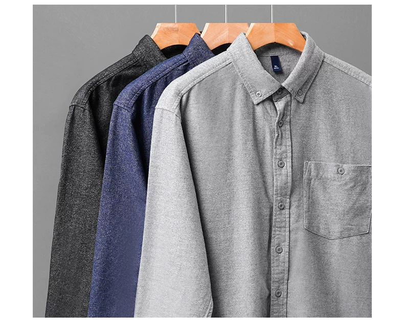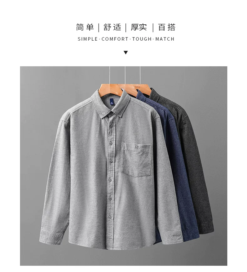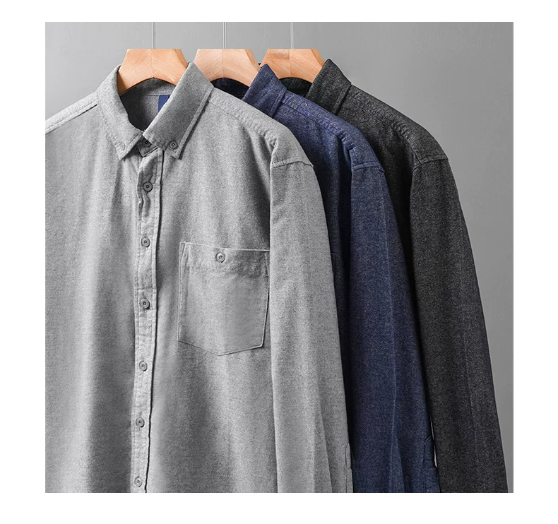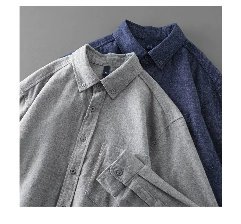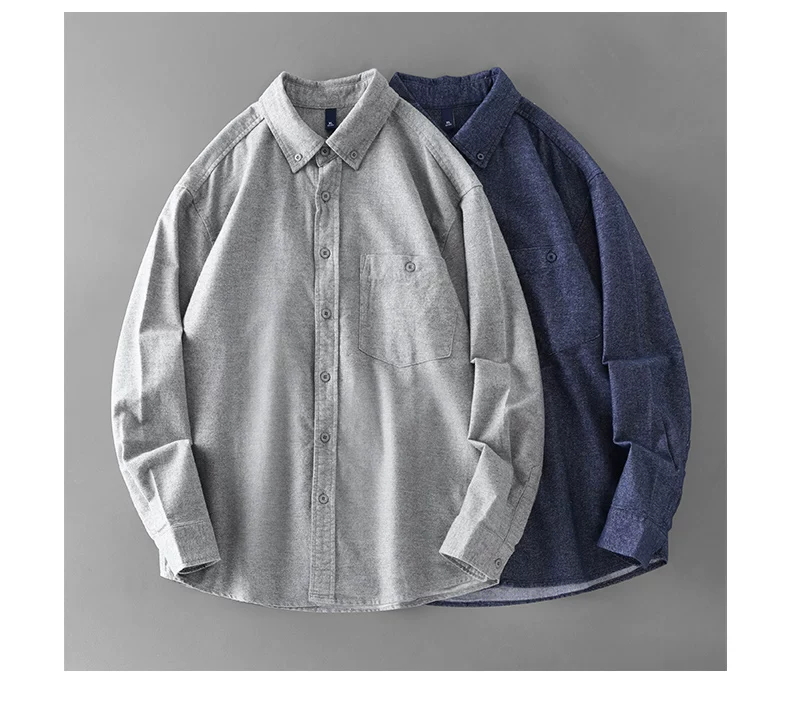 - Áo sơ mi denim cotton nguyên chất hạng nặng OMZM dành cho nam, mùa thu đông phong cách Mỹ áo sơ mi cao cấp có túi màu trơn có túi