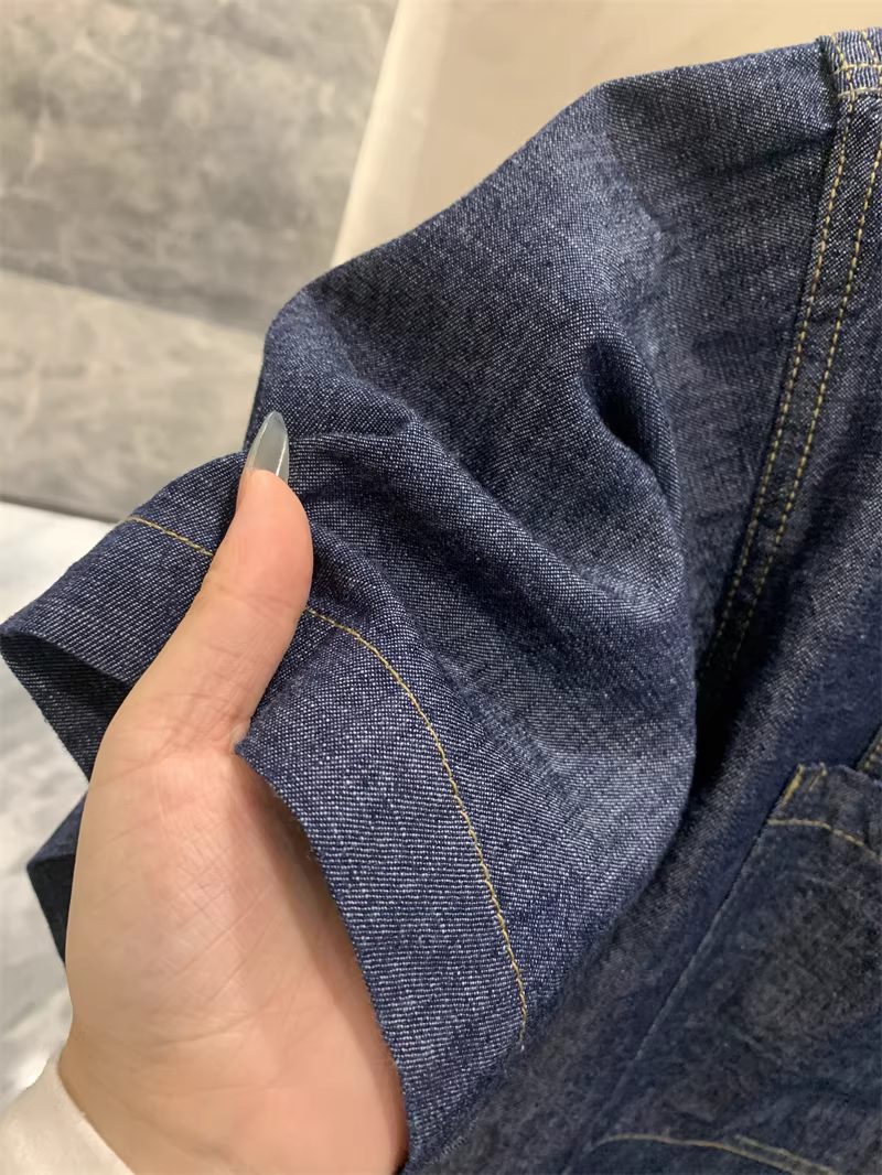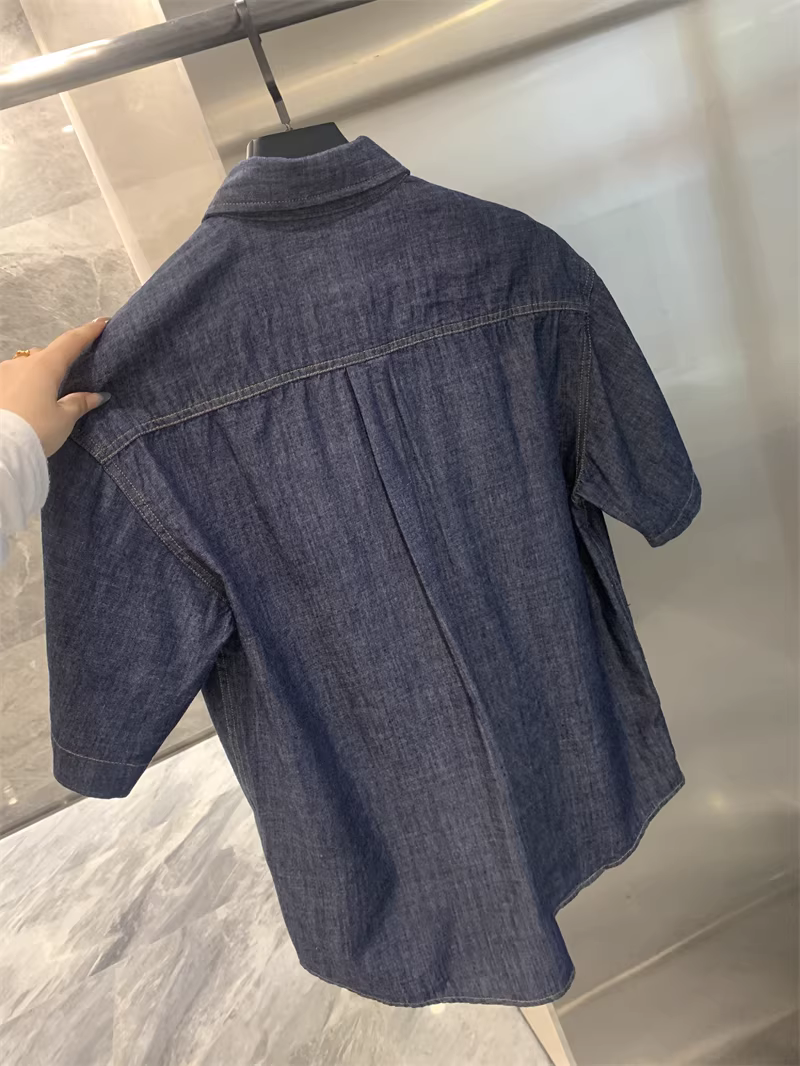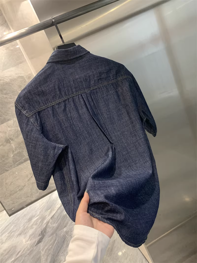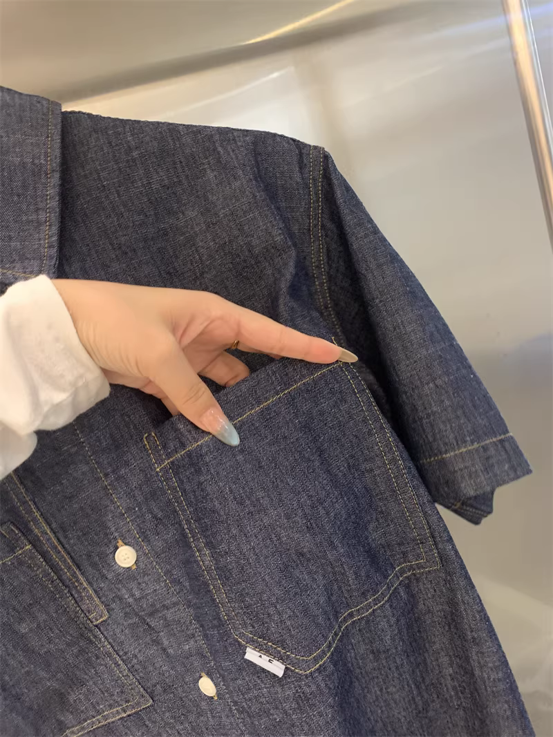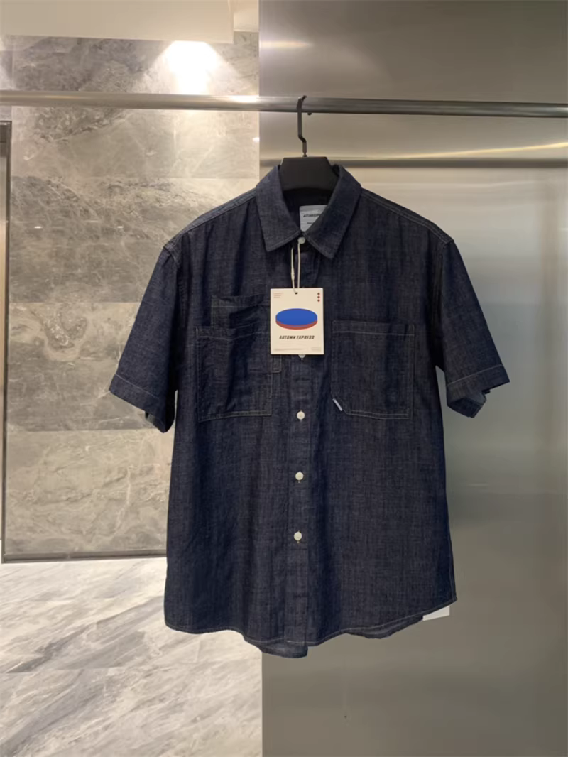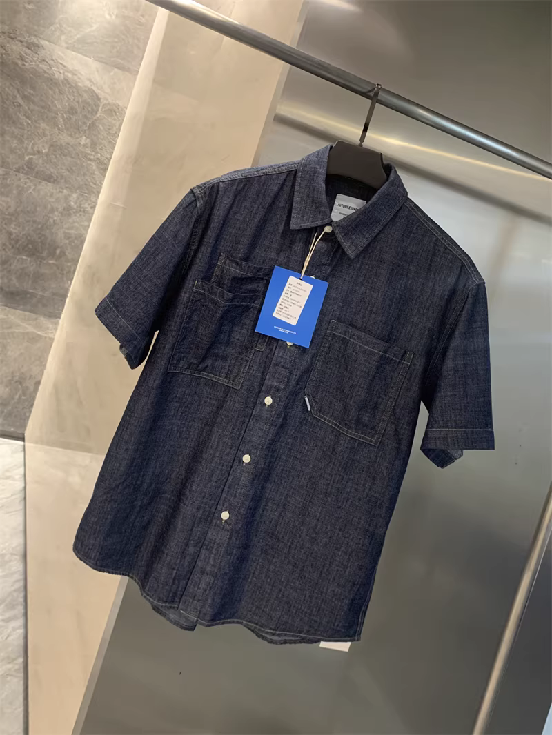 Áo sơ mi denim ngắn tay nam mùa hè, kiểu dáng Mỹ, phong cách Don Quixote, đã qua xử lý làm cũ!