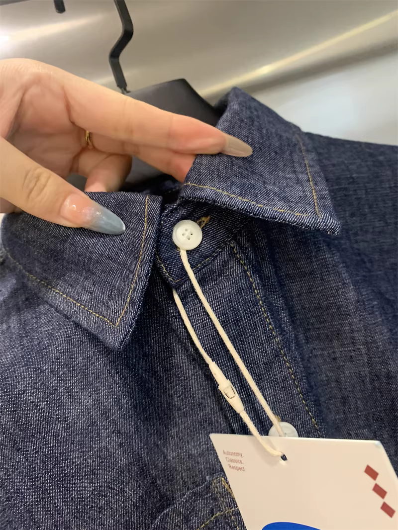 - Áo sơ mi denim ngắn tay nam mùa hè, kiểu dáng Mỹ, phong cách Don Quixote, đã qua xử lý làm cũ!