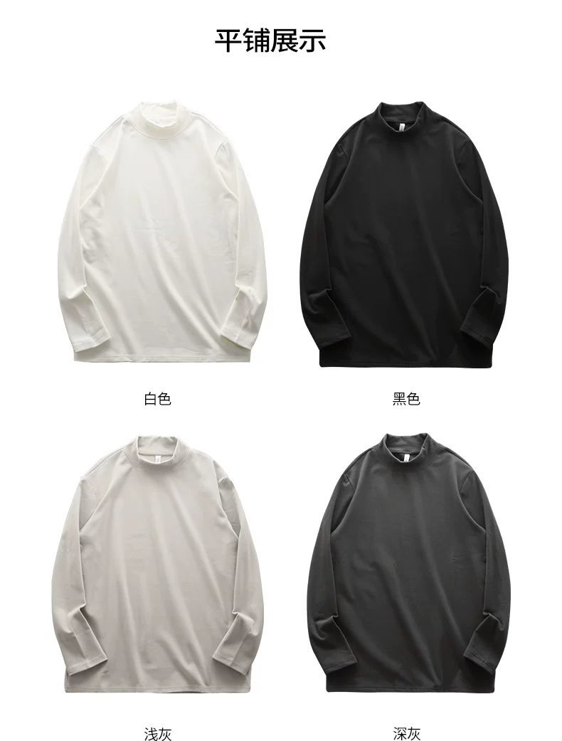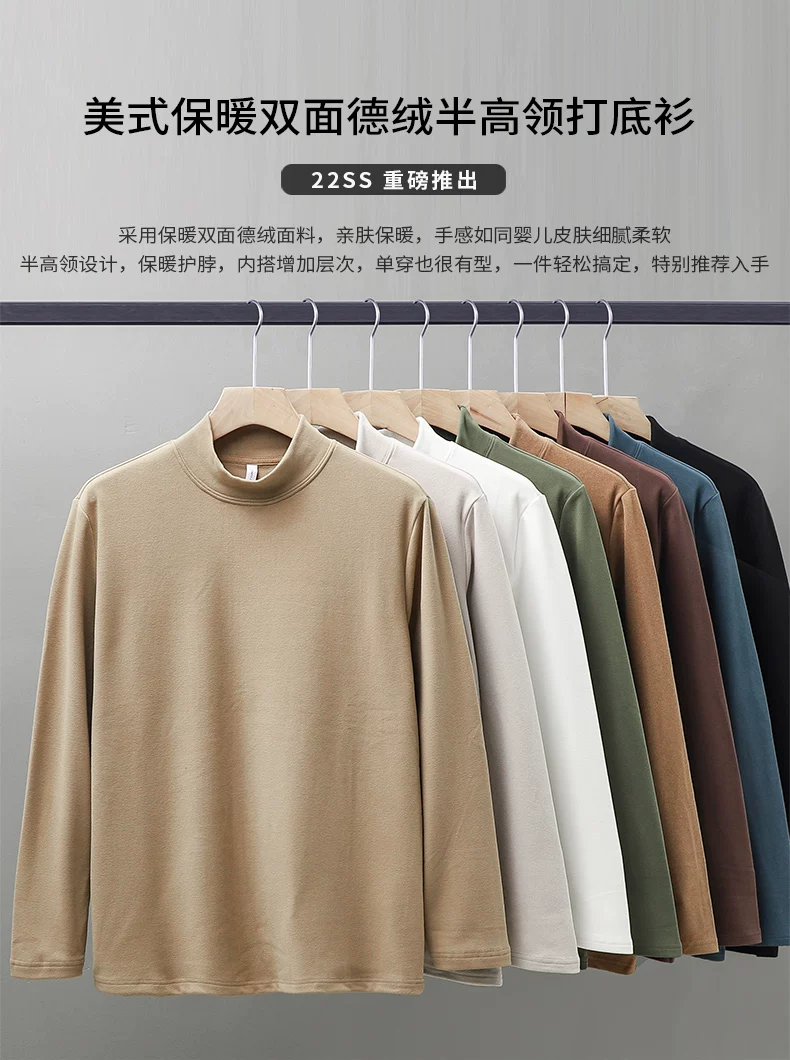 Áo sơ mi giữ nhiệt cổ cao nửa cổ kiểu Mỹ cổ điển dành cho nam, áo nỉ dài tay dày dặn hai mặt có cổ giữa ấm áp mùa thu đông 320G