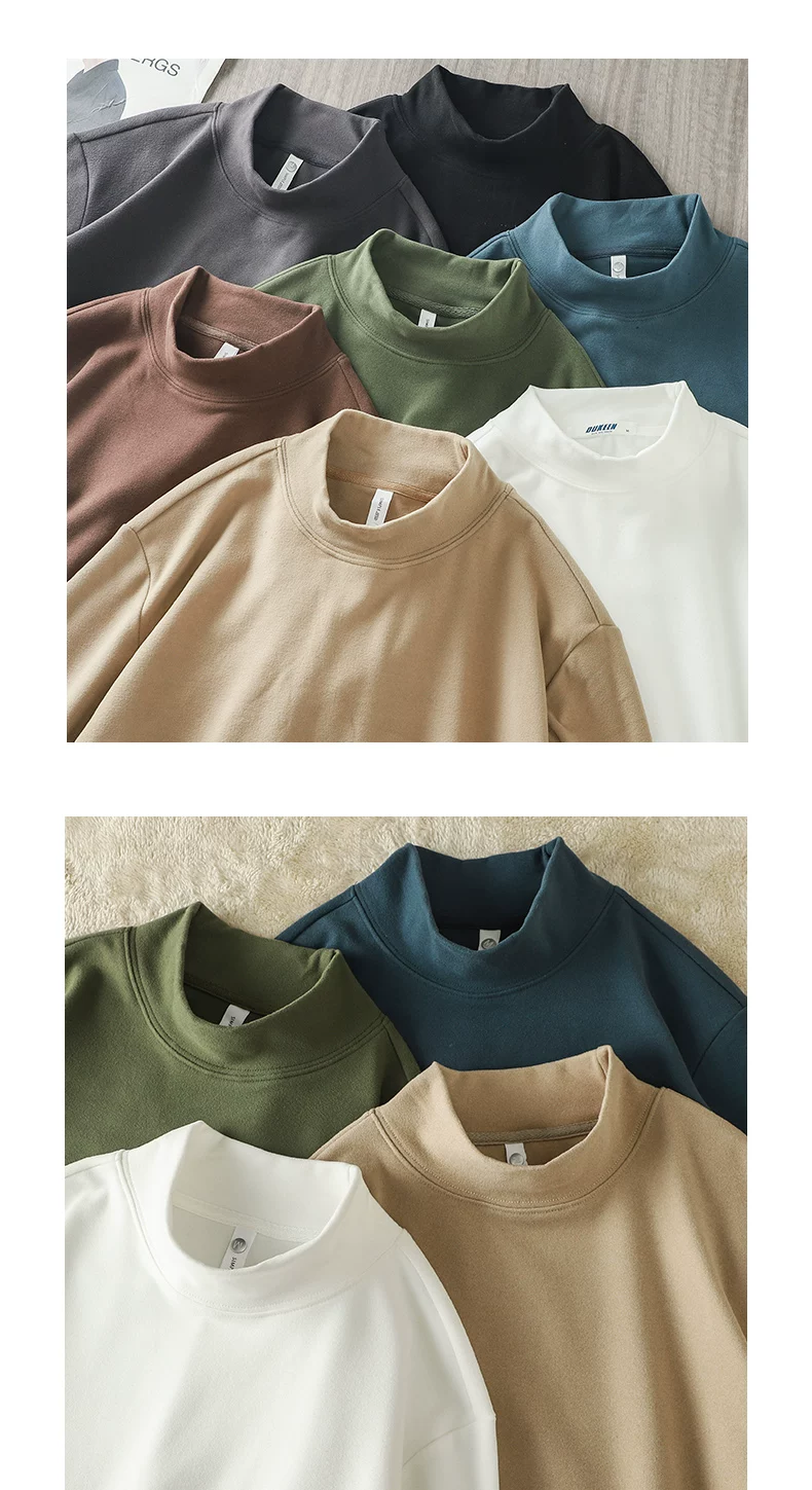 - Áo sơ mi giữ nhiệt cổ cao nửa cổ kiểu Mỹ cổ điển dành cho nam, áo nỉ dài tay dày dặn hai mặt có cổ giữa ấm áp mùa thu đông 320G