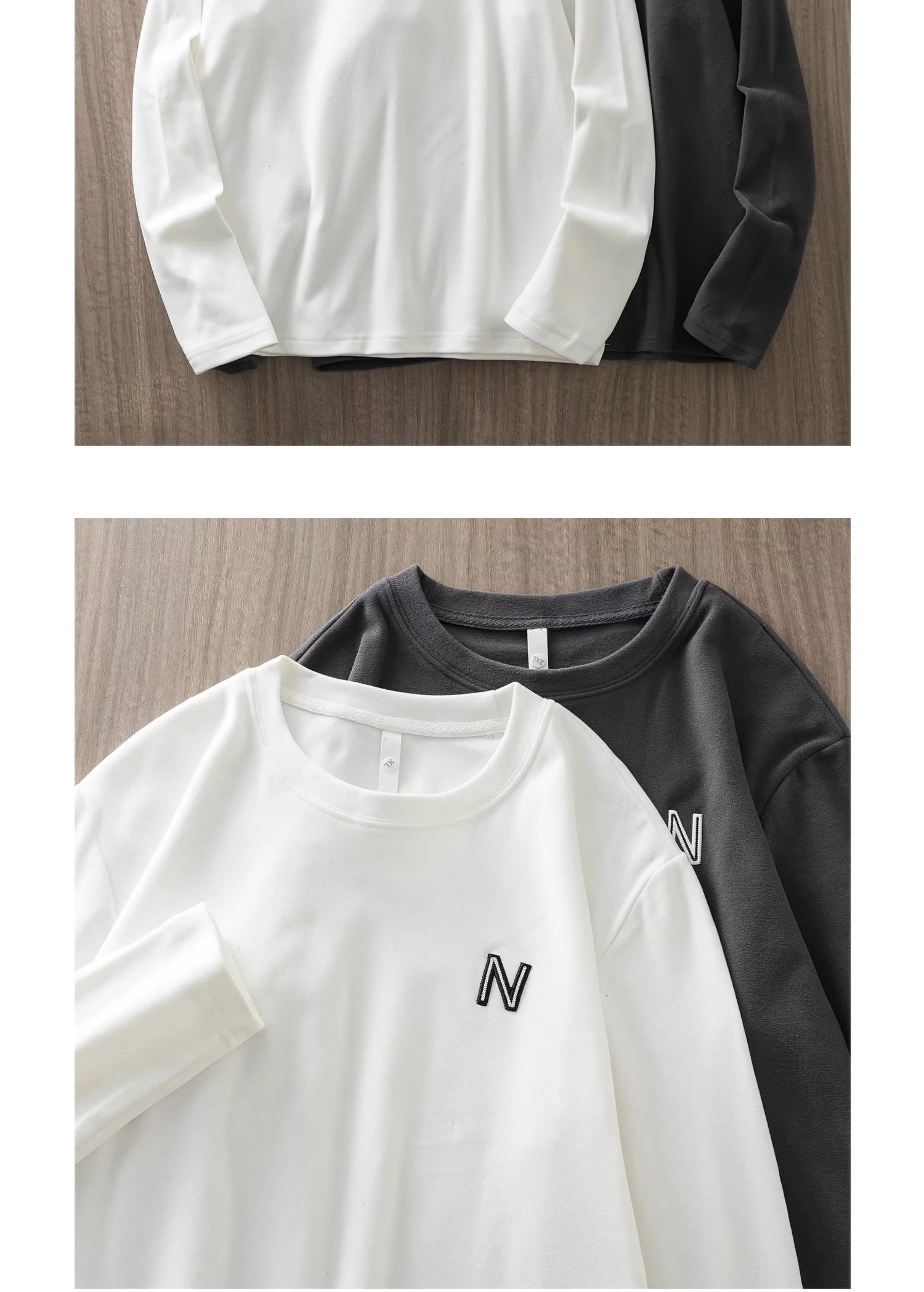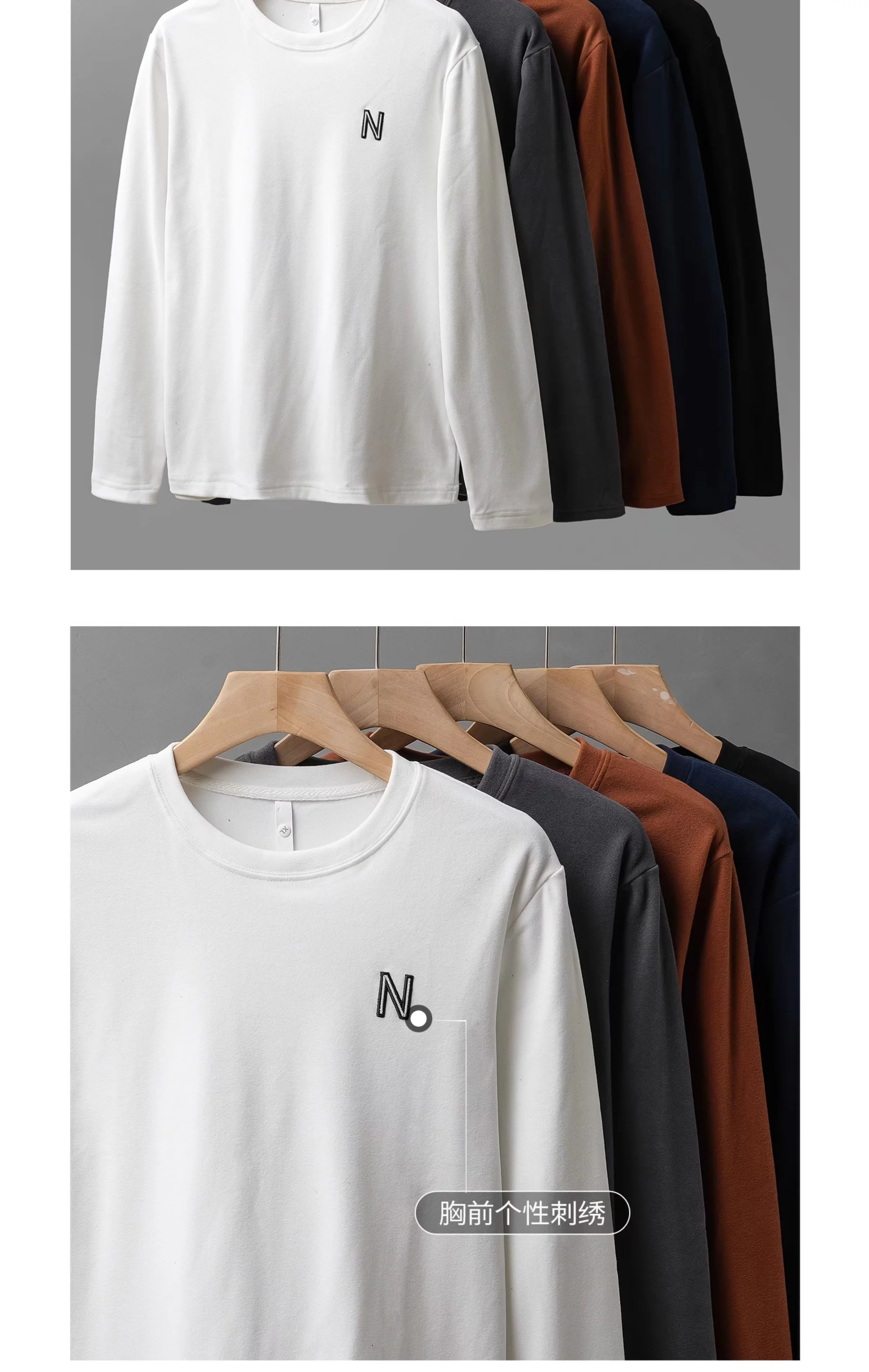 Áo sơ mi giữ nhiệt hai mặt OMZM dành cho nam, áo thun dài tay thêu mùa đông mới, dày dặn và ấm áp, áo len cổ tròn mặc bên trong.