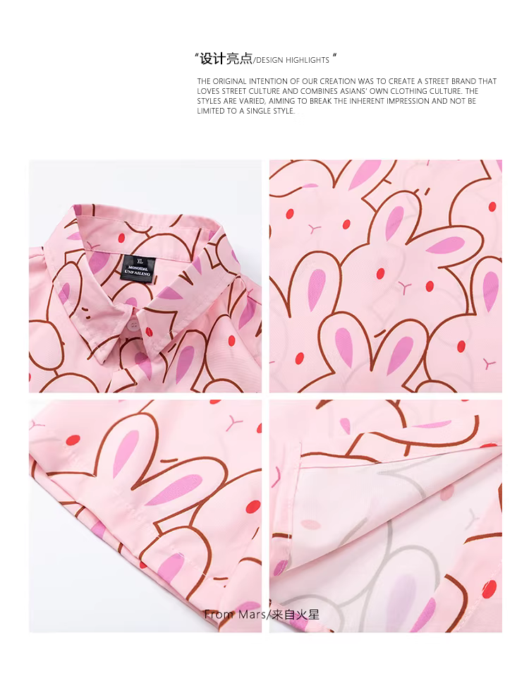 - Áo sơ mi in hình thỏ phong cách Nhật Bản từ sao Hỏa, dáng rộng, kiểu cặp đôi, phong cách đại học, áo sơ mi ngắn tay đa năng, phong cách giản dị