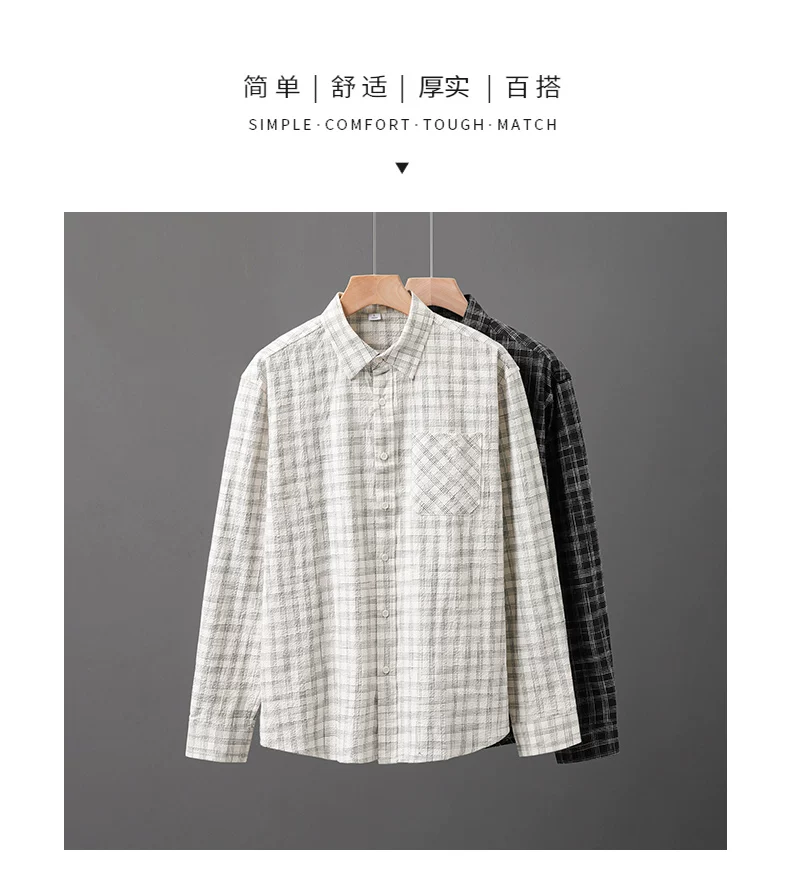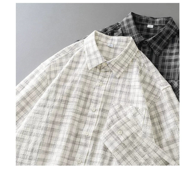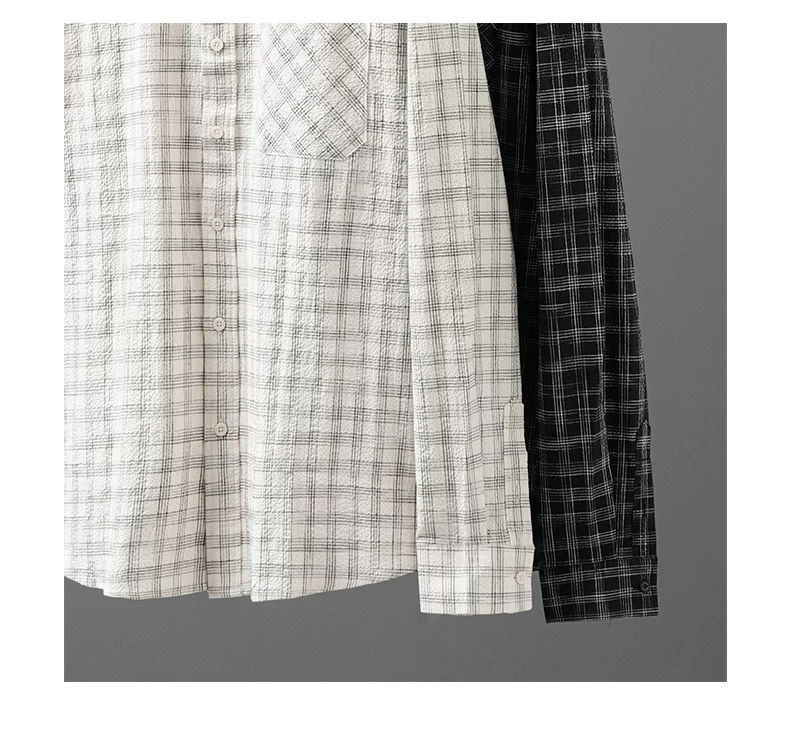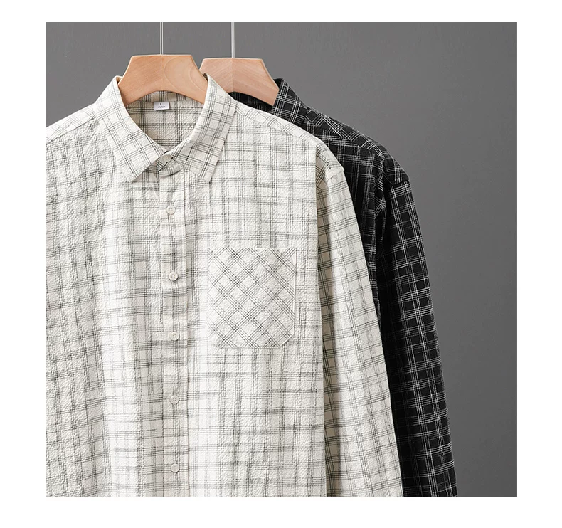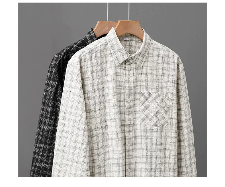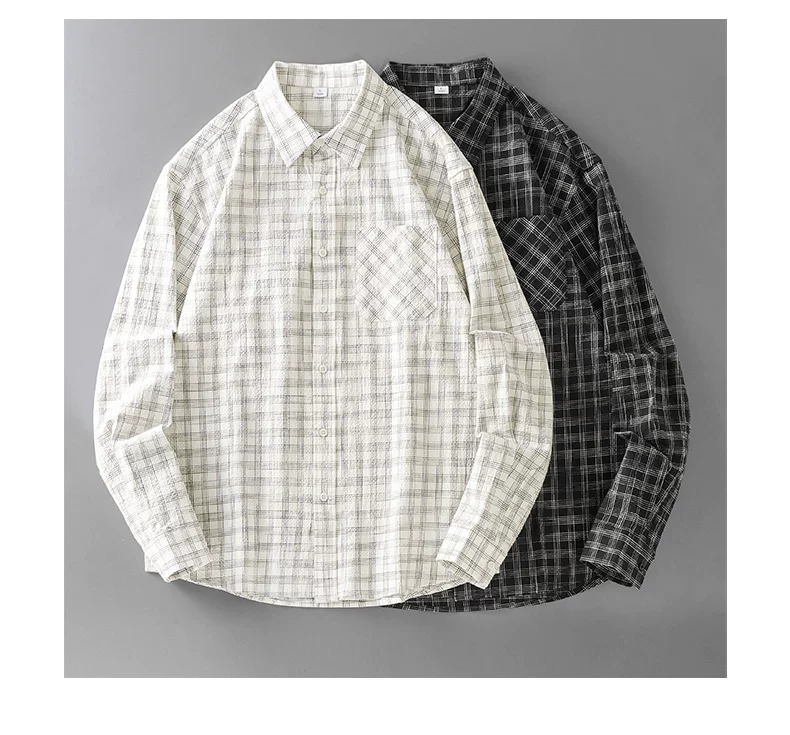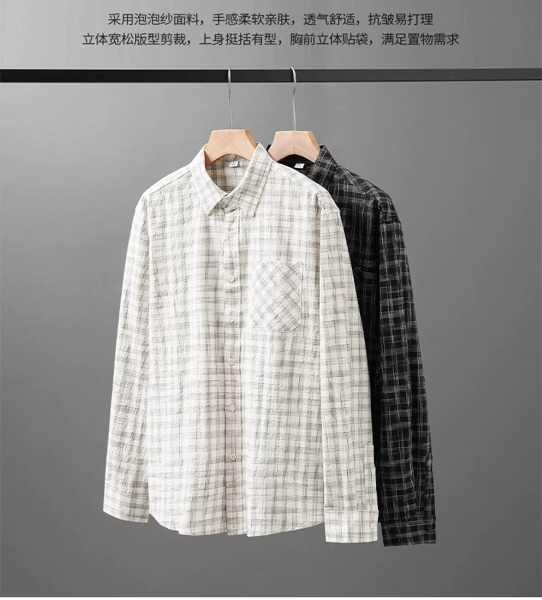 - Áo sơ mi kẻ sọc bong bóng OMZM dành cho nam, dài tay, mùa thu, phong cách Nhật Bản, nghệ thuật, dáng rộng, áo sơ mi oversized, áo khoác có cổ