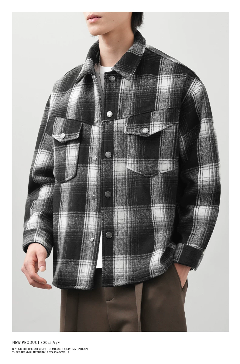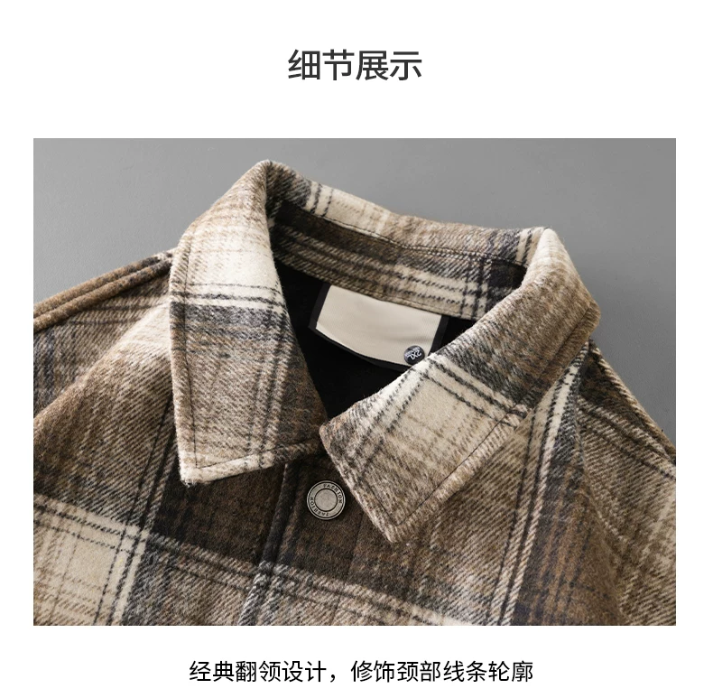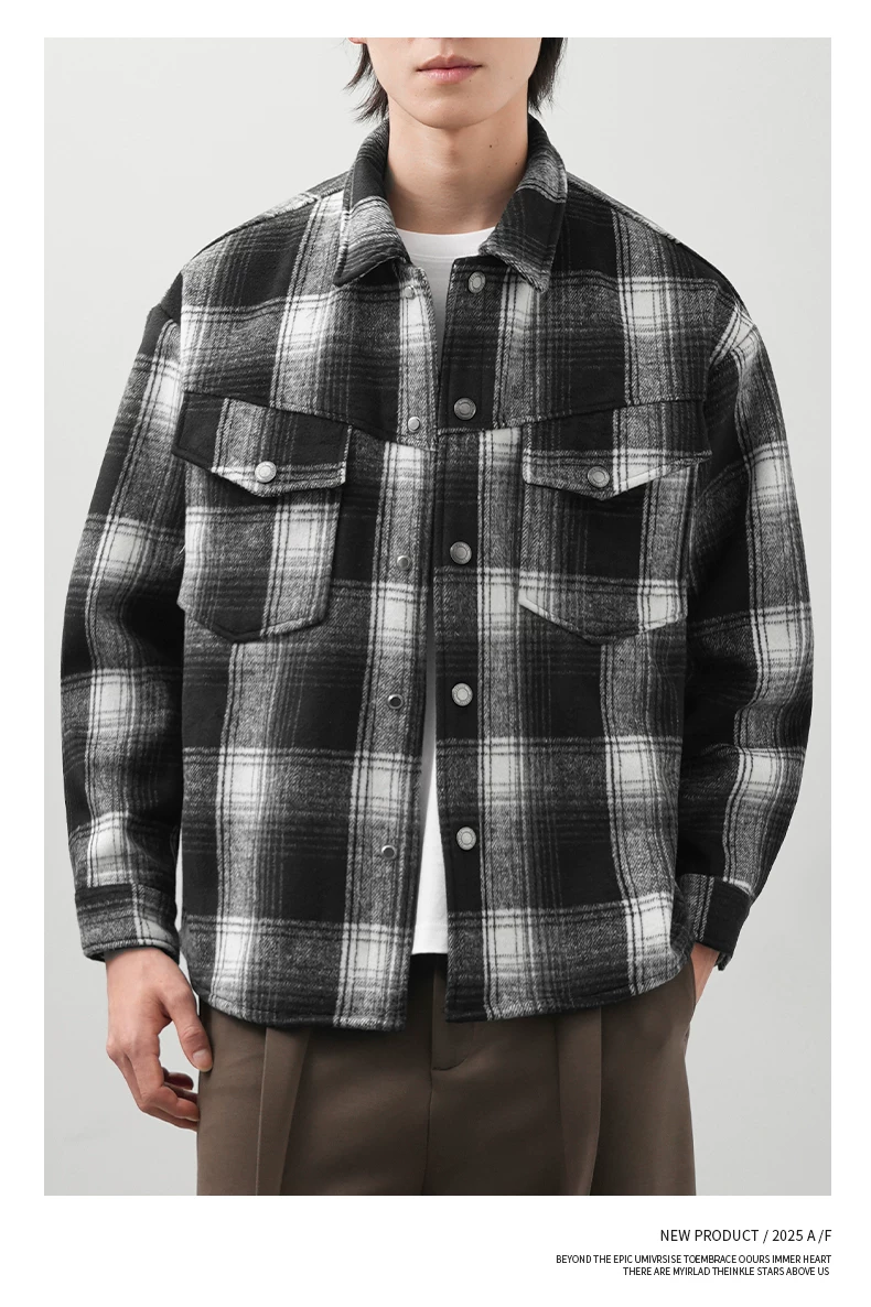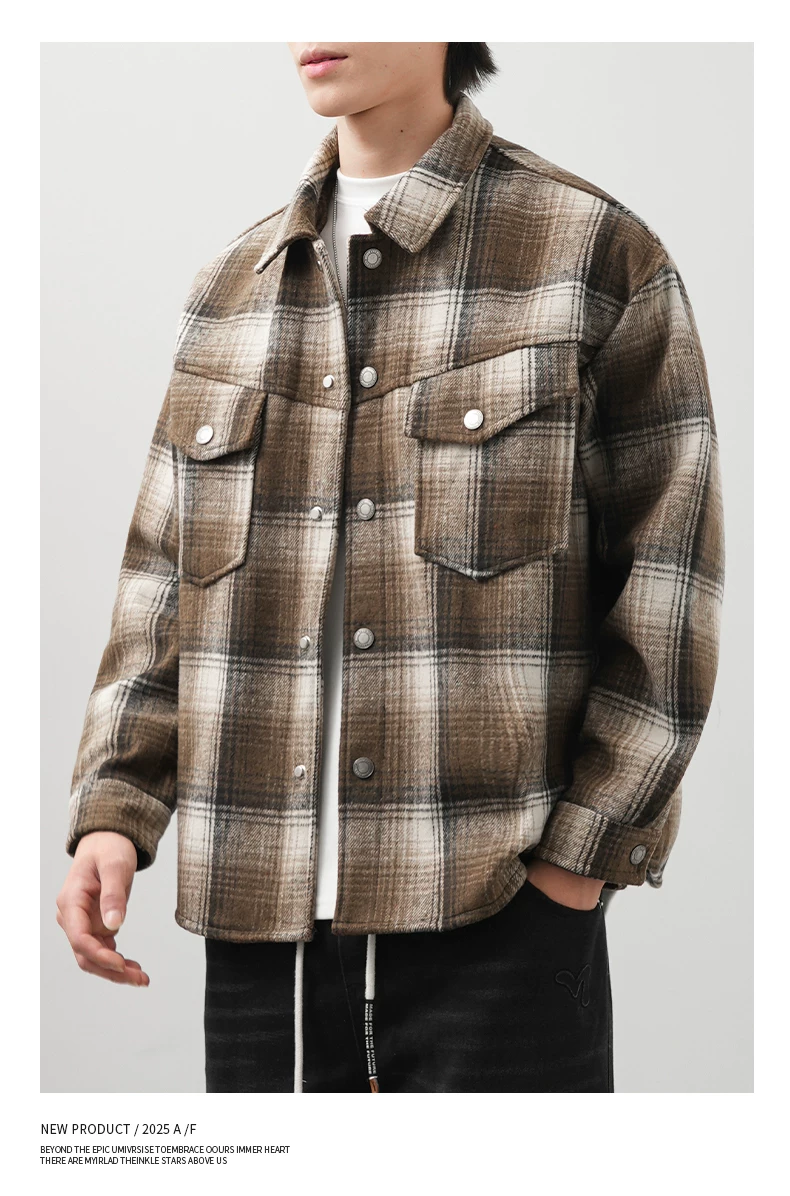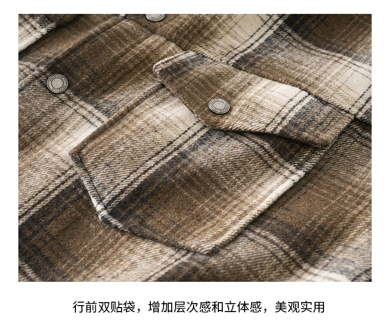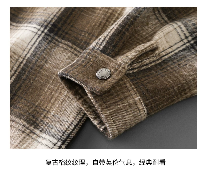 - Áo sơ mi kẻ sọc lót lông cừu OMZM750G dành cho nam, áo khoác dày dặn giữ ấm mùa đông, áo sơ mi họa tiết phong cách retro Anh quốc