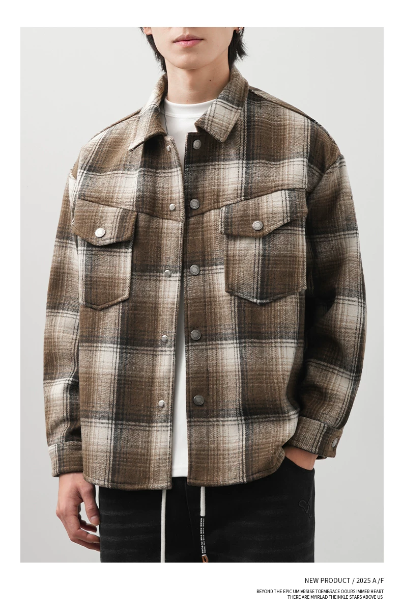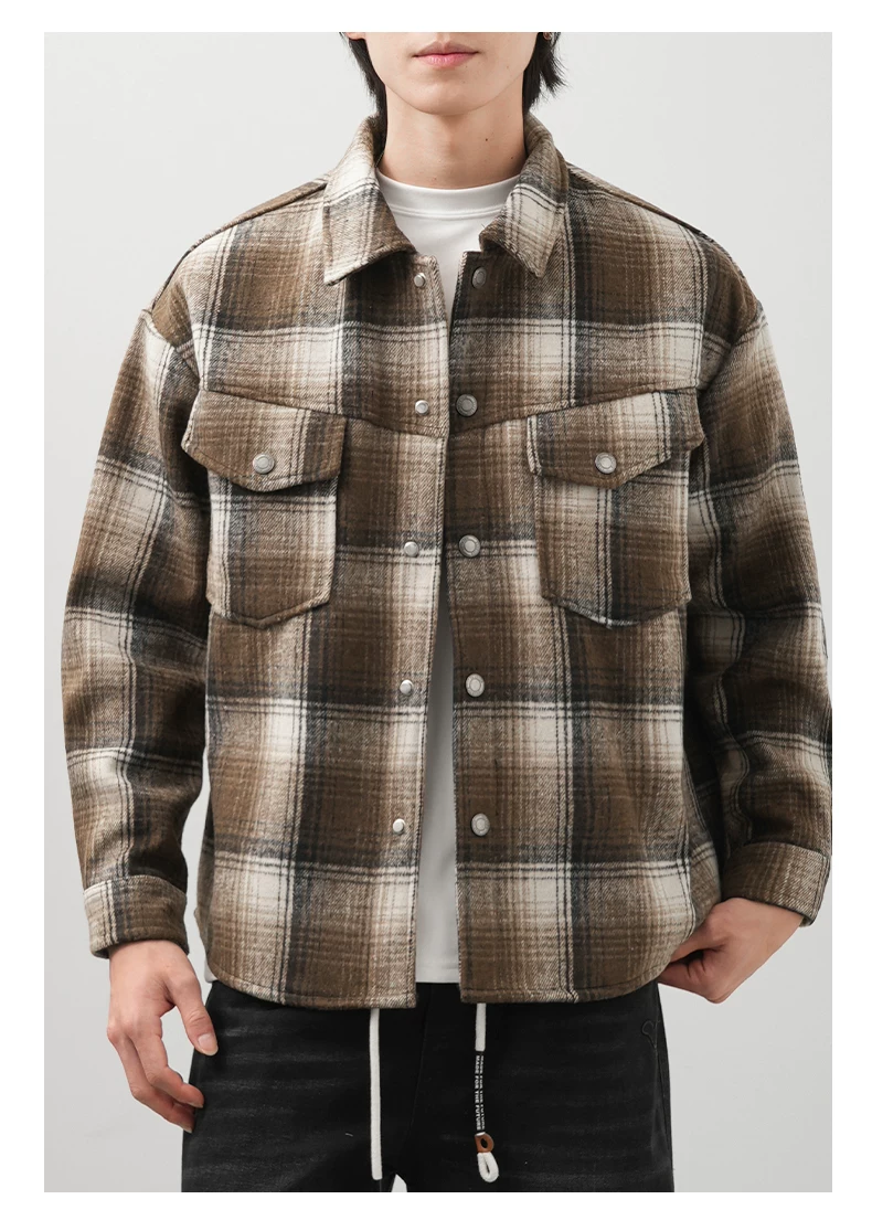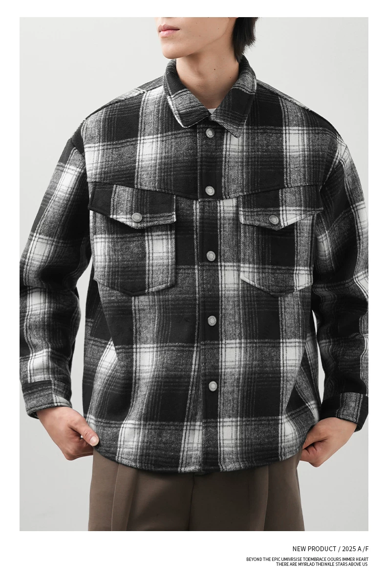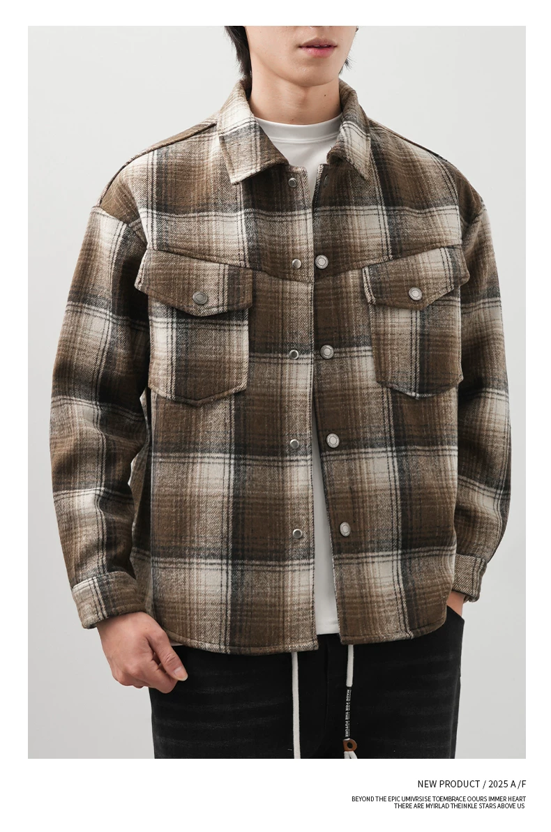 - Áo sơ mi kẻ sọc lót lông cừu OMZM750G dành cho nam, áo khoác dày dặn giữ ấm mùa đông, áo sơ mi họa tiết phong cách retro Anh quốc
