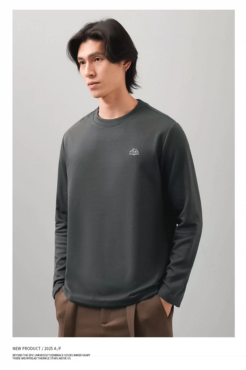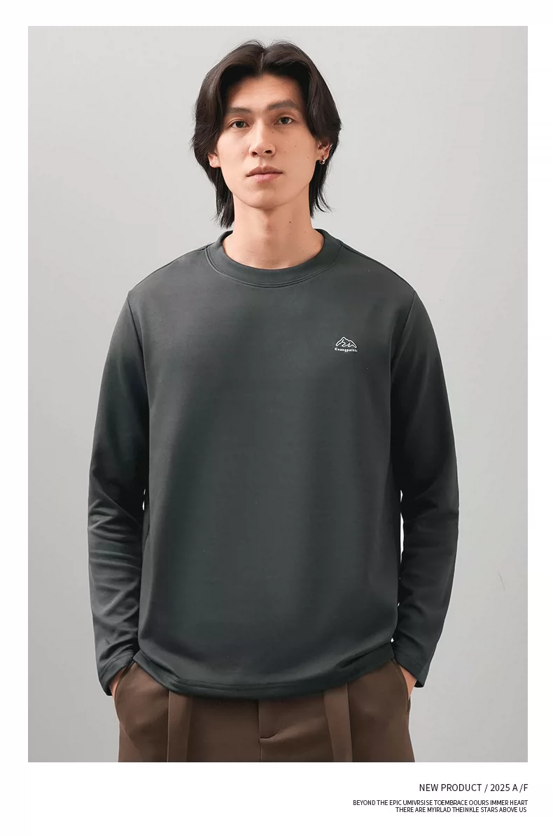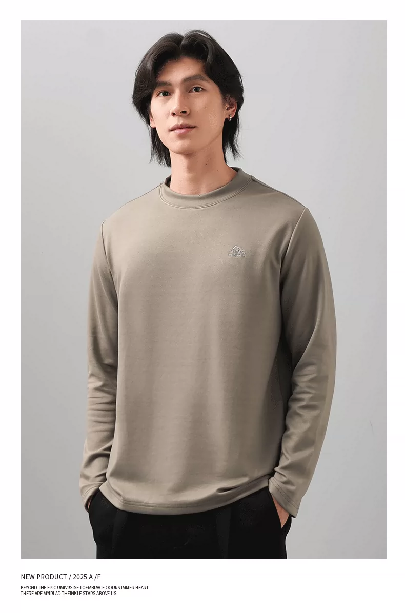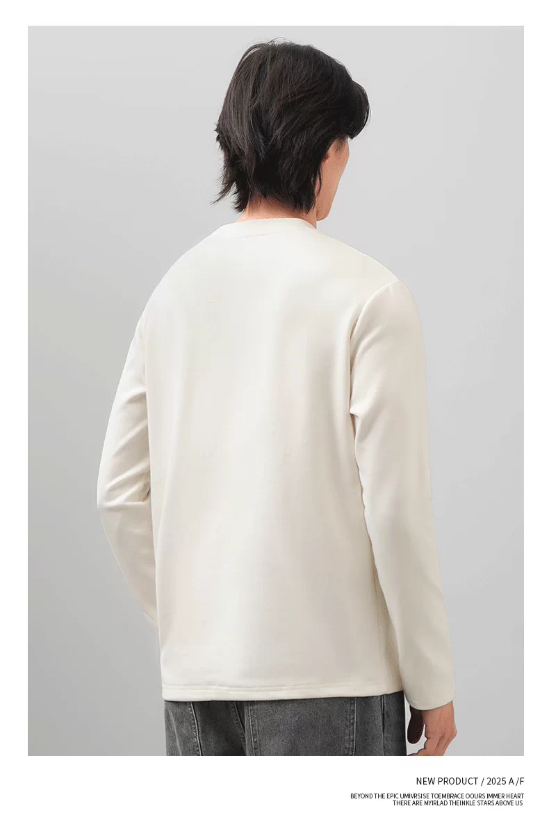 Áo sơ mi lớp nhiệt OMZM dành cho nam, lông cừu hai mặt mùa thu đông, lớp bên trong ấm áp, áo thun dài tay thêu dày kiểu Mỹ.
