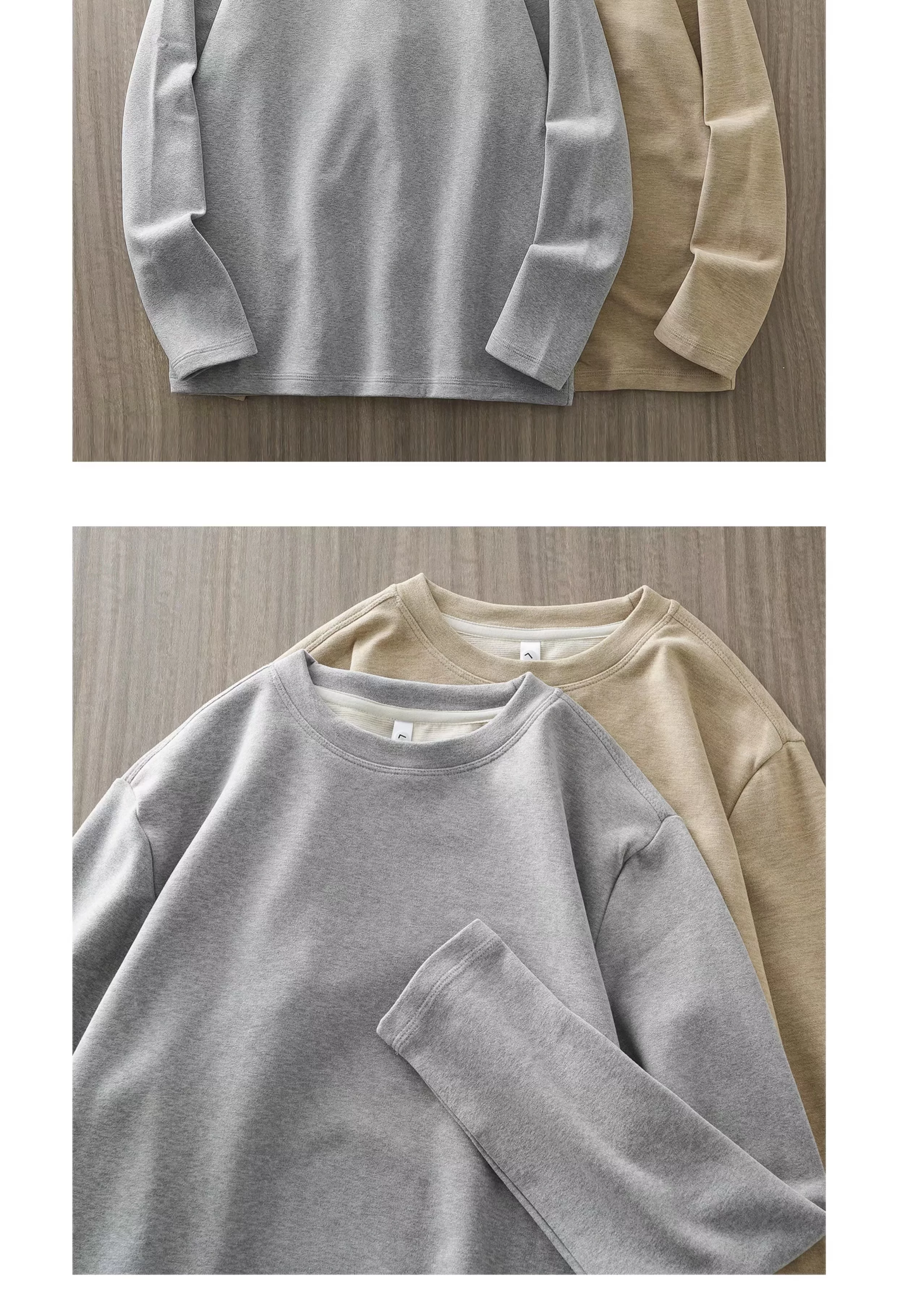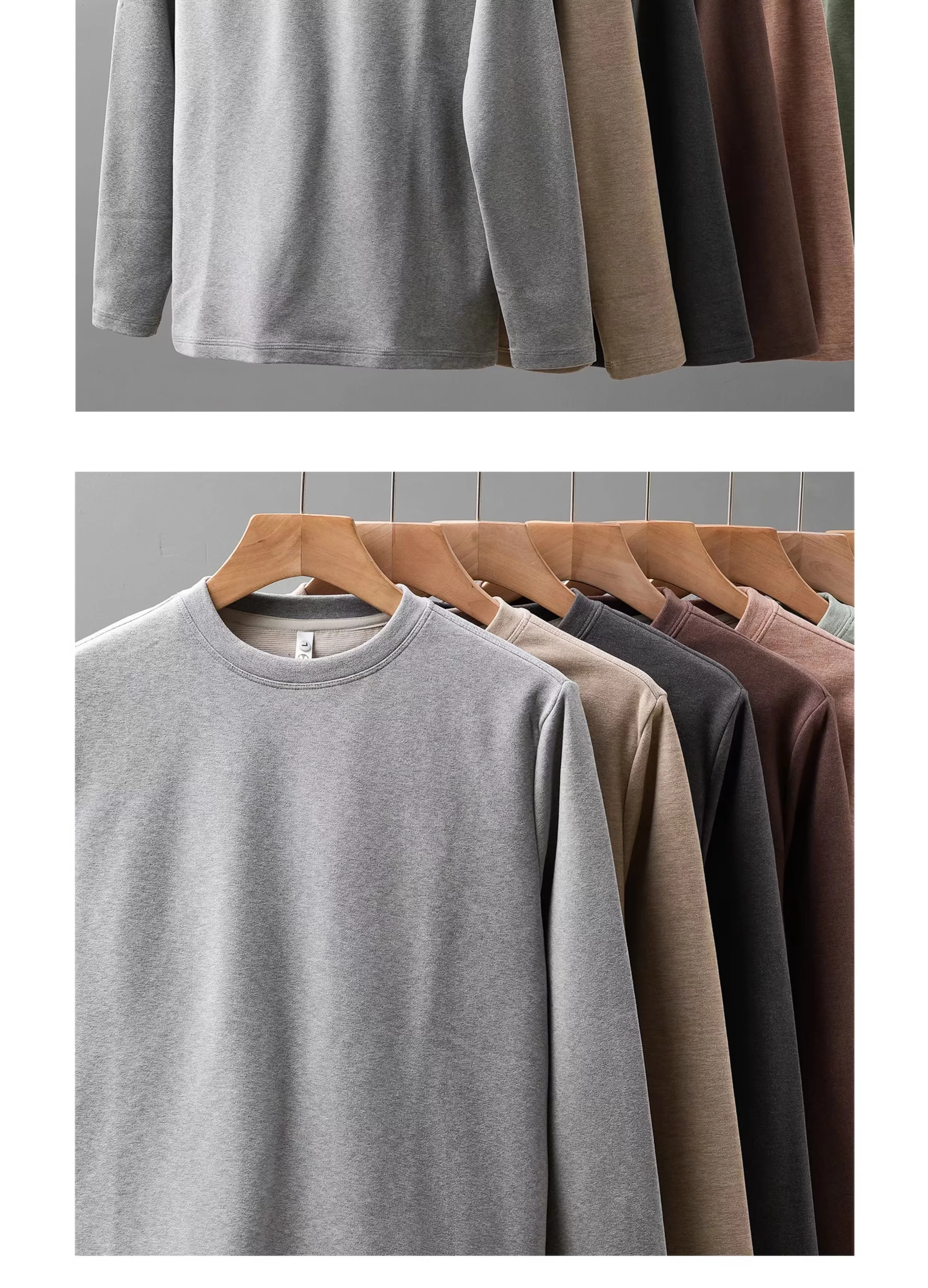 Áo sơ mi lót cổ tròn bằng nhung lụa hai mặt OMZM dành cho nam, đồ lót giữ nhiệt dày dặn mùa đông, áo thun dài tay màu trơn.
