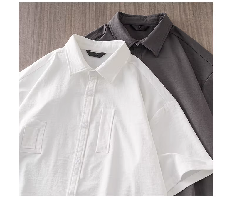 - Áo sơ mi lụa băng nhẹ dành cho nam, tay ngắn, mùa hè, cao cấp, màu trơn, cổ bẻ, áo khoác sơ mi trắng dáng rộng, phong cách giản dị