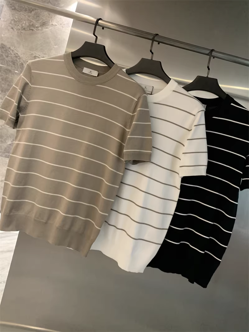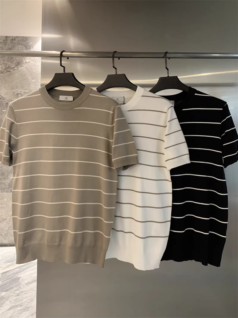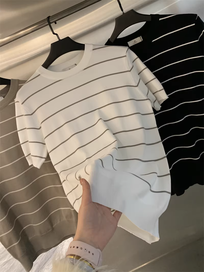 - Áo sơ mi nam chất liệu dệt kim mềm mại, thoáng khí, co giãn, họa tiết sọc, kiểu dáng đơn giản, tay ngắn, chất liệu dệt kim cao cấp Don Quixote!