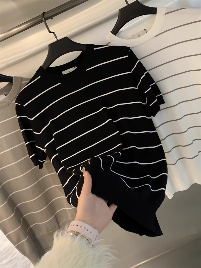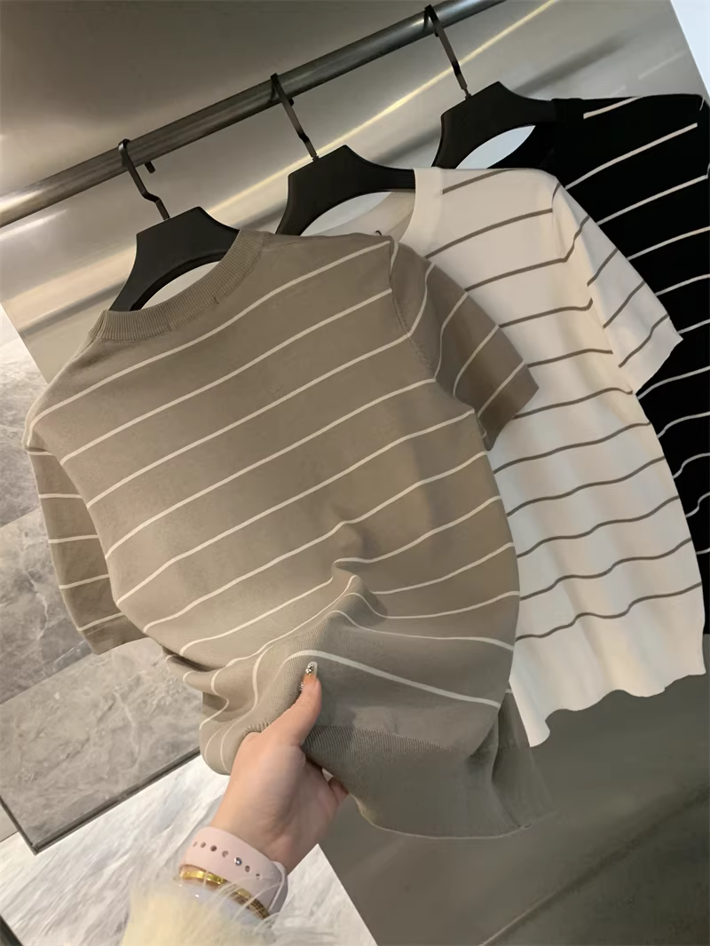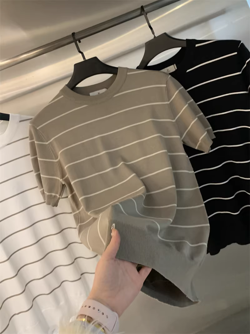 Áo sơ mi nam chất liệu dệt kim mềm mại, thoáng khí, co giãn, họa tiết sọc, kiểu dáng đơn giản, tay ngắn, chất liệu dệt kim cao cấp Don Quixote!