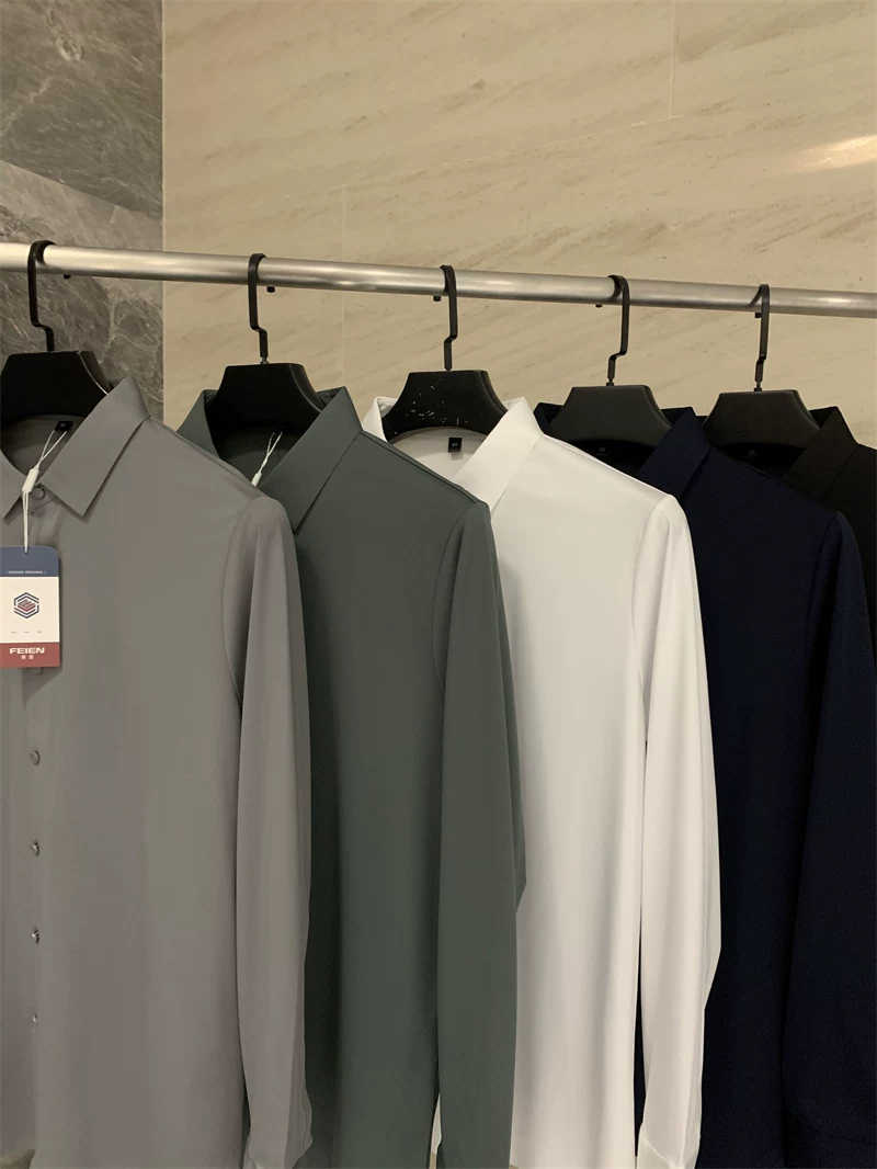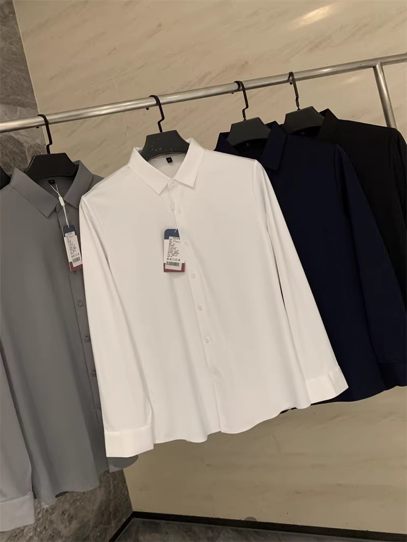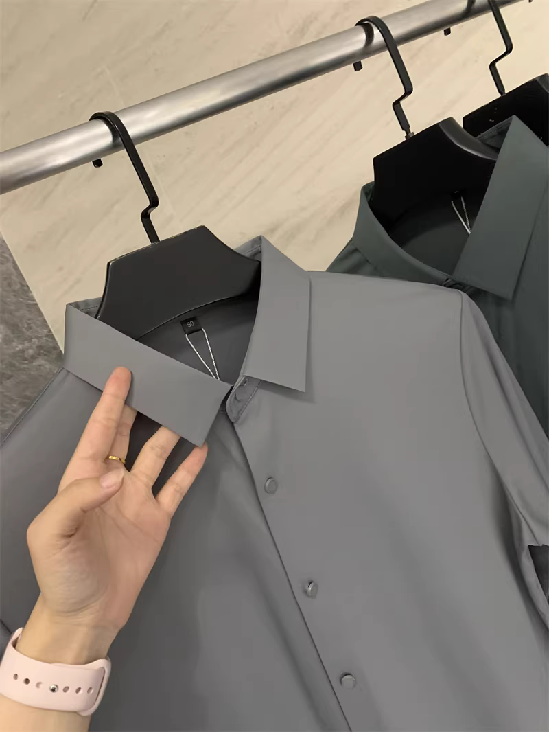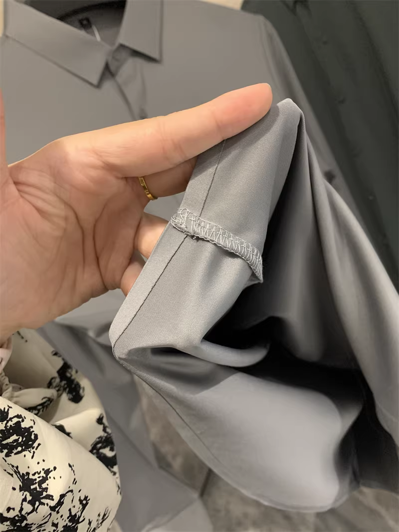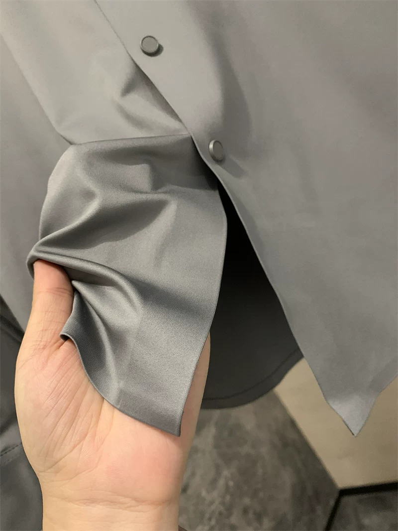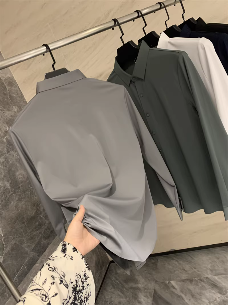 Áo sơ mi nam chất liệu lụa mềm mại, màu trơn, cổ trụ, cắt laser liền mạch, không đường may, theo đơn đặt hàng Don Quixote ODM!