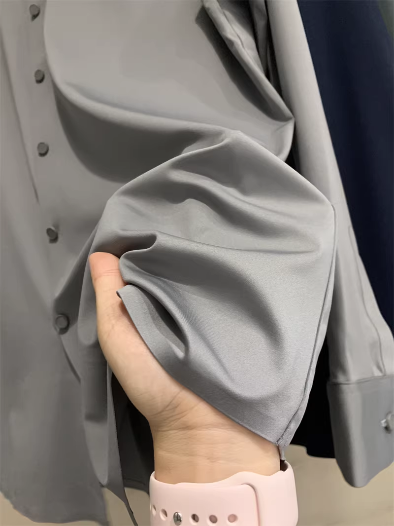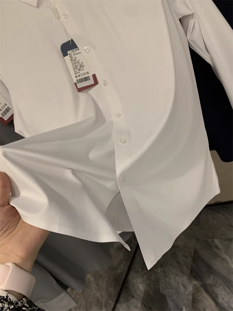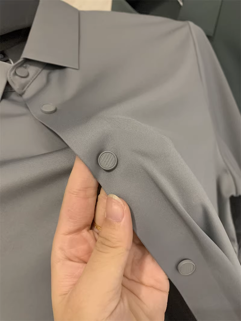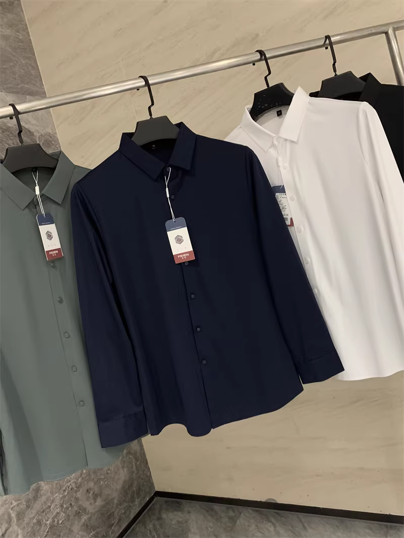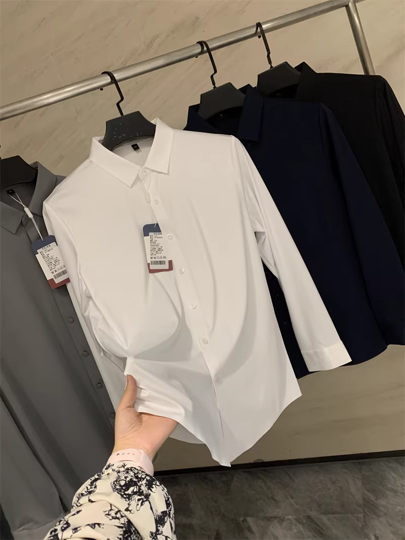 Áo sơ mi nam chất liệu lụa mềm mại, màu trơn, cổ trụ, cắt laser liền mạch, không đường may, theo đơn đặt hàng Don Quixote ODM!
