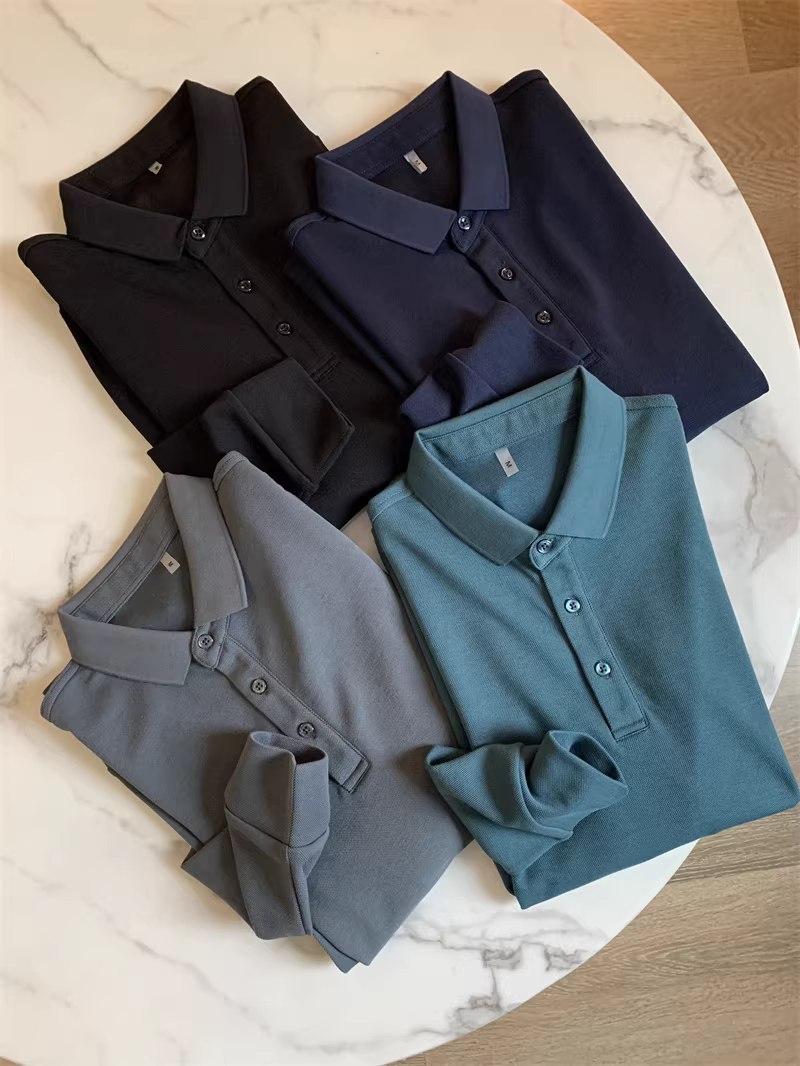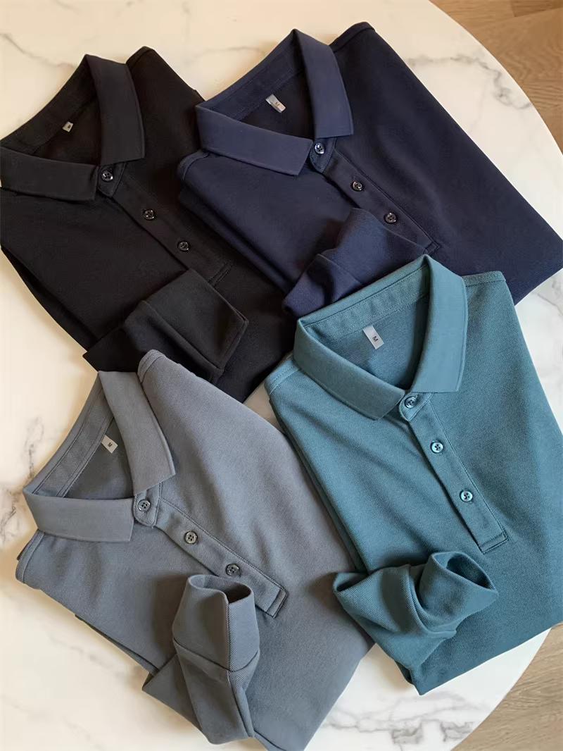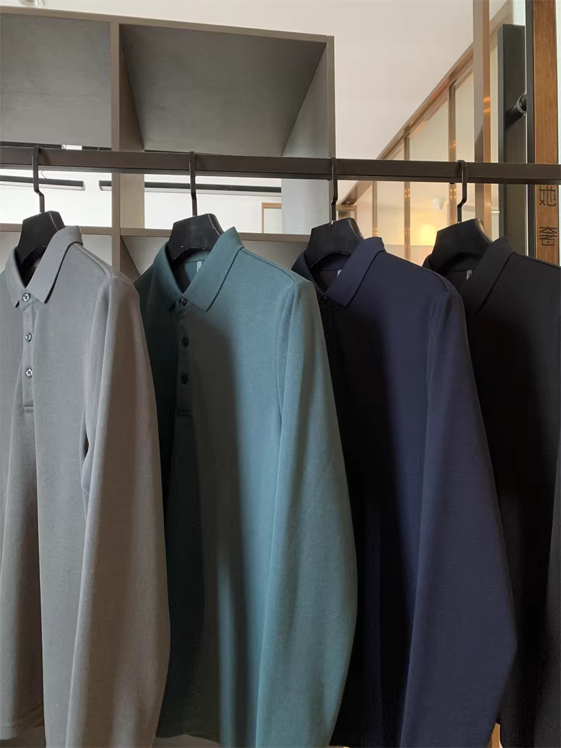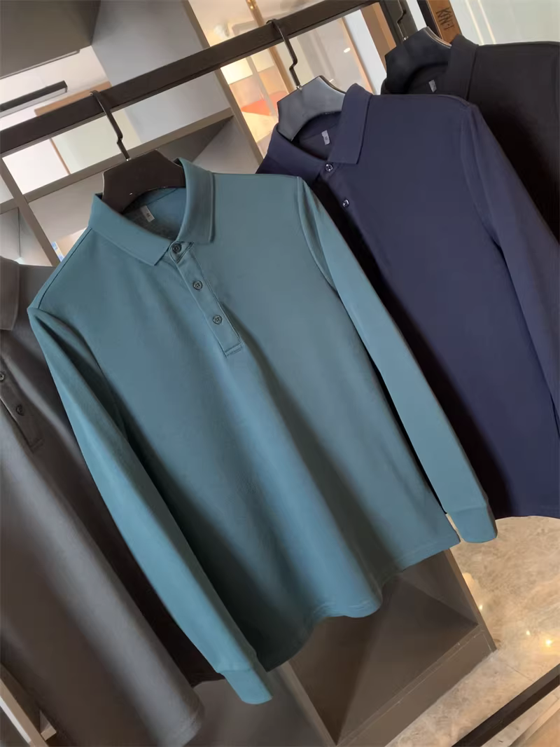 Áo sơ mi nam cổ trụ dài tay chất liệu pha lụa Don Quixote! Mềm mại và thân thiện với làn da! Áo polo nam mùa thu, lớp áo lót thời trang.