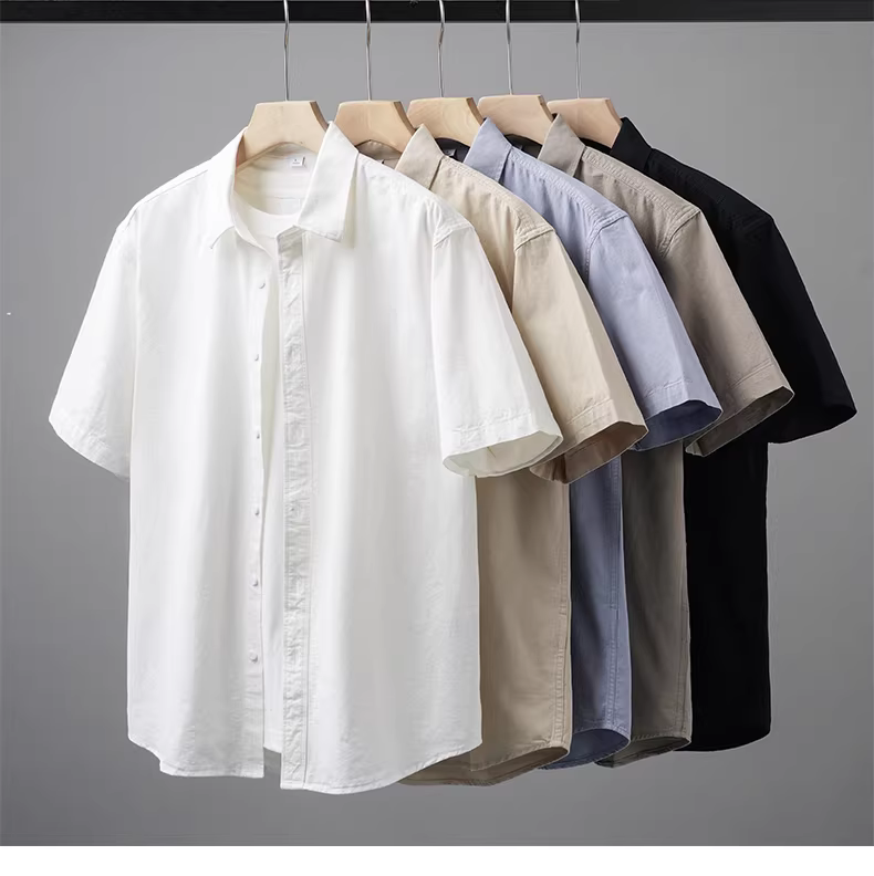 Áo sơ mi nam cotton 100% cao cấp 350G, tay ngắn, mùa hè, màu trơn, cổ điển, phong cách Mỹ, màu trắng