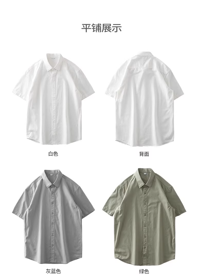 - Áo sơ mi nam cotton 100% cao cấp 350G, tay ngắn, mùa hè, màu trơn, cổ điển, phong cách Mỹ, màu trắng
