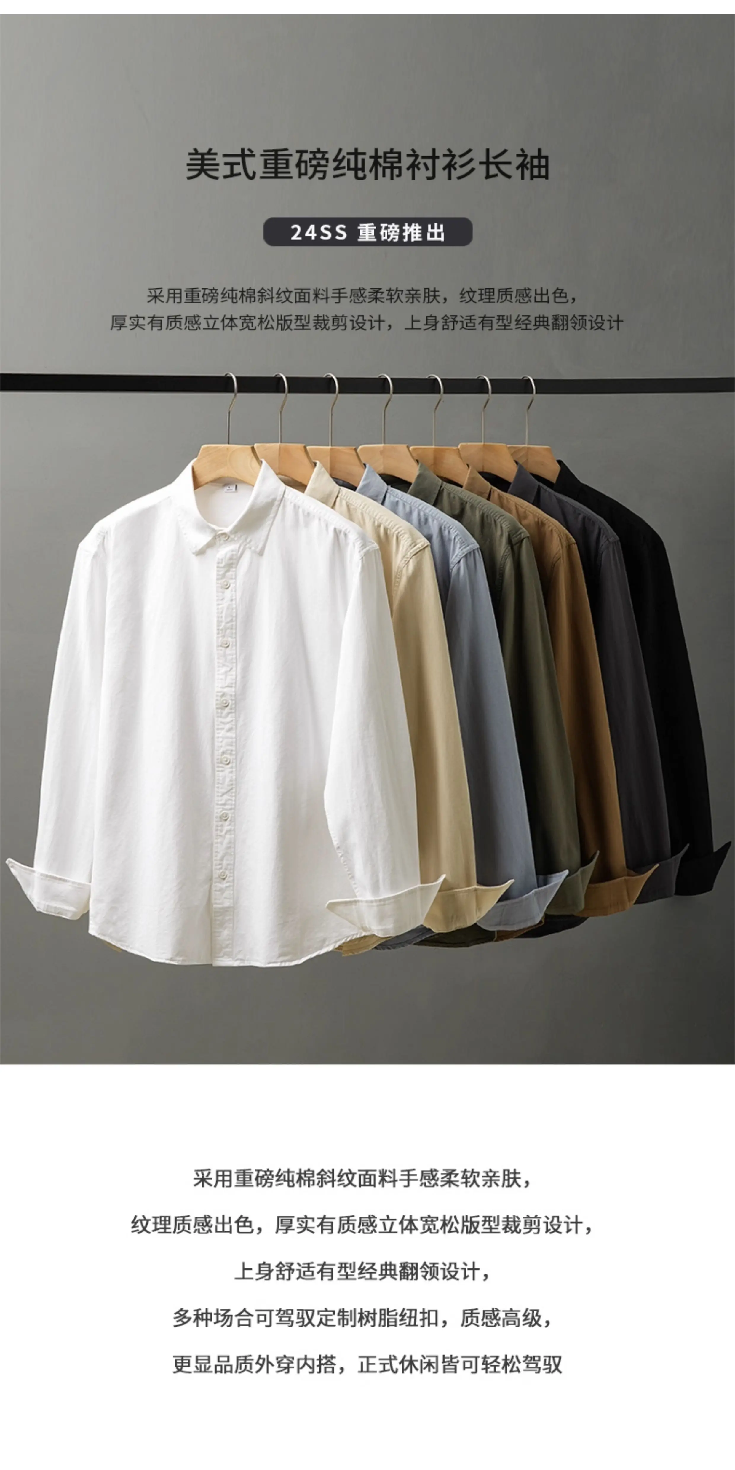 - Áo sơ mi nam cotton nguyên chất hạng nặng 350G, dài tay, mùa xuân thu, áo sơ mi trắng cao cấp, kiểu dáng rộng rãi, mỏng nhẹ, kiểu áo khoác có cổ.