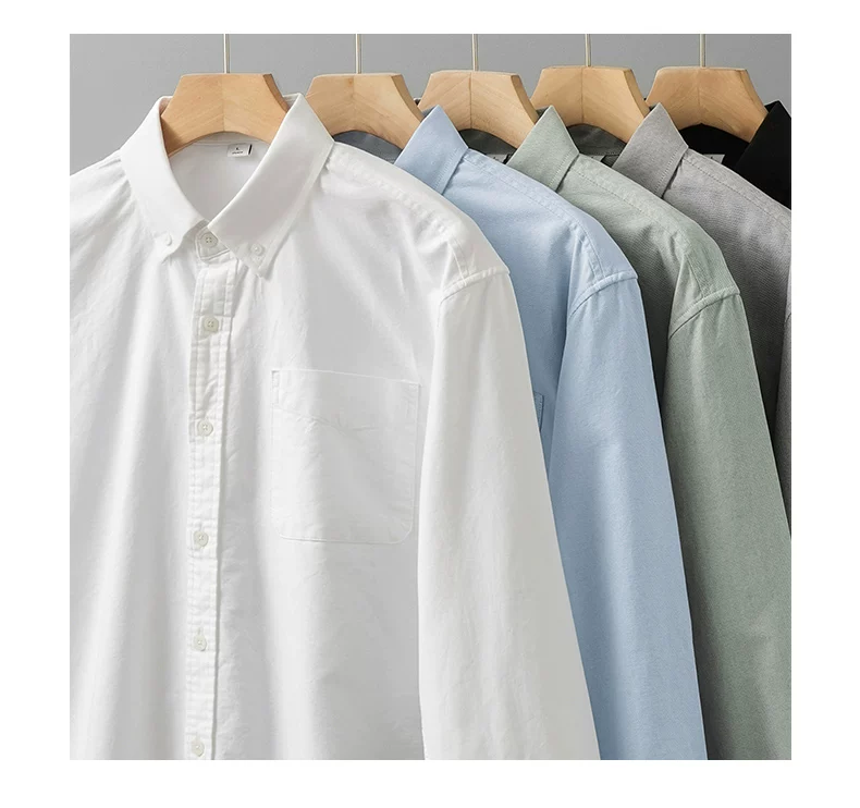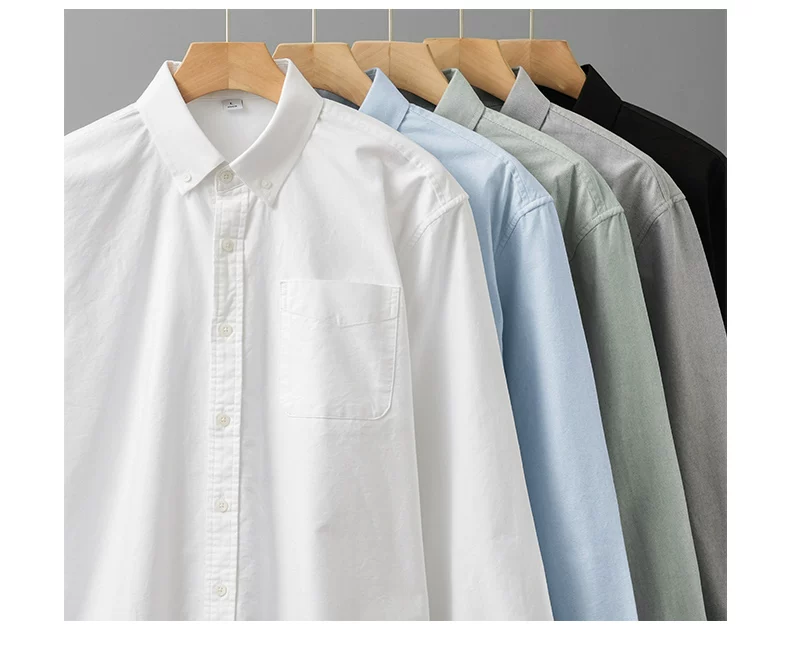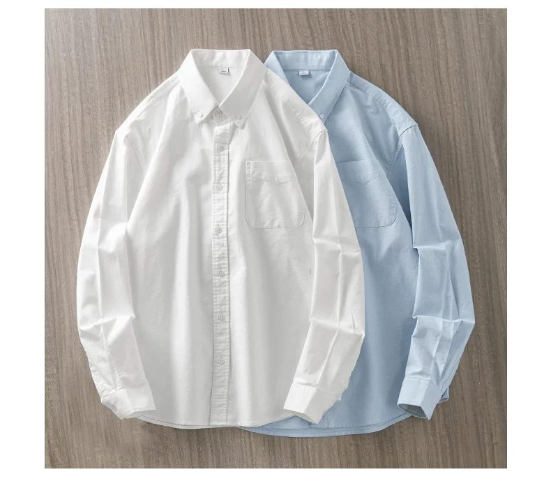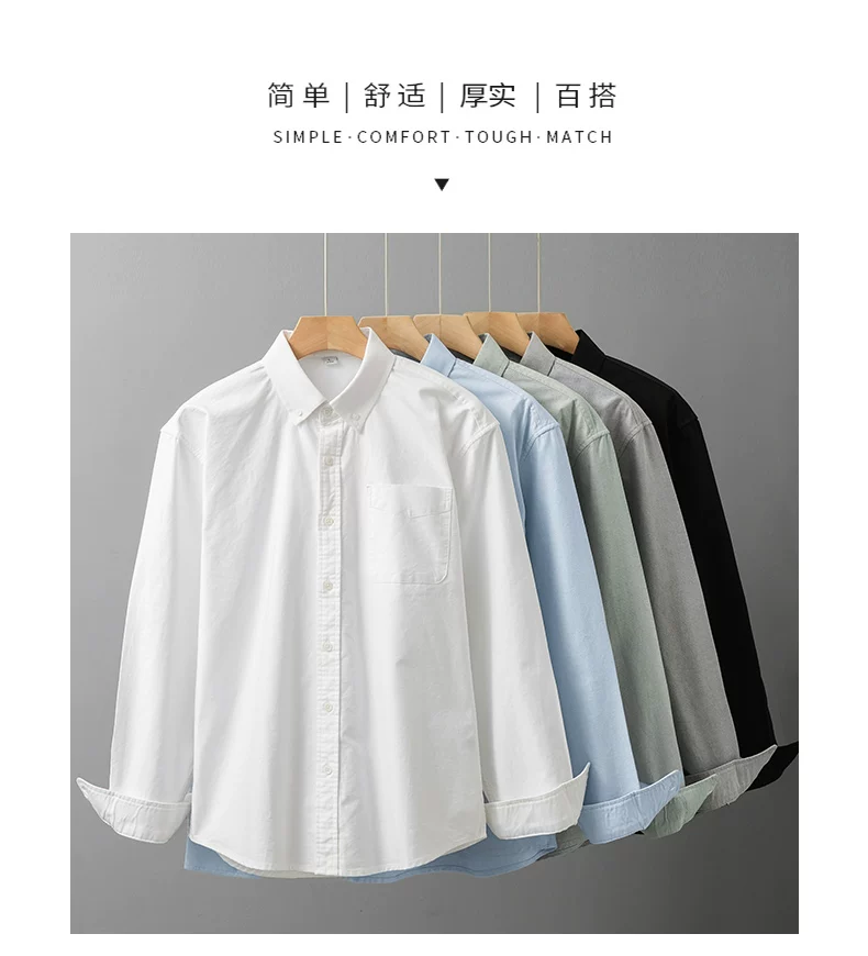 Áo sơ mi nam cotton Oxford dày dặn 350G kiểu Mỹ, tay dài, màu trắng, mùa xuân mới, phong cách thường ngày, áo khoác công sở