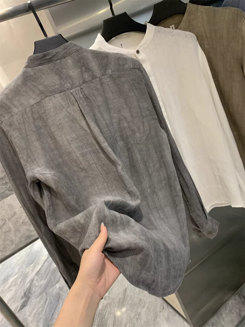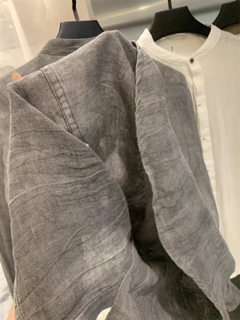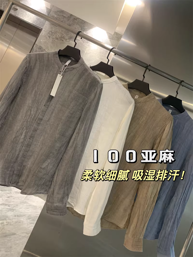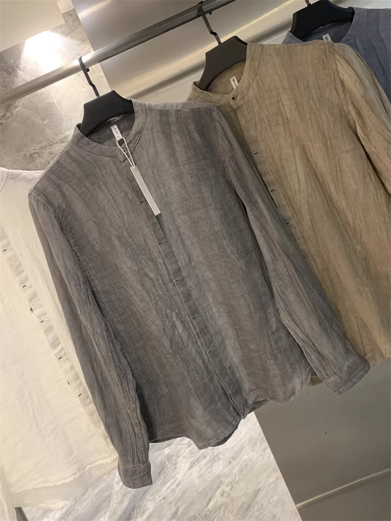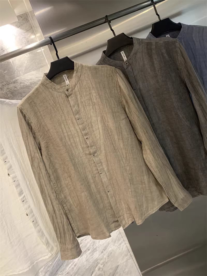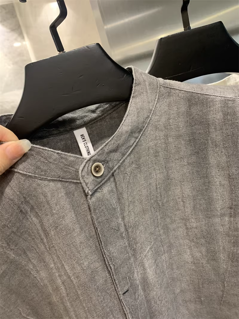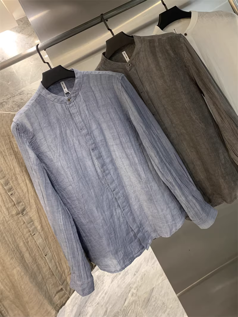 Áo sơ mi nam Don Quixote 100% vải lanh! Áo sơ mi dài tay cổ đứng nhỏ gọn, thoáng mát, chất liệu mỏng nhẹ, thích hợp cho mùa xuân/hè.