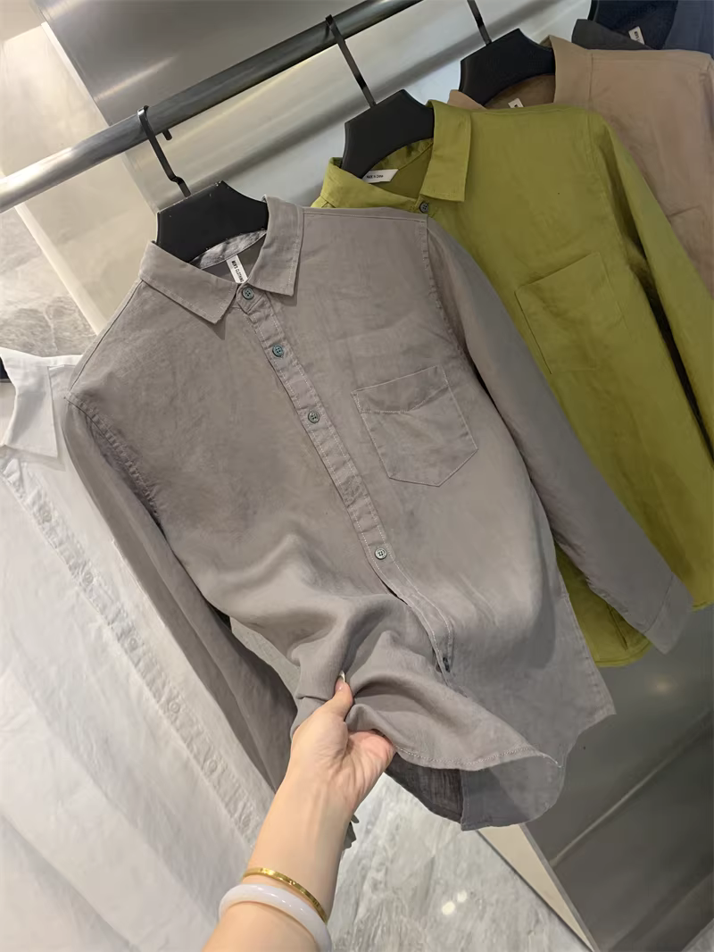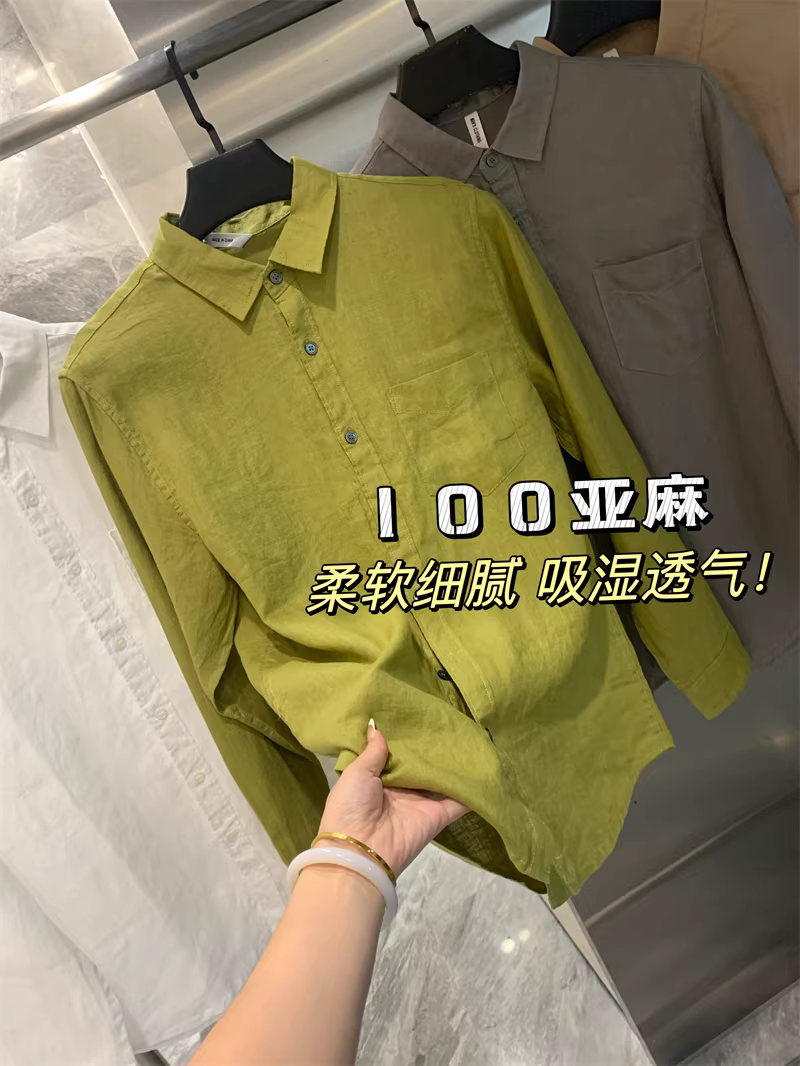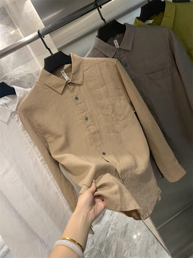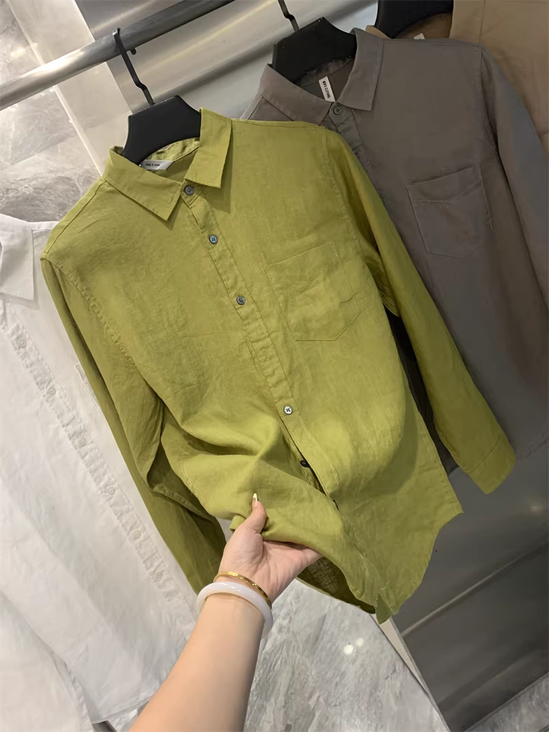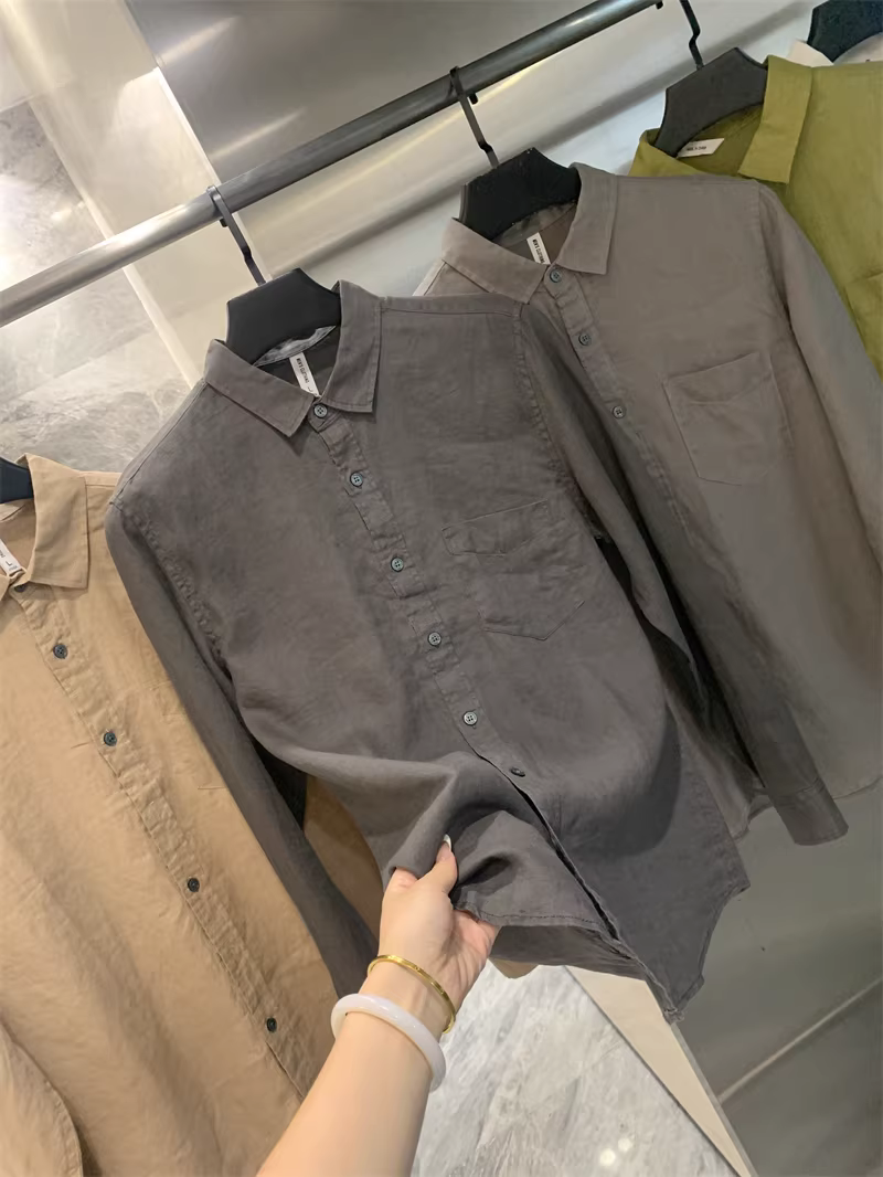 Áo sơ mi nam Don Quixote 100% vải lanh! Màu sắc Morandi! Thoáng khí, thấm hút mồ hôi, kiểu dáng đơn giản, cổ trụ, màu trơn, tay dài.