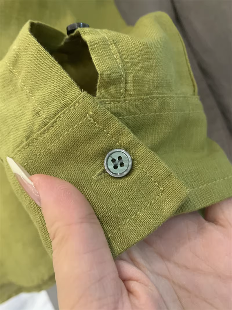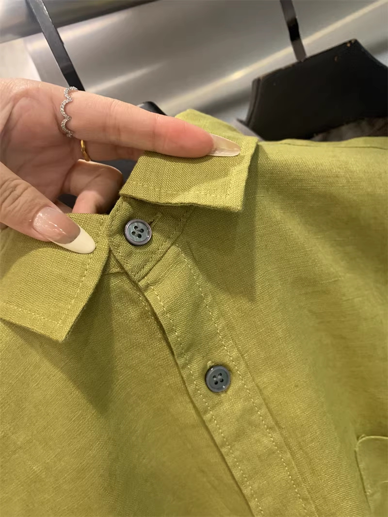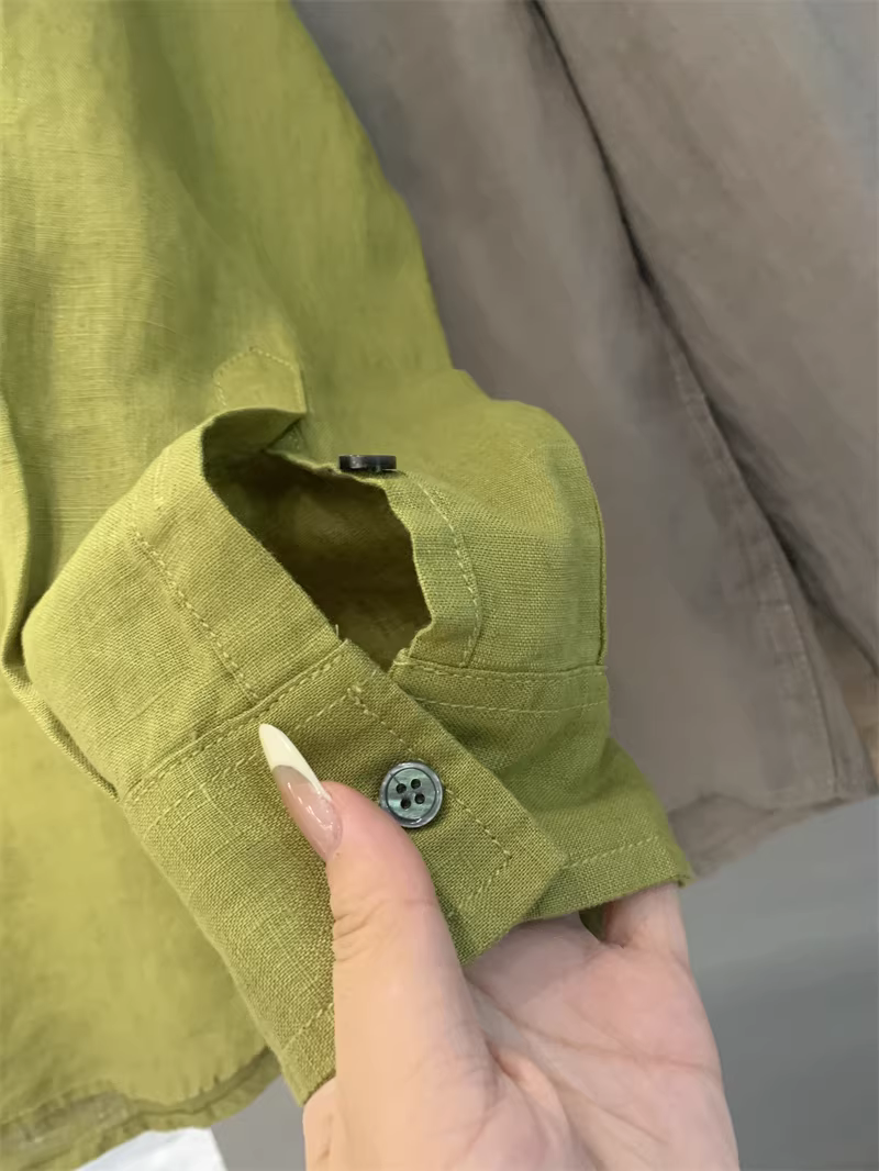- Áo sơ mi nam Don Quixote 100% vải lanh! Màu sắc Morandi! Thoáng khí, thấm hút mồ hôi, kiểu dáng đơn giản, cổ trụ, màu trơn, tay dài.