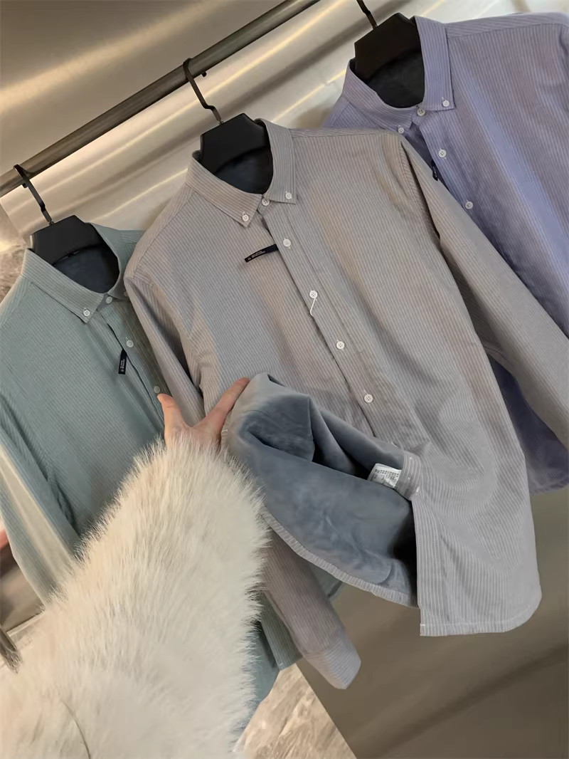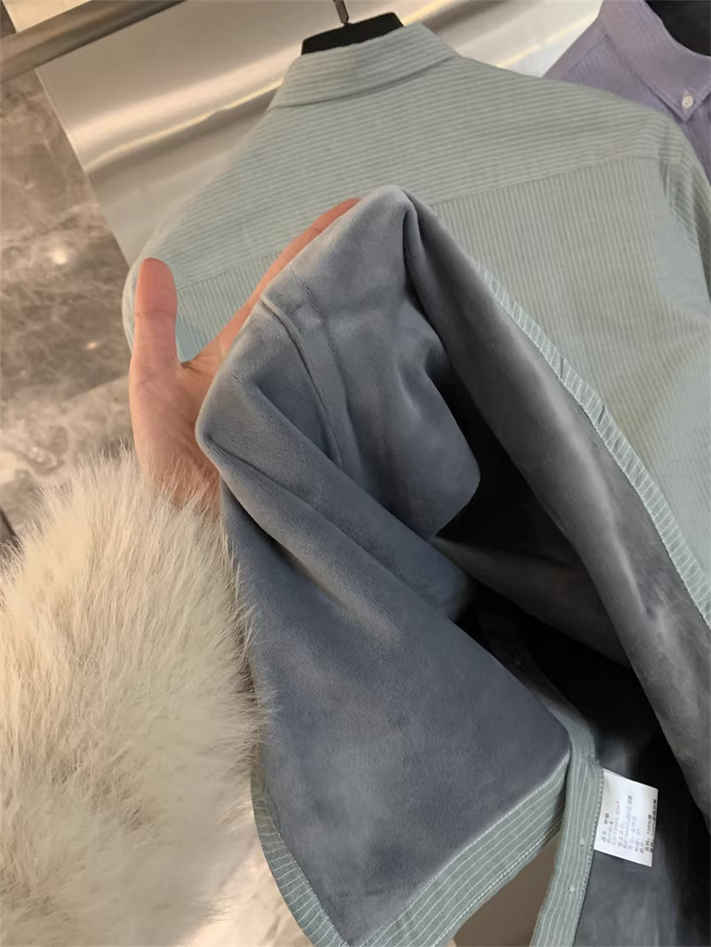 基础款纯棉加绒厚款条纹衬衫!