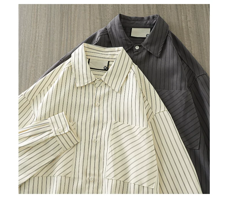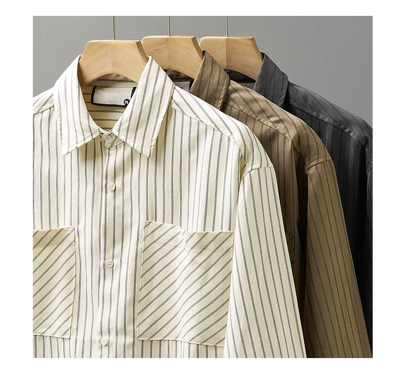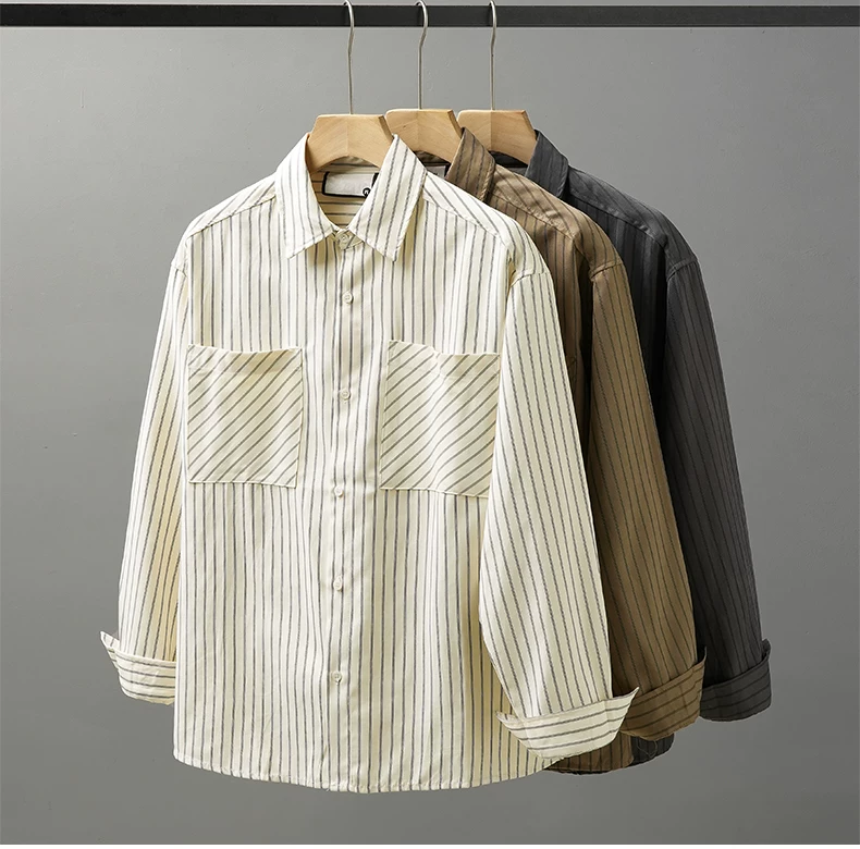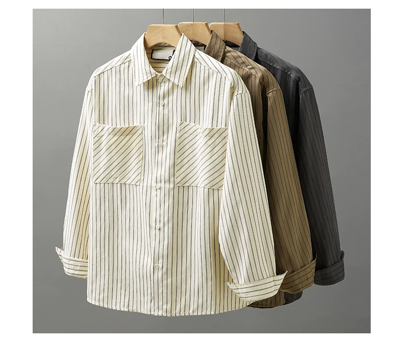 - Áo sơ mi nam OMZM kẻ sọc dày dặn tay dài mùa thu 2024, áo khoác thường ngày đi làm, áo khoác nhiều lớp, áo khoác công sở
