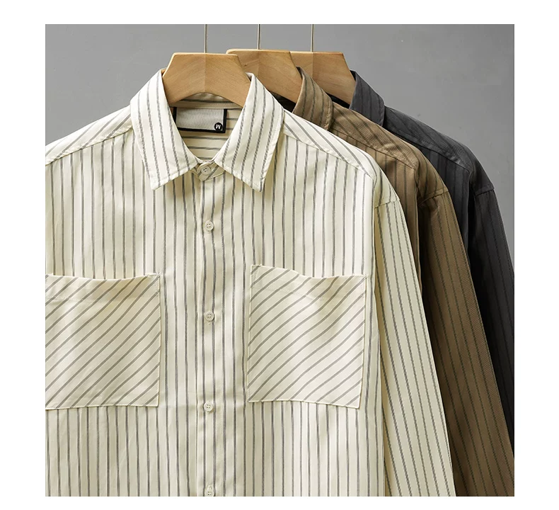 Áo sơ mi nam OMZM kẻ sọc dày dặn tay dài mùa thu 2024, áo khoác thường ngày đi làm, áo khoác nhiều lớp, áo khoác công sở
