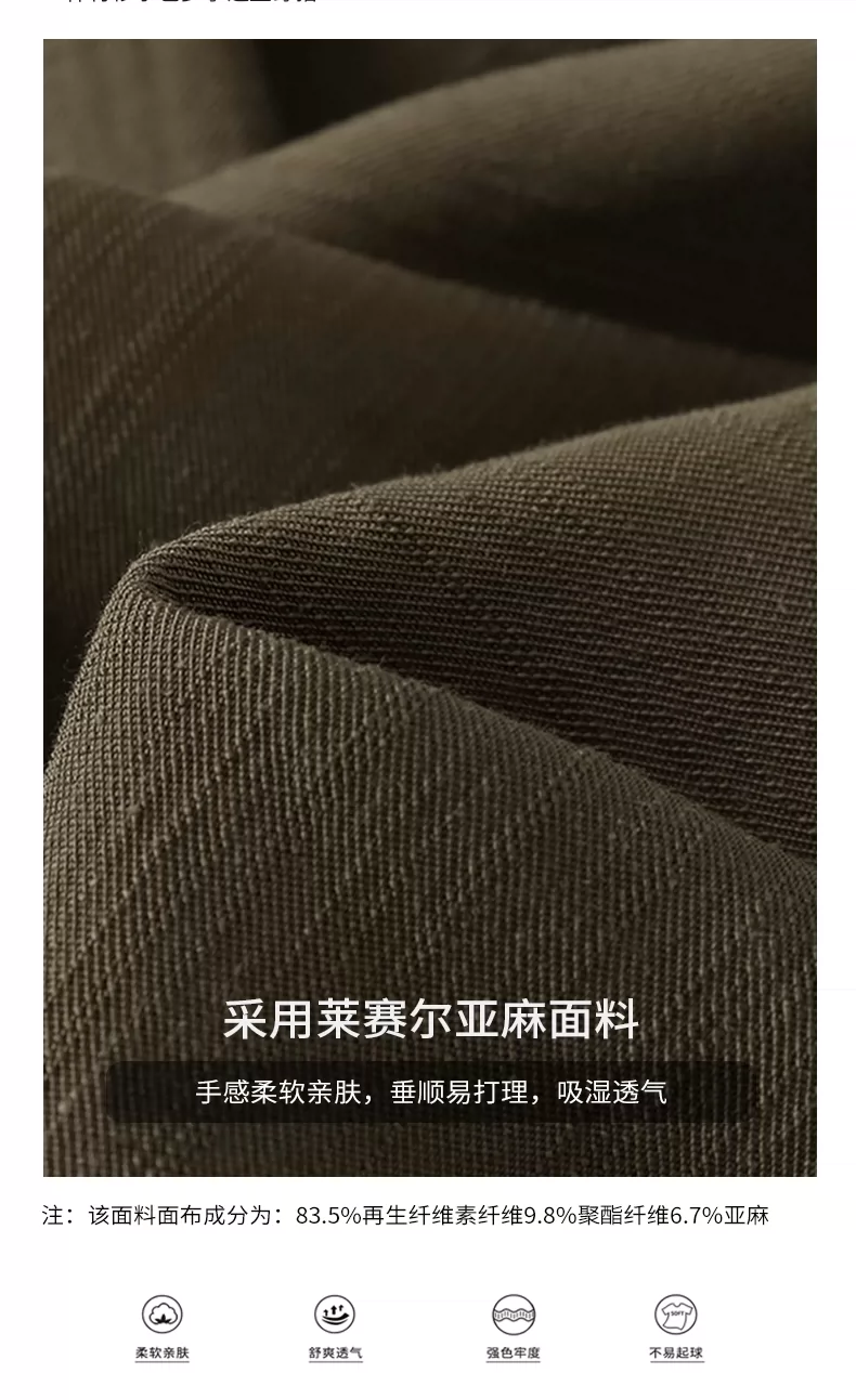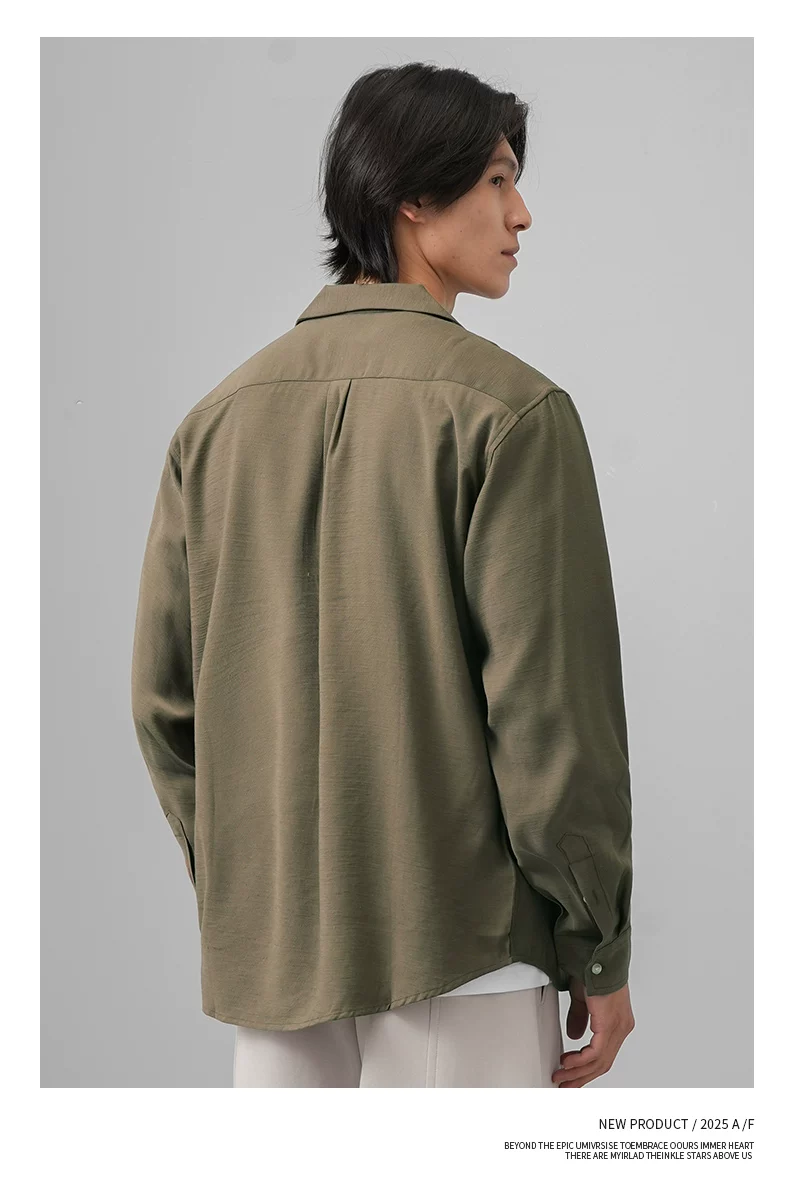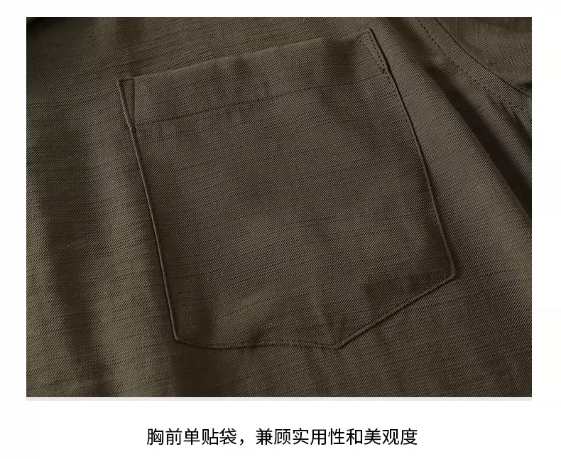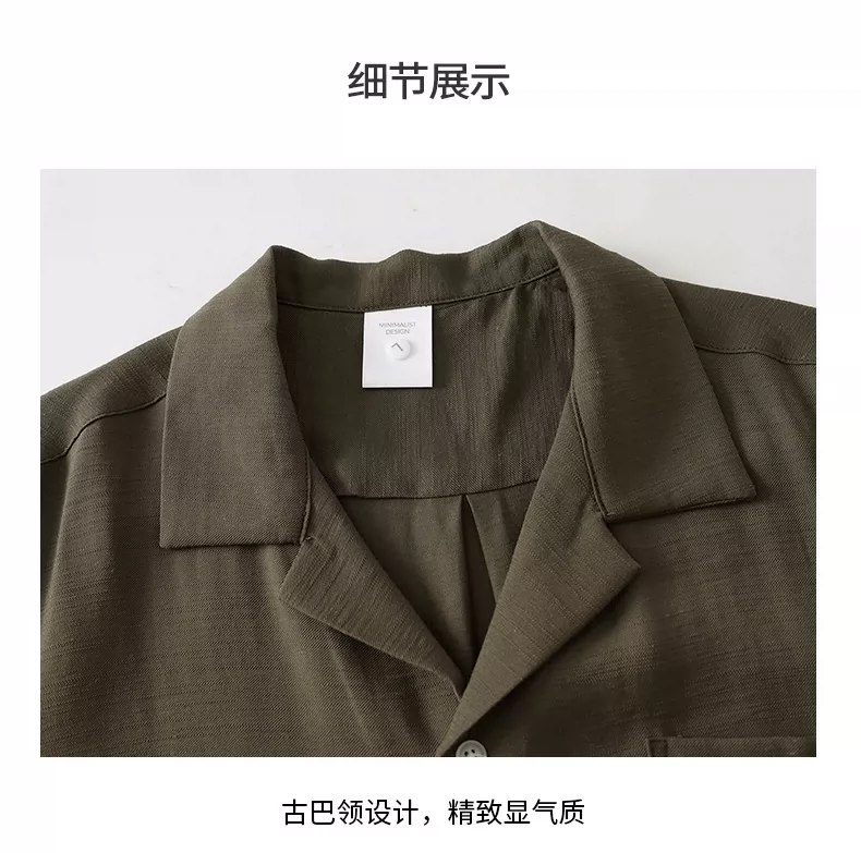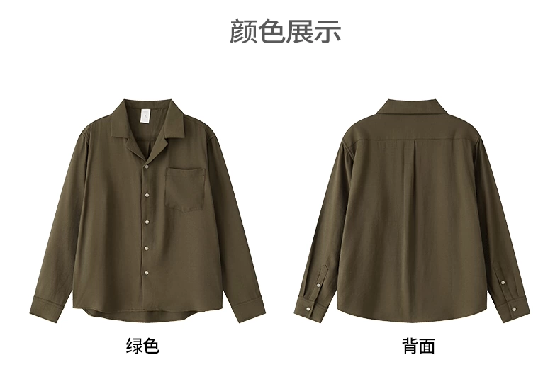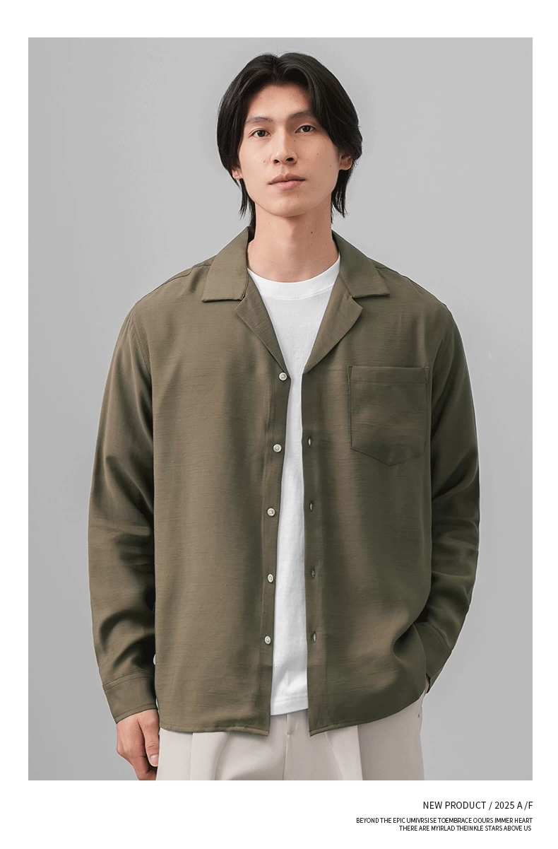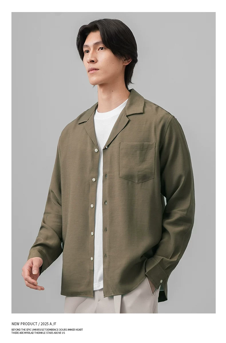 Áo sơ mi nam OMZM kiểu tiền cổ điển, chất liệu vải lanh, tay dài, mùa thu, cổ Cuba, màu trơn, dáng rộng, kiểu áo khoác.