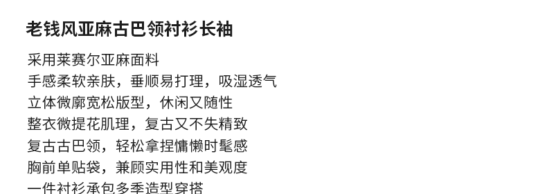 - Áo sơ mi nam OMZM kiểu tiền cổ điển, chất liệu vải lanh, tay dài, mùa thu, cổ Cuba, màu trơn, dáng rộng, kiểu áo khoác.