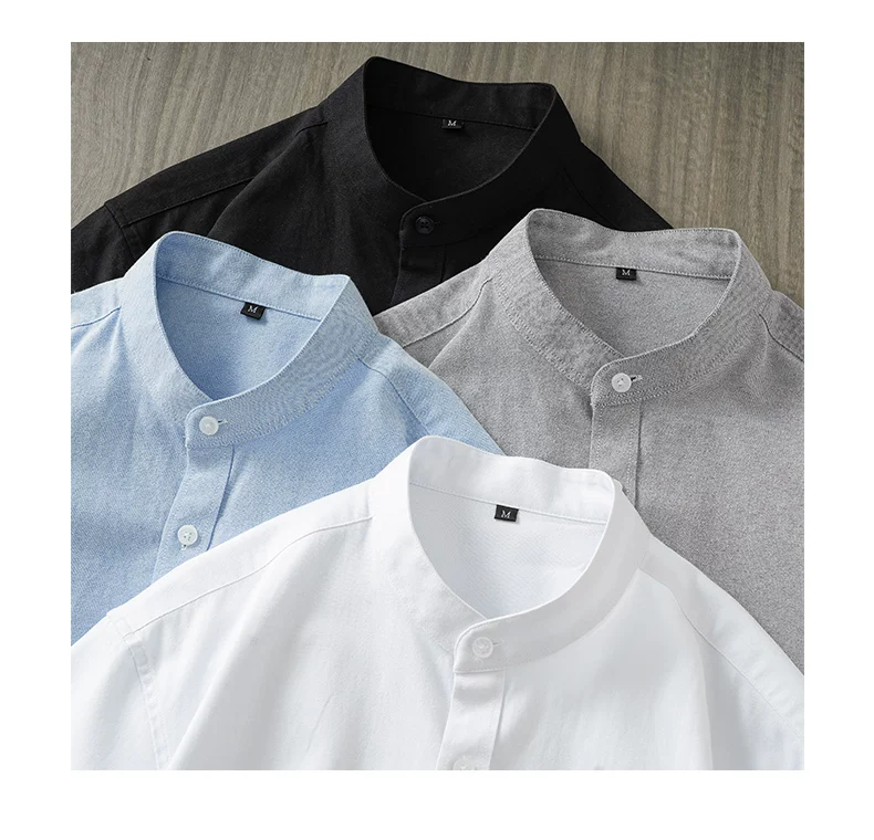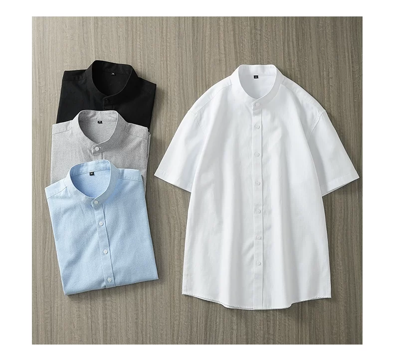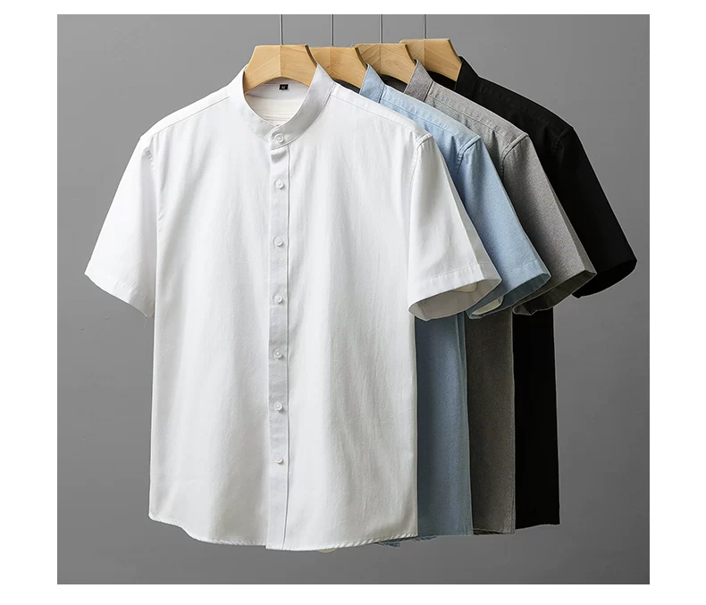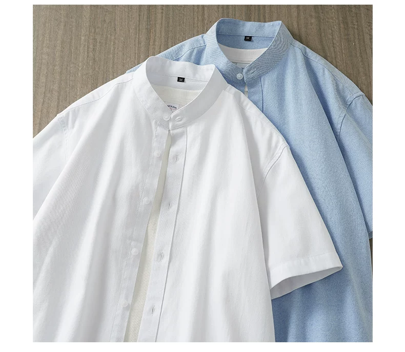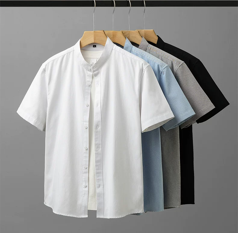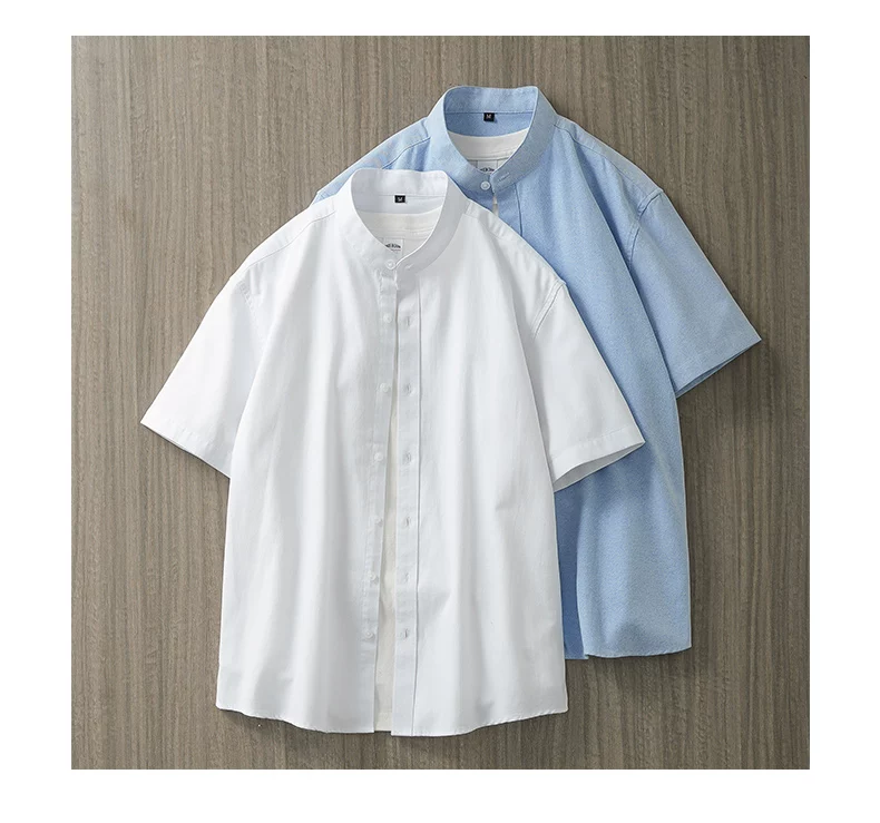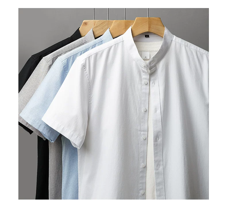- Áo sơ mi nam Oxford cao cấp không cổ, tay ngắn, kiểu dáng mới mùa hè 2025, phong cách Trung Hoa cổ điển, kiểu áo khoác thời thượng