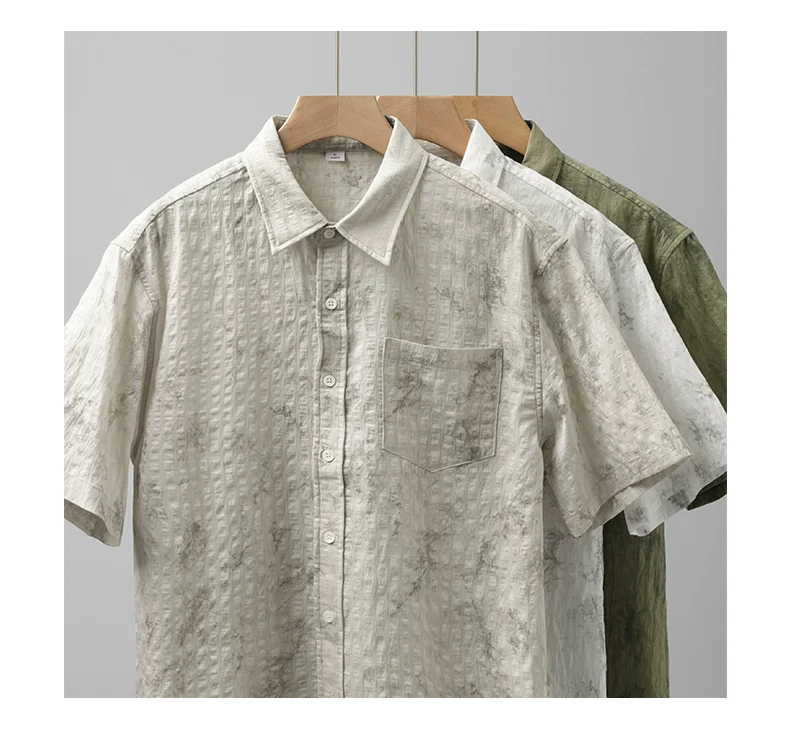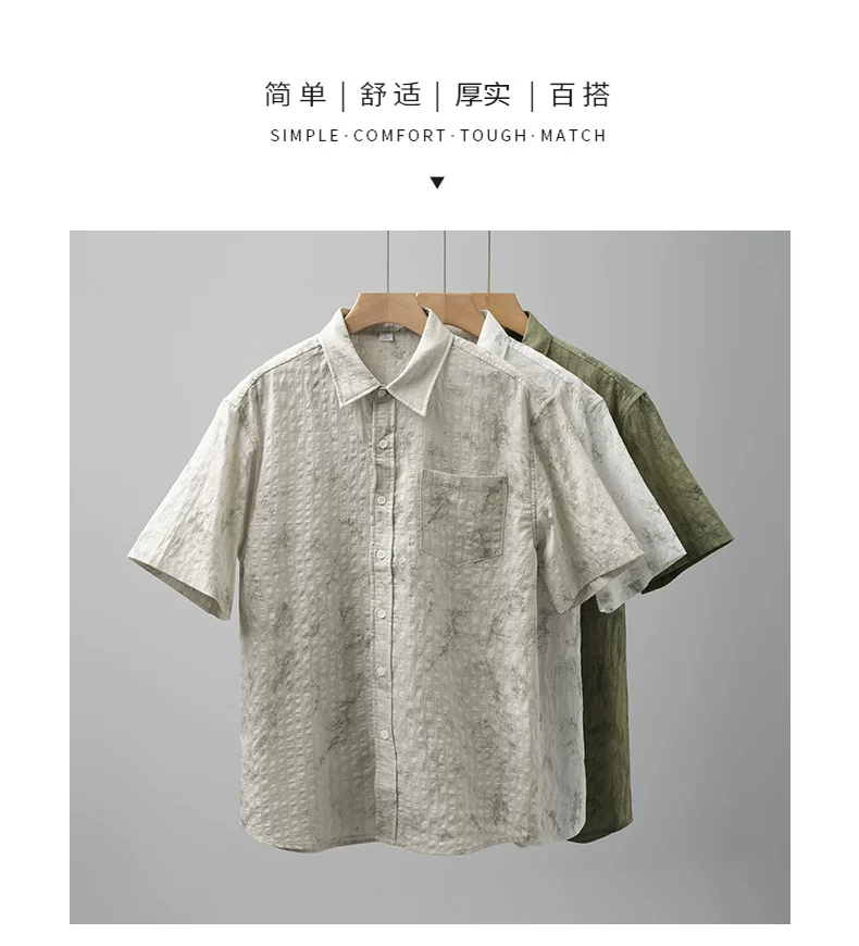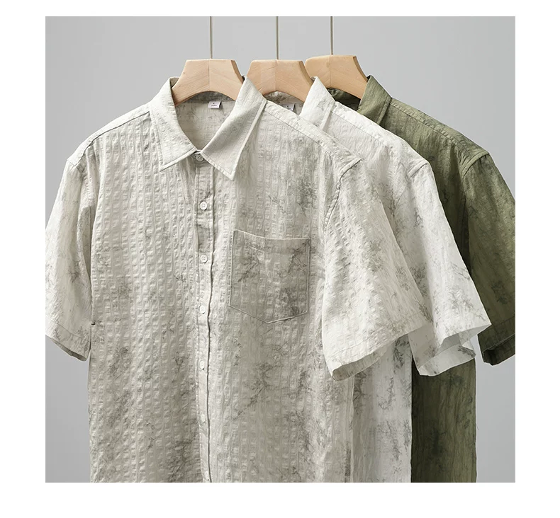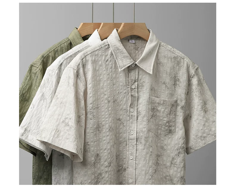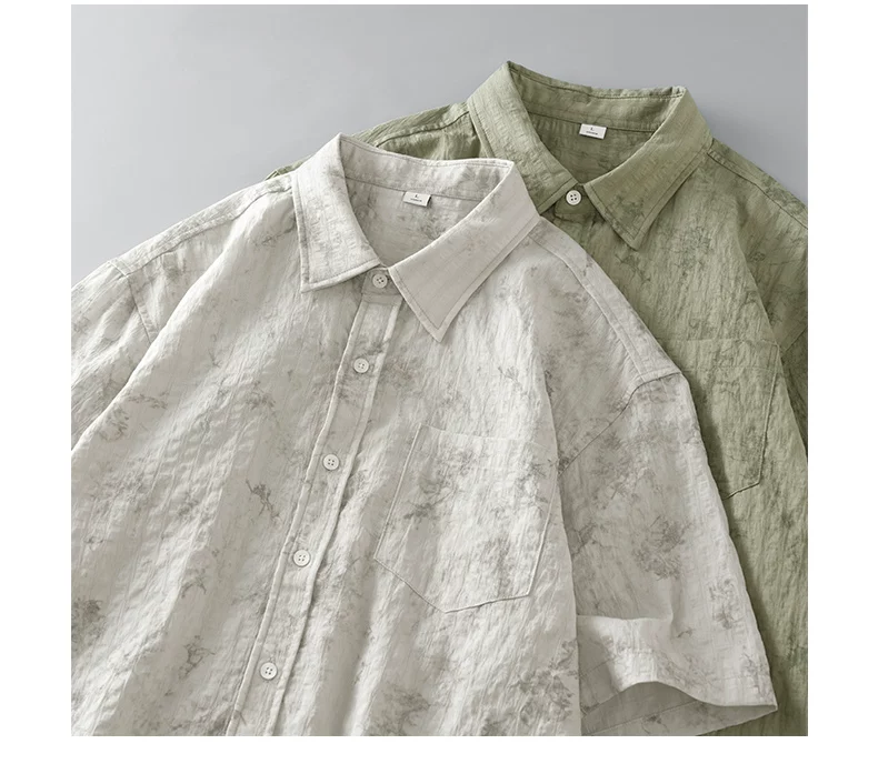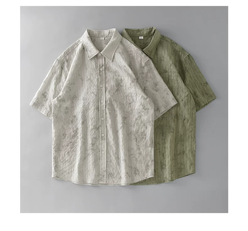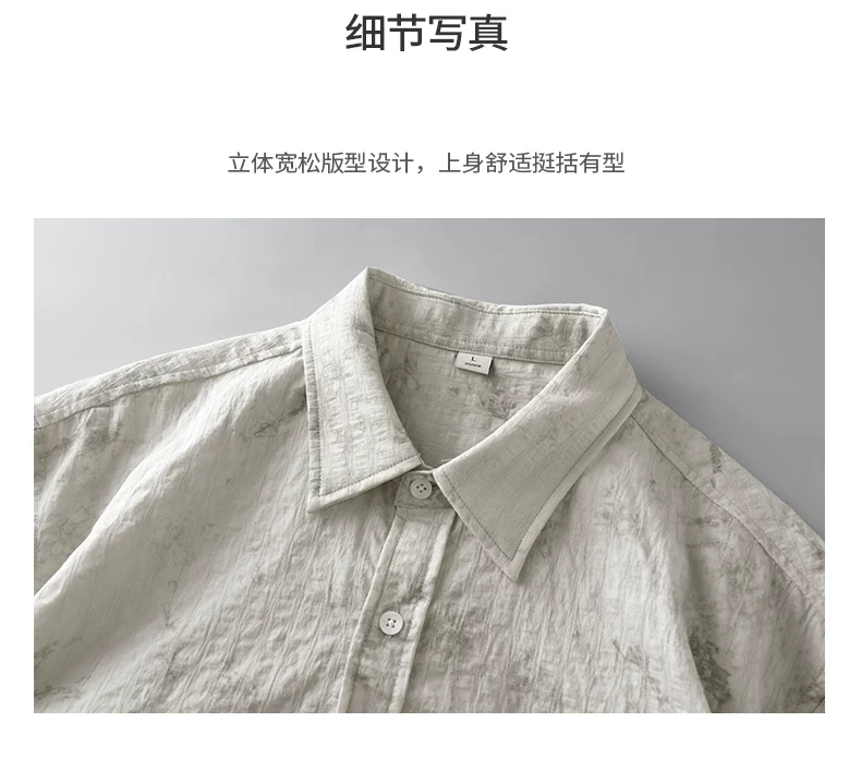 - Áo sơ mi ngắn tay phong cách Hawaii OMZM dành cho nam, áo sơ mi Tencel mát mẻ mùa hè, in tranh mực, áo sơ mi dáng rộng chống nhăn