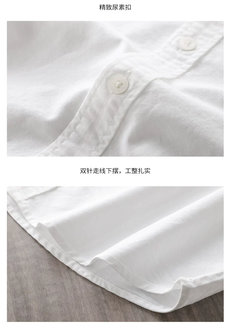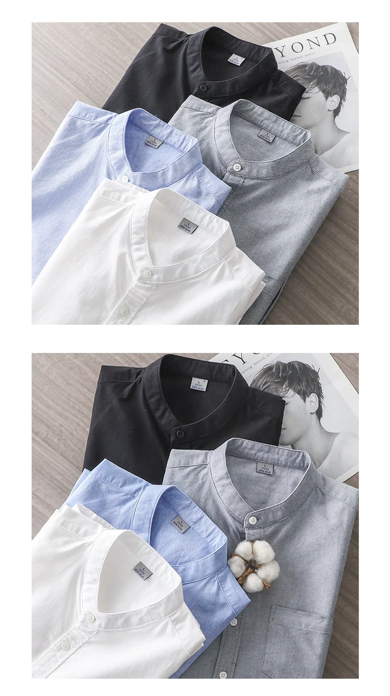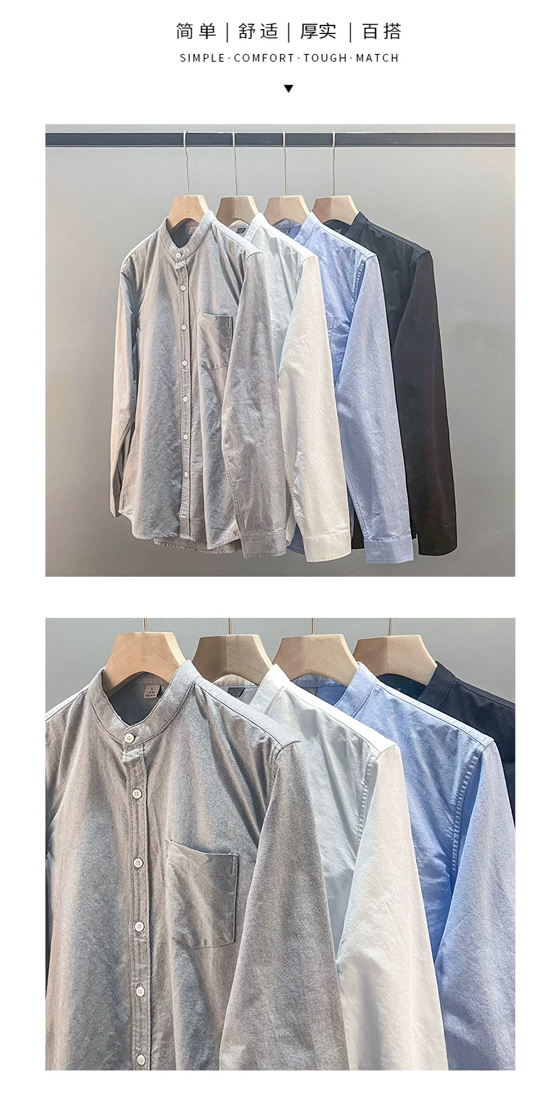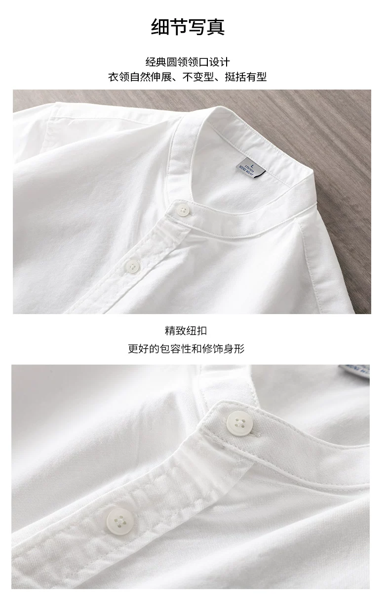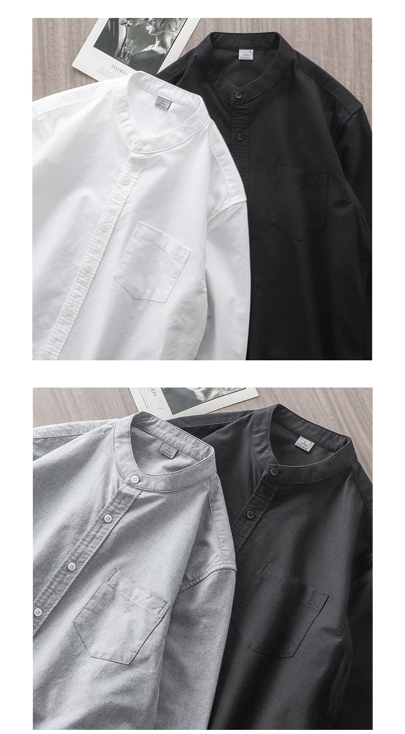- Áo sơ mi Oxford cotton nguyên chất cao cấp dành cho nam, tay dài, kiểu Trung Quốc mới xuân thu 2025, cổ đứng màu trắng, áo khoác cổ tròn.