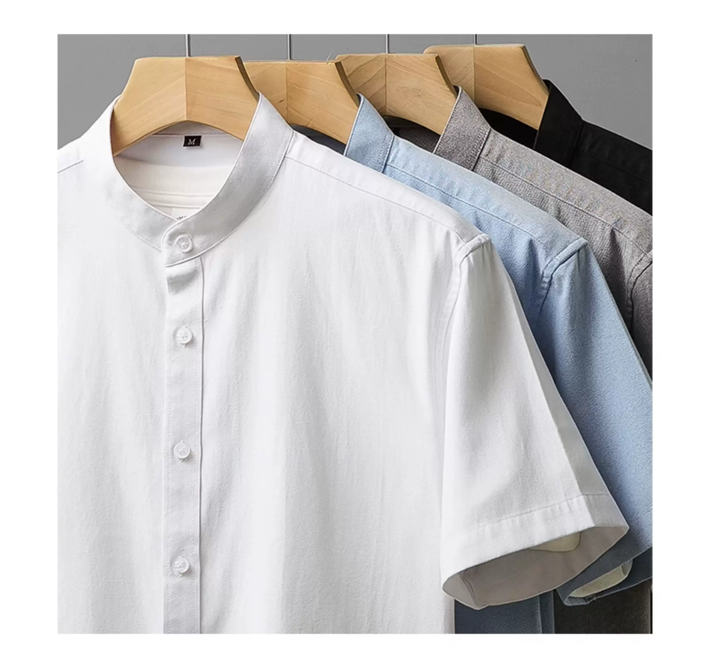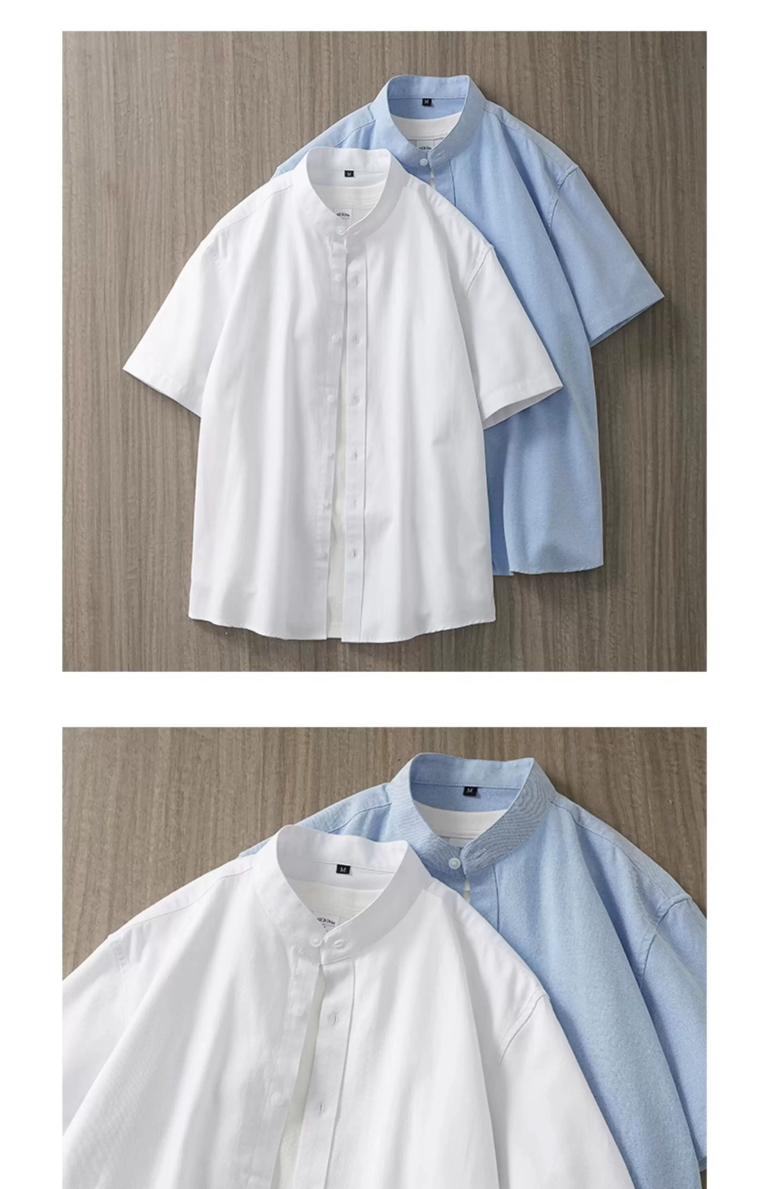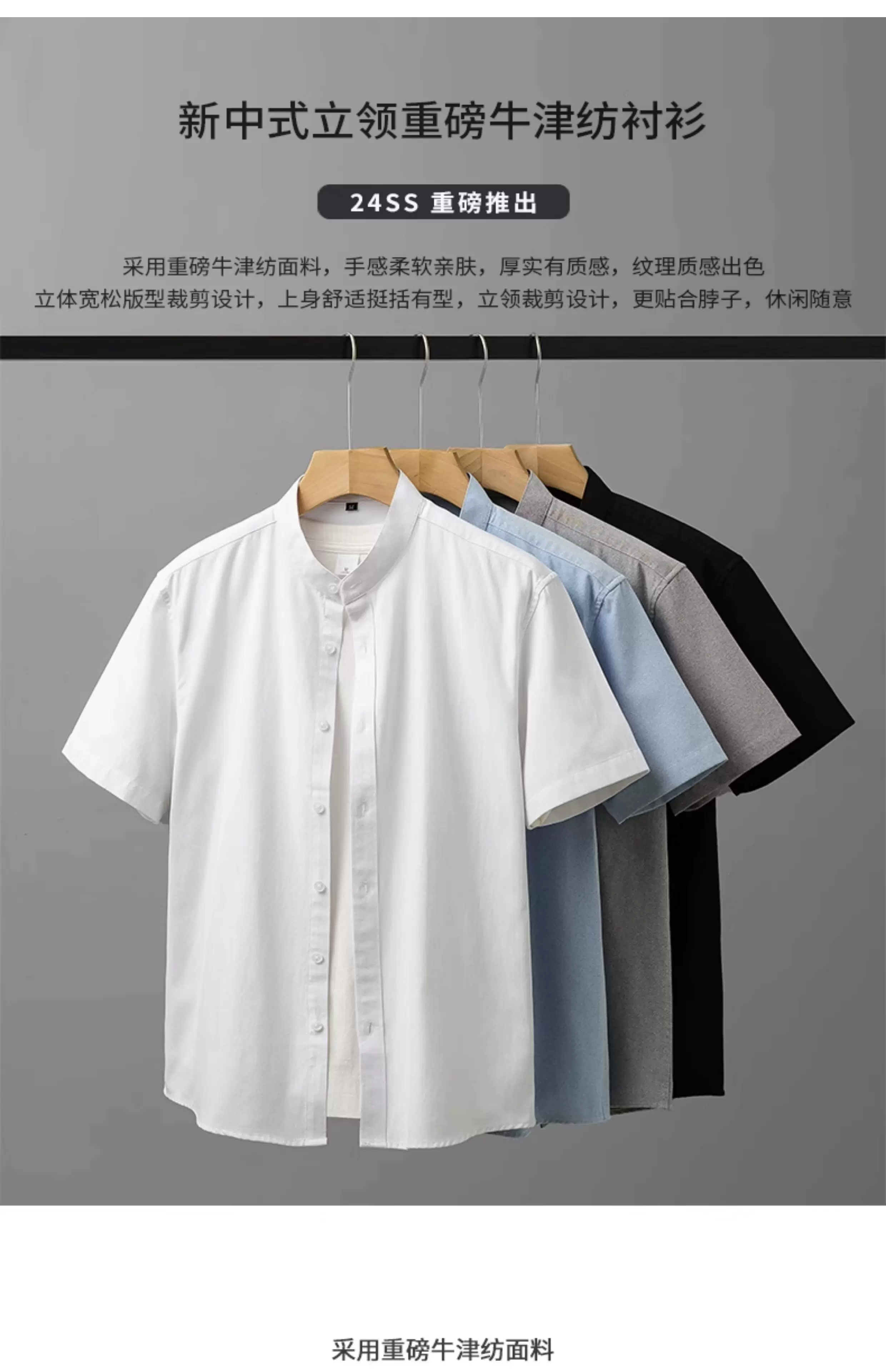 - Áo sơ mi Oxford hạng nặng OMZM dành cho nam, tay ngắn, áo sơ mi cổ đứng kiểu Trung Quốc mới mùa hè, áo sơ mi trắng giản dị cao cấp