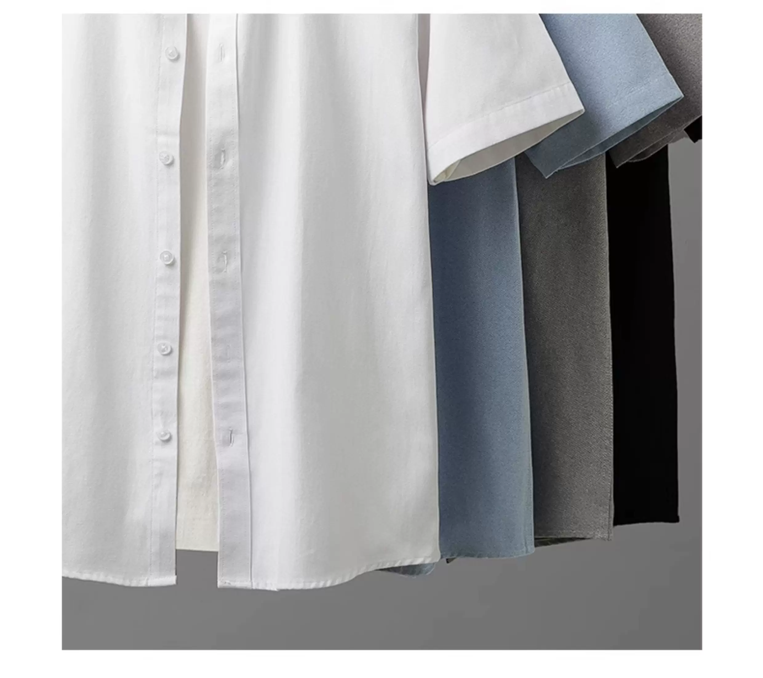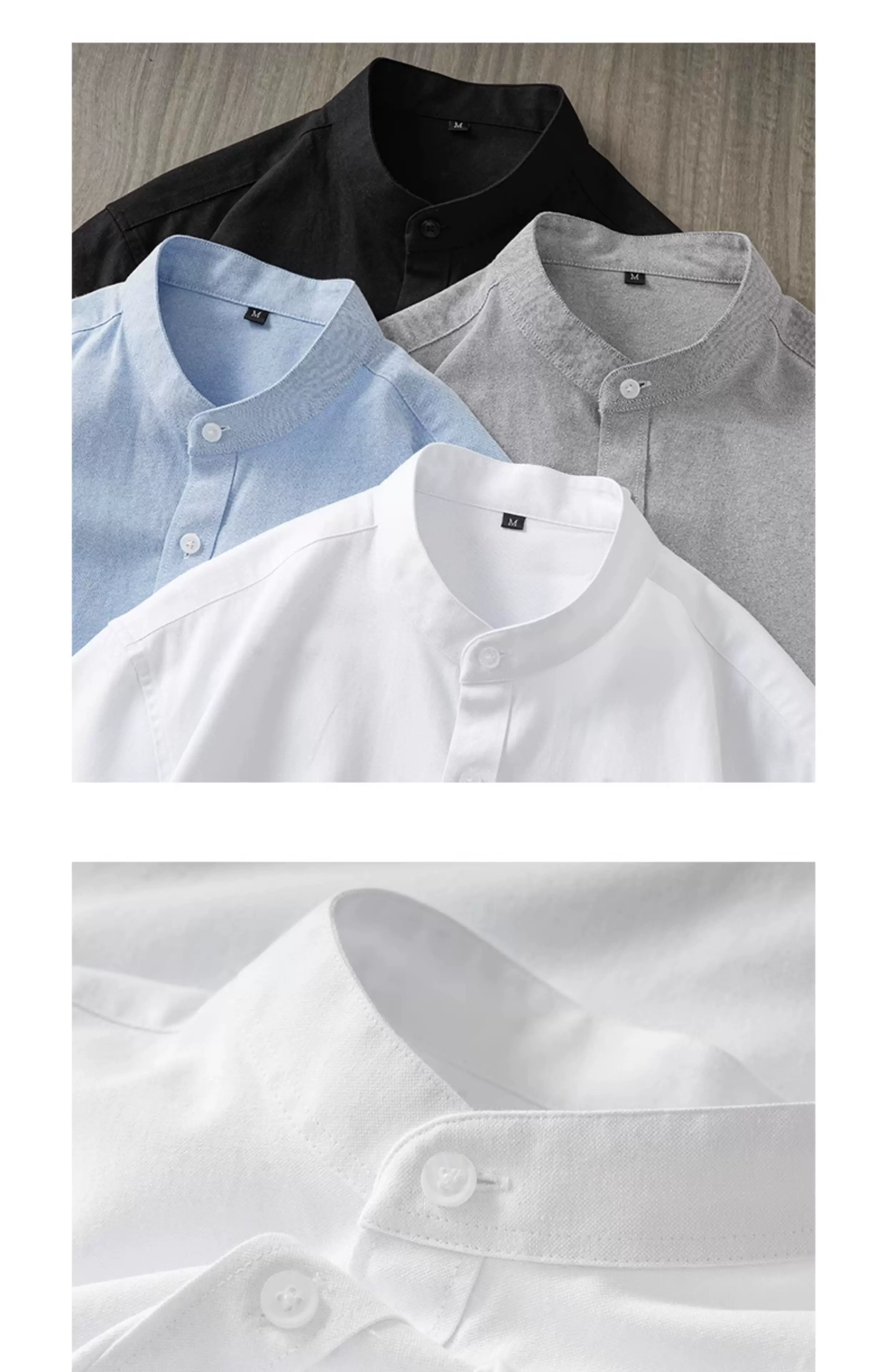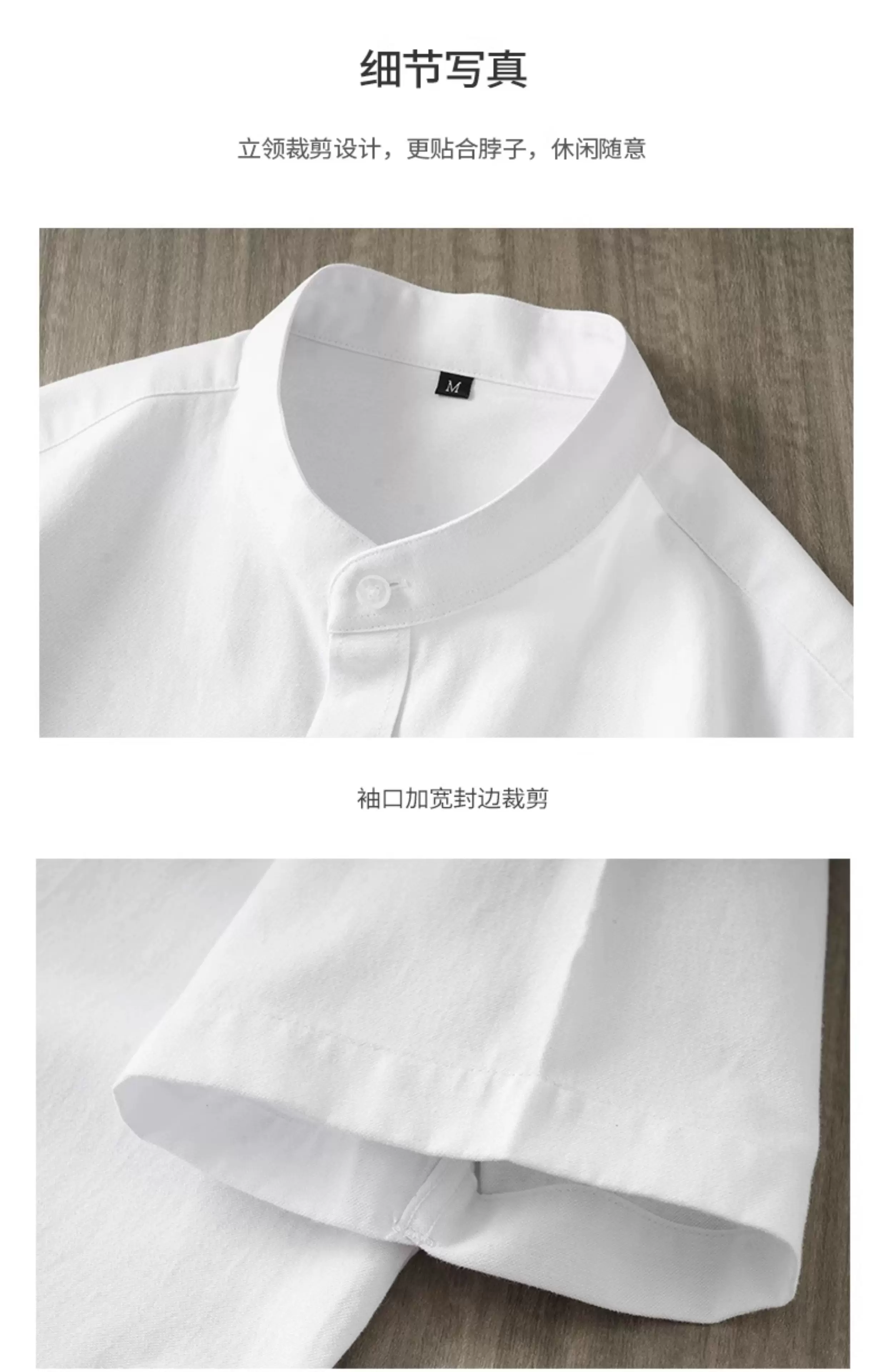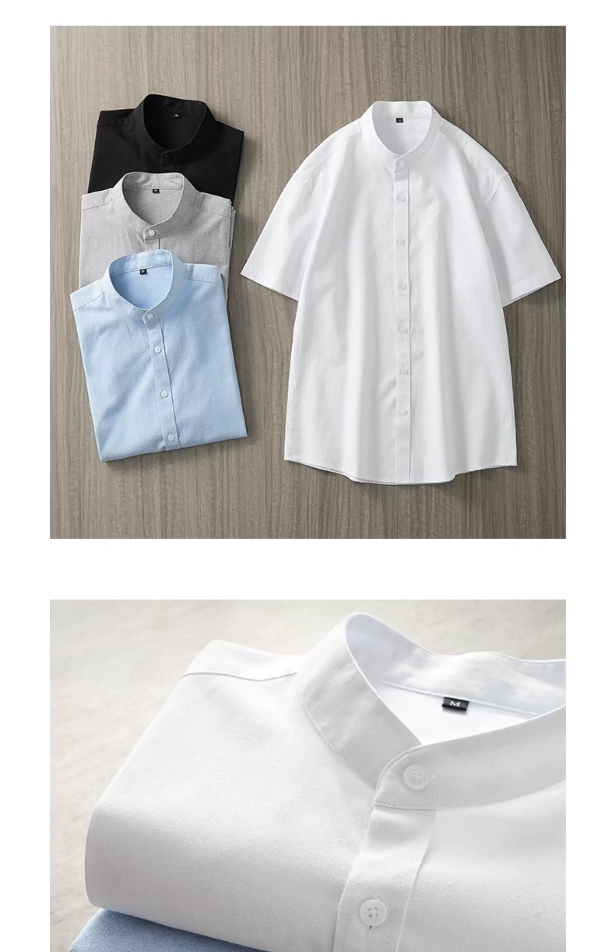 - Áo sơ mi Oxford hạng nặng OMZM dành cho nam, tay ngắn, áo sơ mi cổ đứng kiểu Trung Quốc mới mùa hè, áo sơ mi trắng giản dị cao cấp
