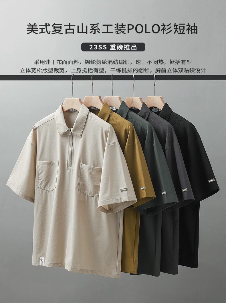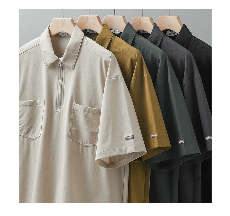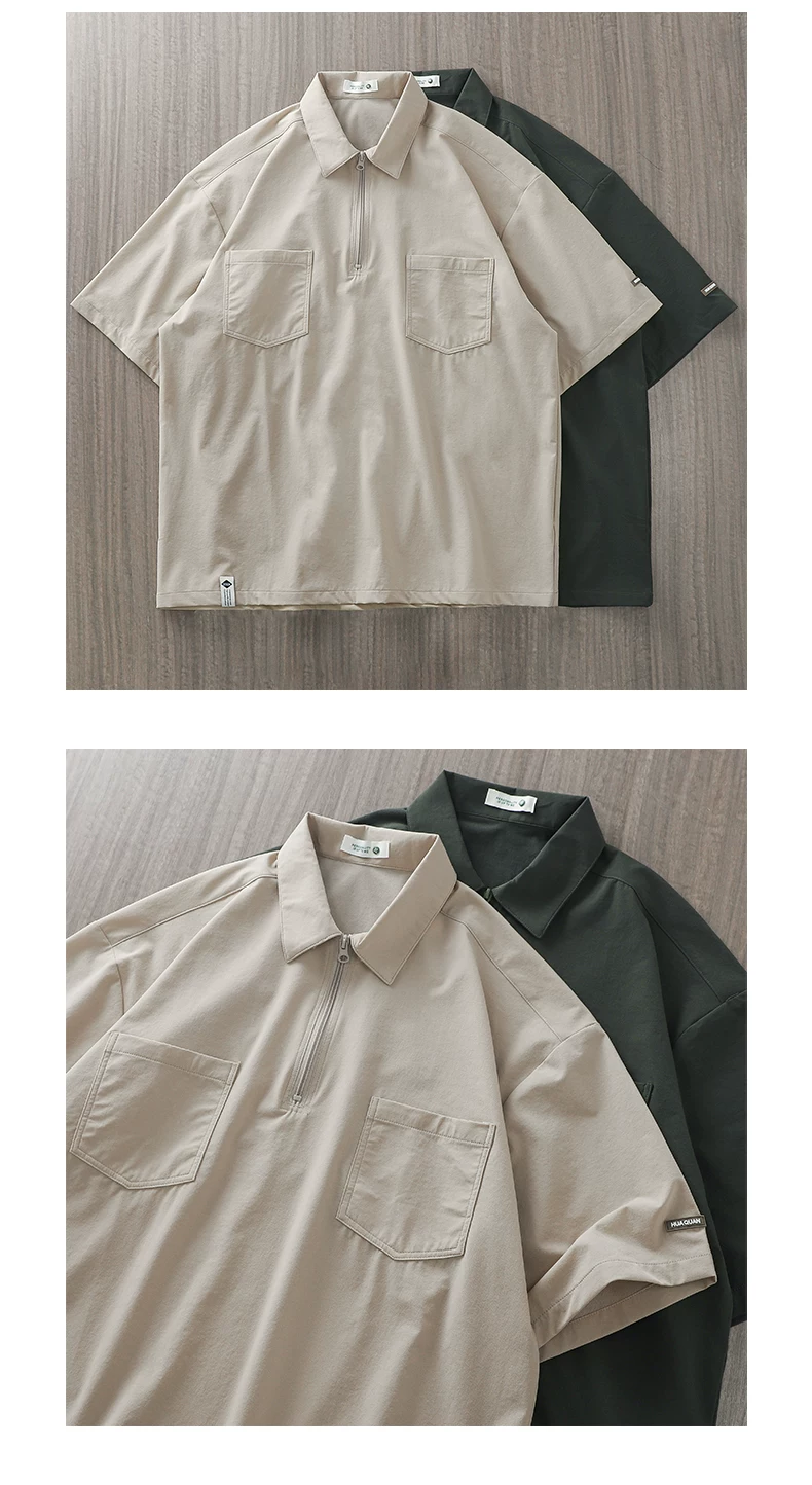 - Áo sơ mi POLO cổ điển phong cách núi OMZM dành cho nam, áo sơ mi ngắn tay mùa hè hợp thời trang có túi đựng đồ đi làm kiểu Nhật Bản