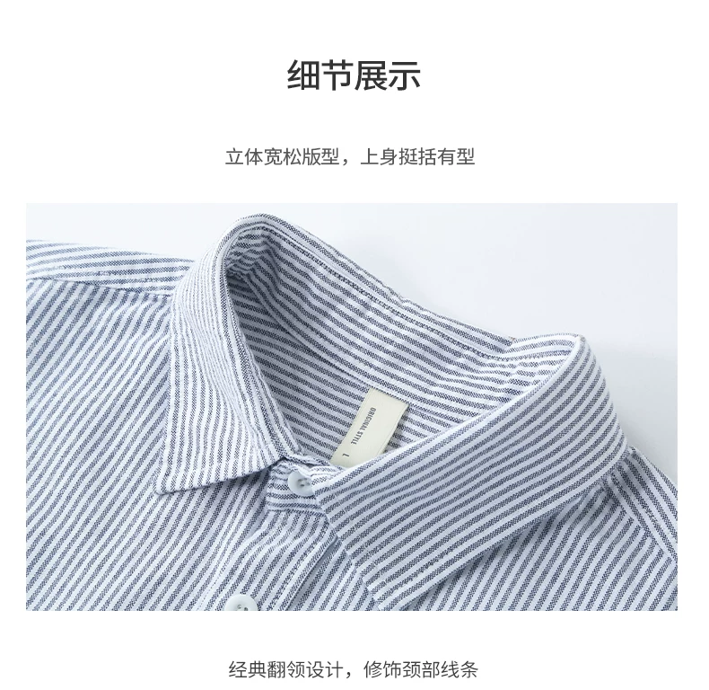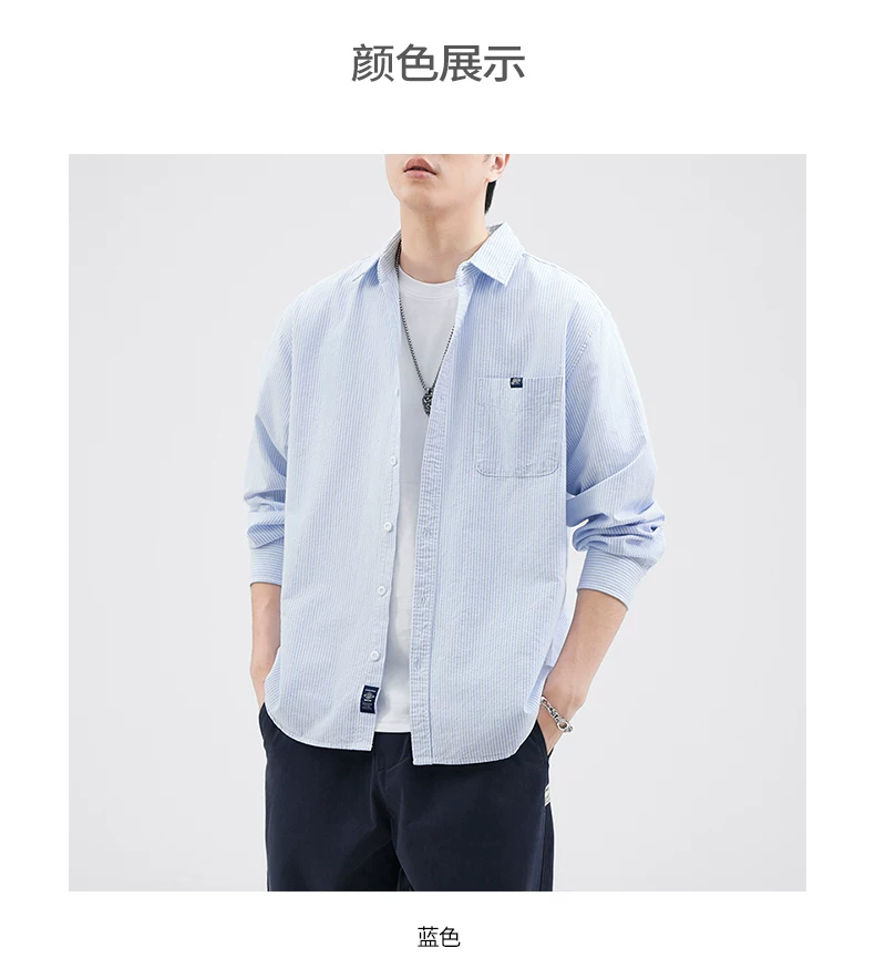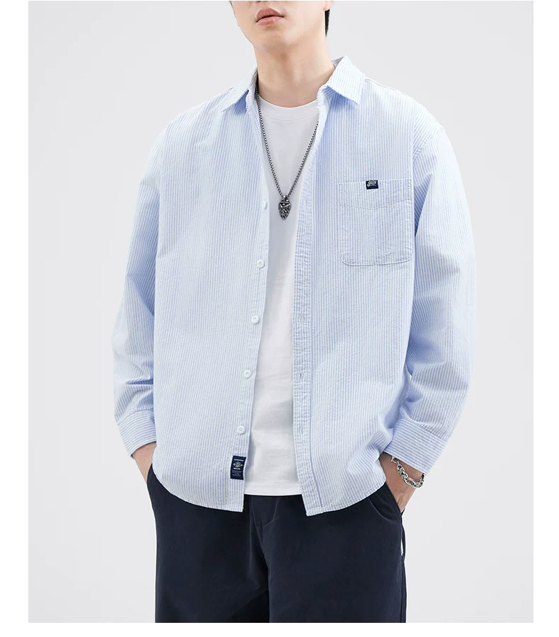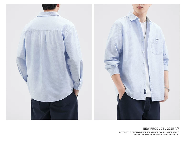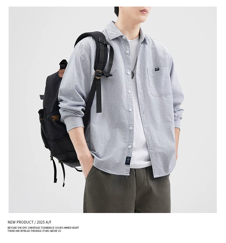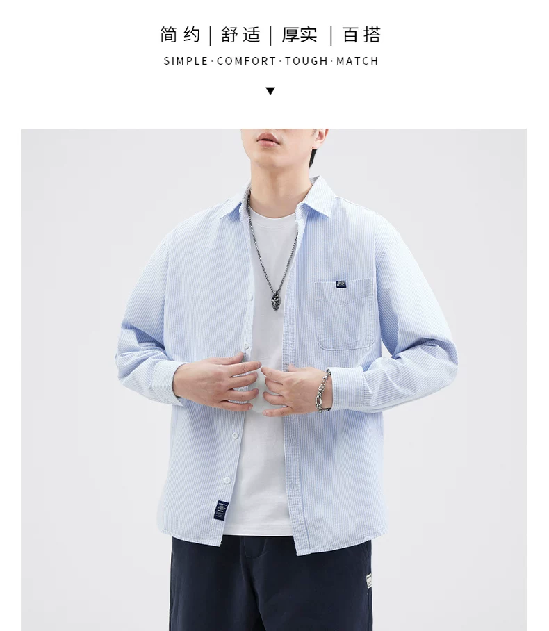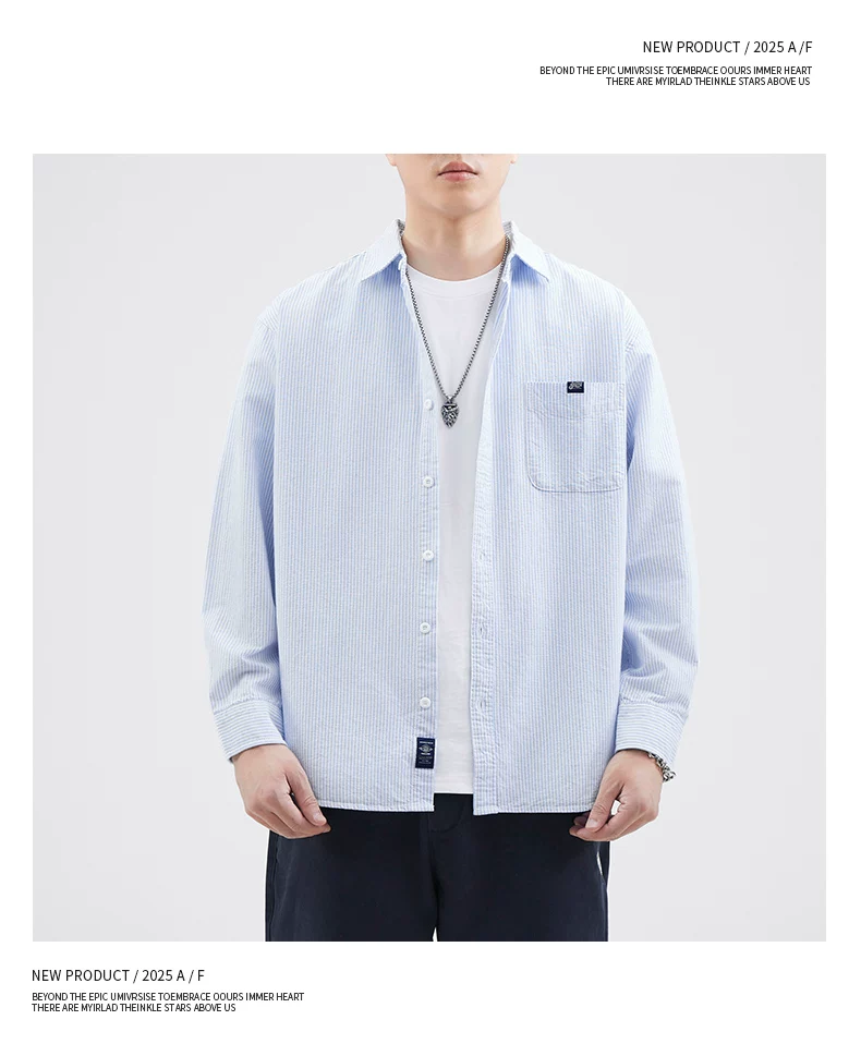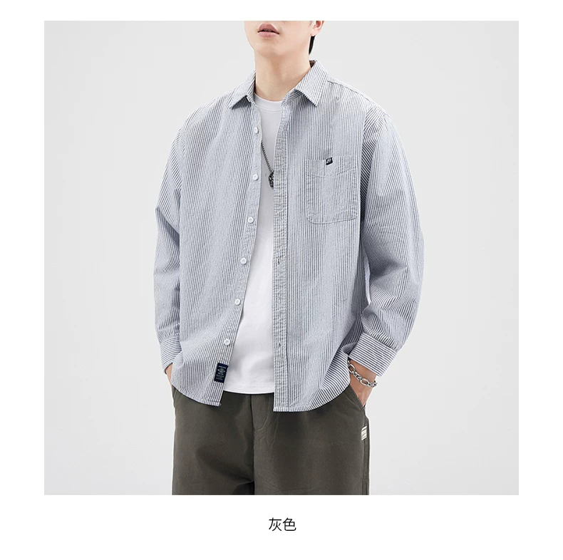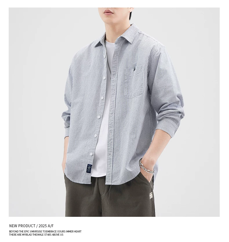 - Áo sơ mi sọc cotton nguyên chất hạng nặng OMZM dành cho nam, dài tay, mùa thu, cổ điển Nhật Bản, áo khoác sơ mi công sở rộng rãi dành cho thanh thiếu niên.