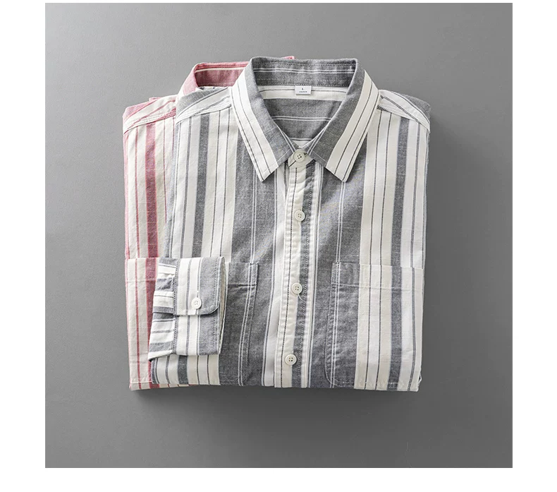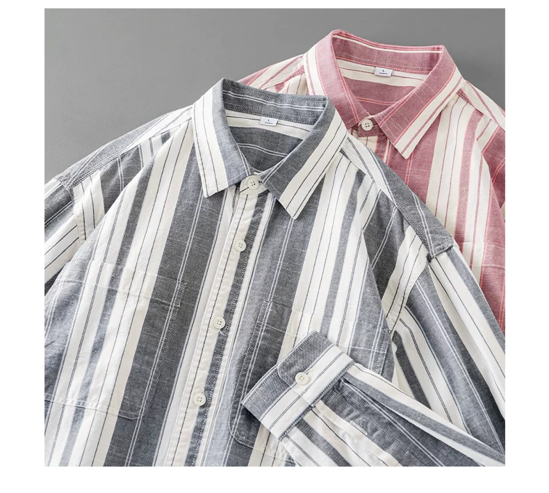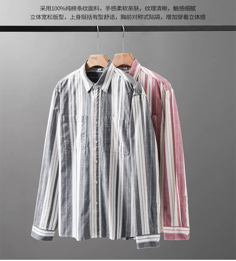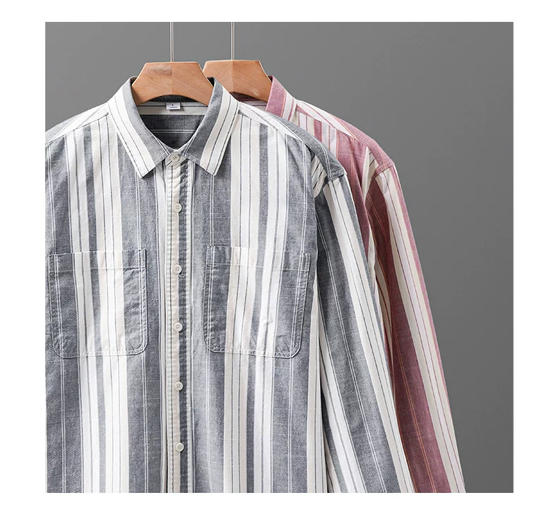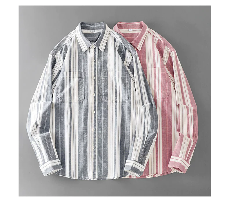 - Áo sơ mi sọc kiểu Mỹ OMZM dành cho nam, mùa thu đông, phong cách tiền cổ, áo sơ mi dài tay dáng rộng cổ điển, áo khoác sơ mi cao cấp.