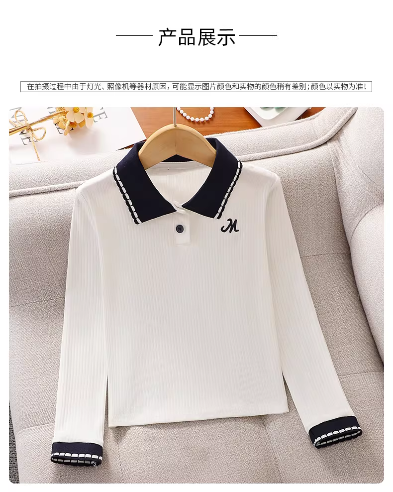 - Áo thun bé gái mặc lót mùa thu kiểu mới 2025, áo polo dài tay bé gái mùa xuân thu, áo bé gái ôm dáng đa năng
