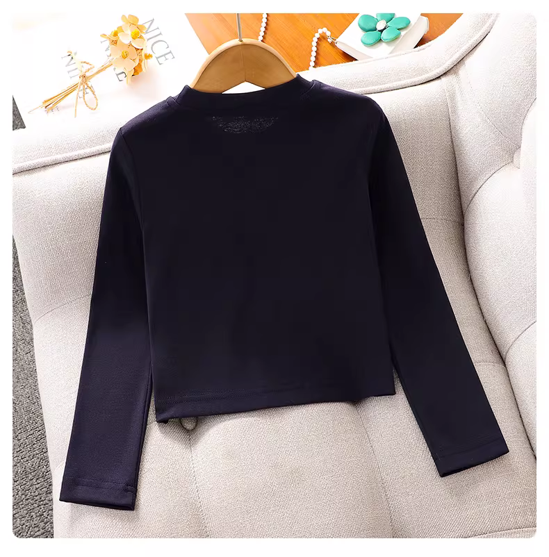 - Áo thun bé gái mùa thu, áo dài tay đa năng, kiểu dáng thường ngày, dành cho bé gái lớn, mẫu mới xuân thu 2025, áo lót ôm sát trẻ em