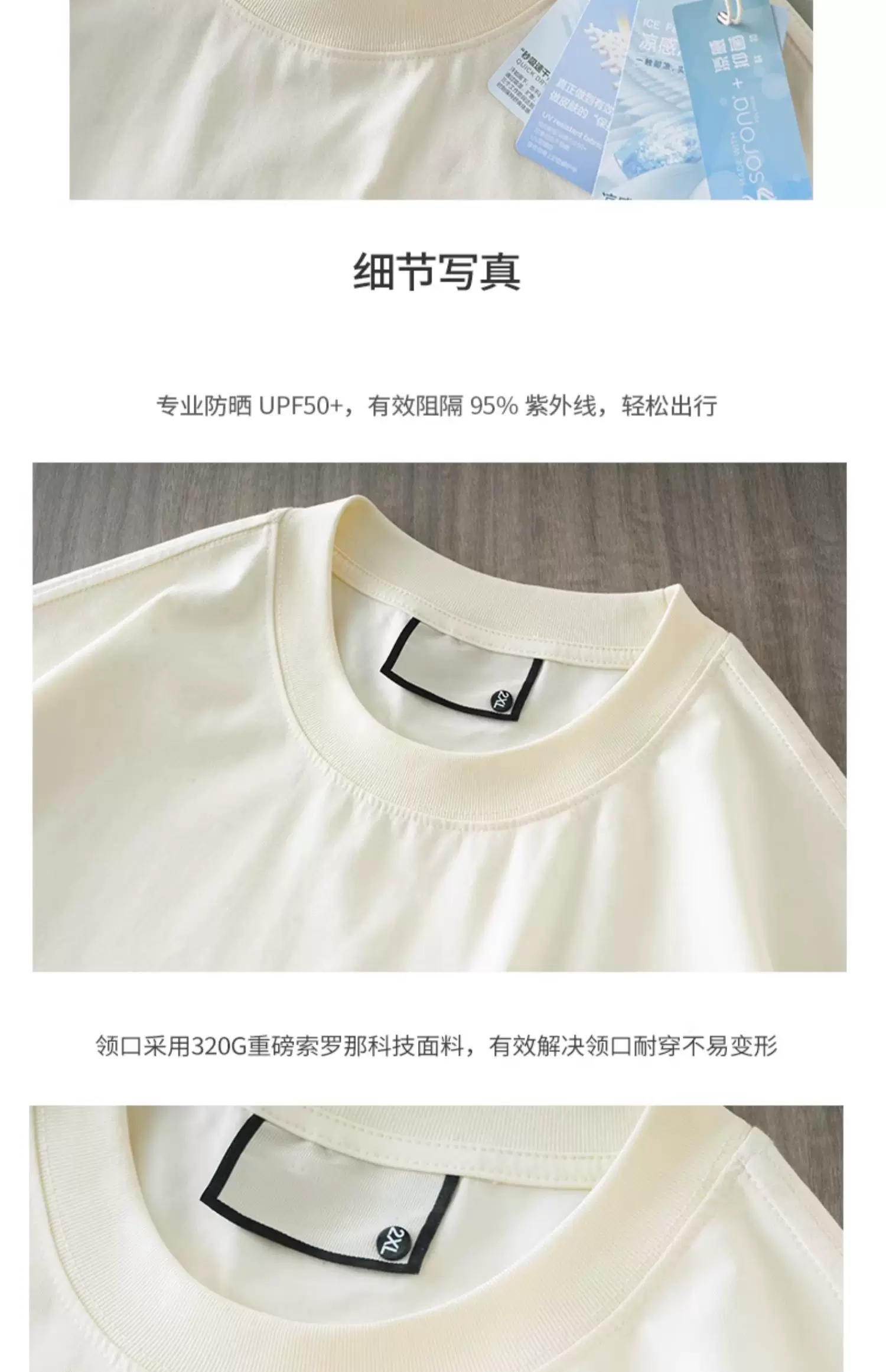 Áo thun chống nắng mát lạnh 320g dành cho nam và nữ, tay ngắn làm mát nhanh bằng vải lụa đá, áo thun mùa hè dày dặn thêu hình trái tim cổ tròn tay ngắn dành cho cặp đôi