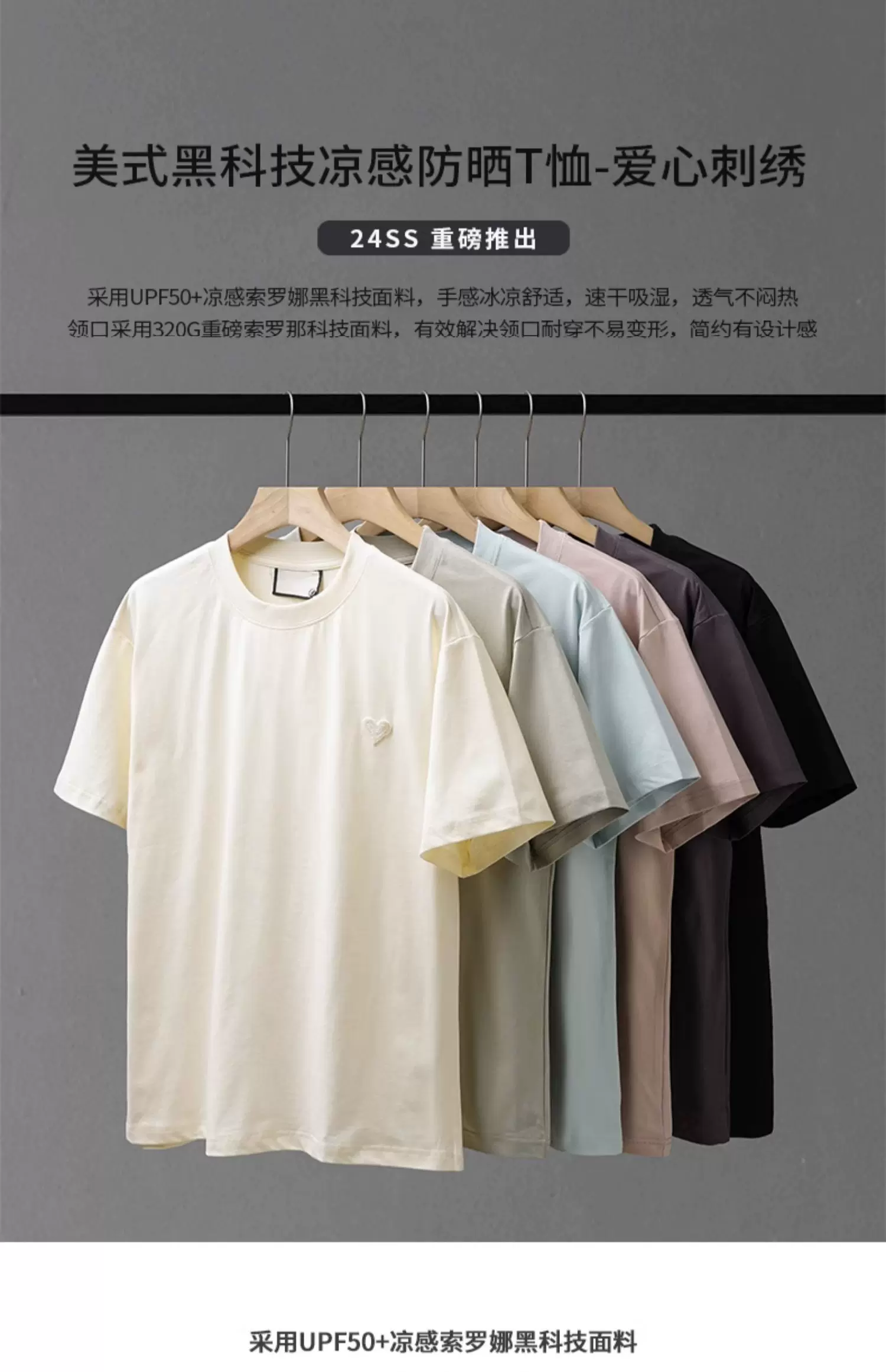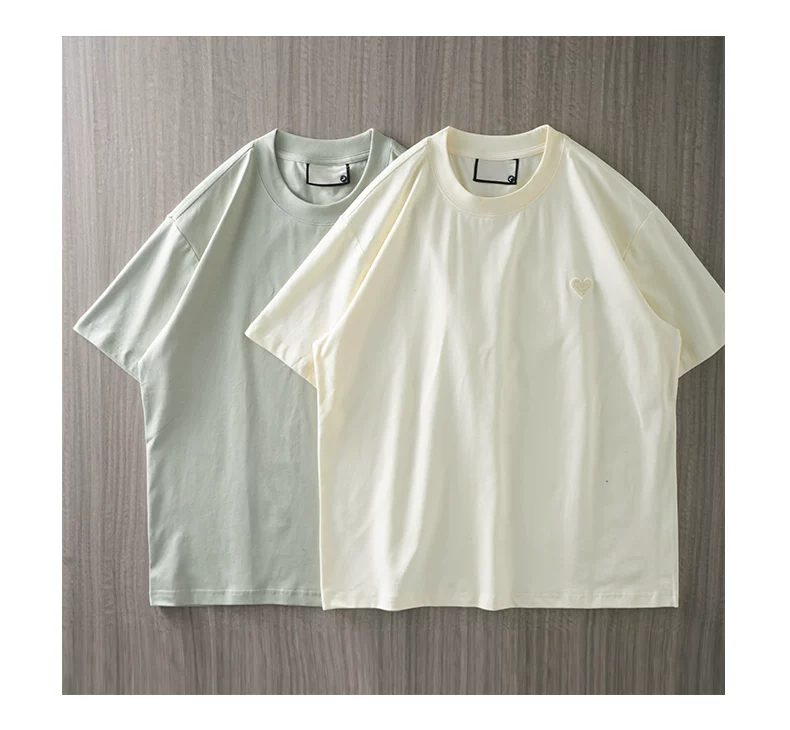 - Áo thun chống nắng mát lạnh 320g dành cho nam và nữ, tay ngắn làm mát nhanh bằng vải lụa đá, áo thun mùa hè dày dặn thêu hình trái tim cổ tròn tay ngắn dành cho cặp đôi