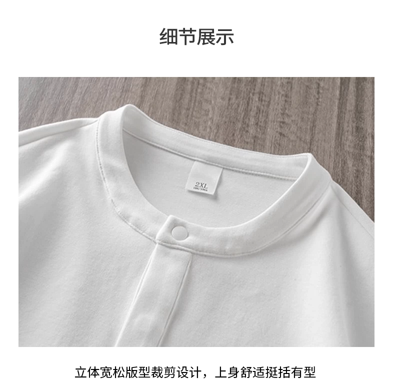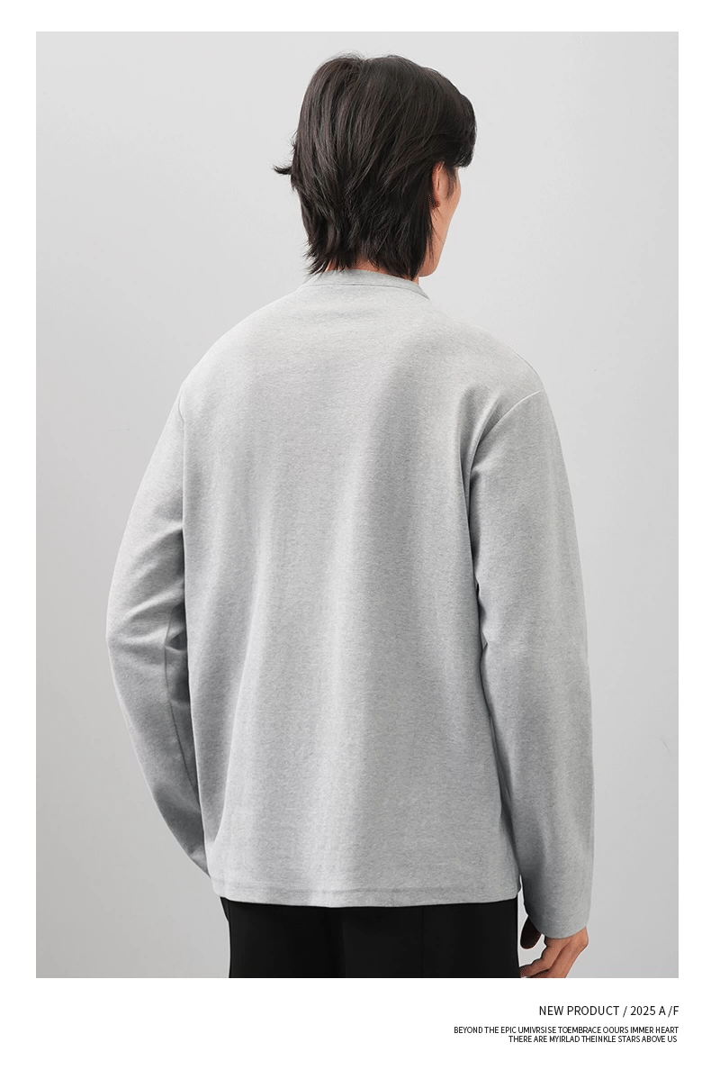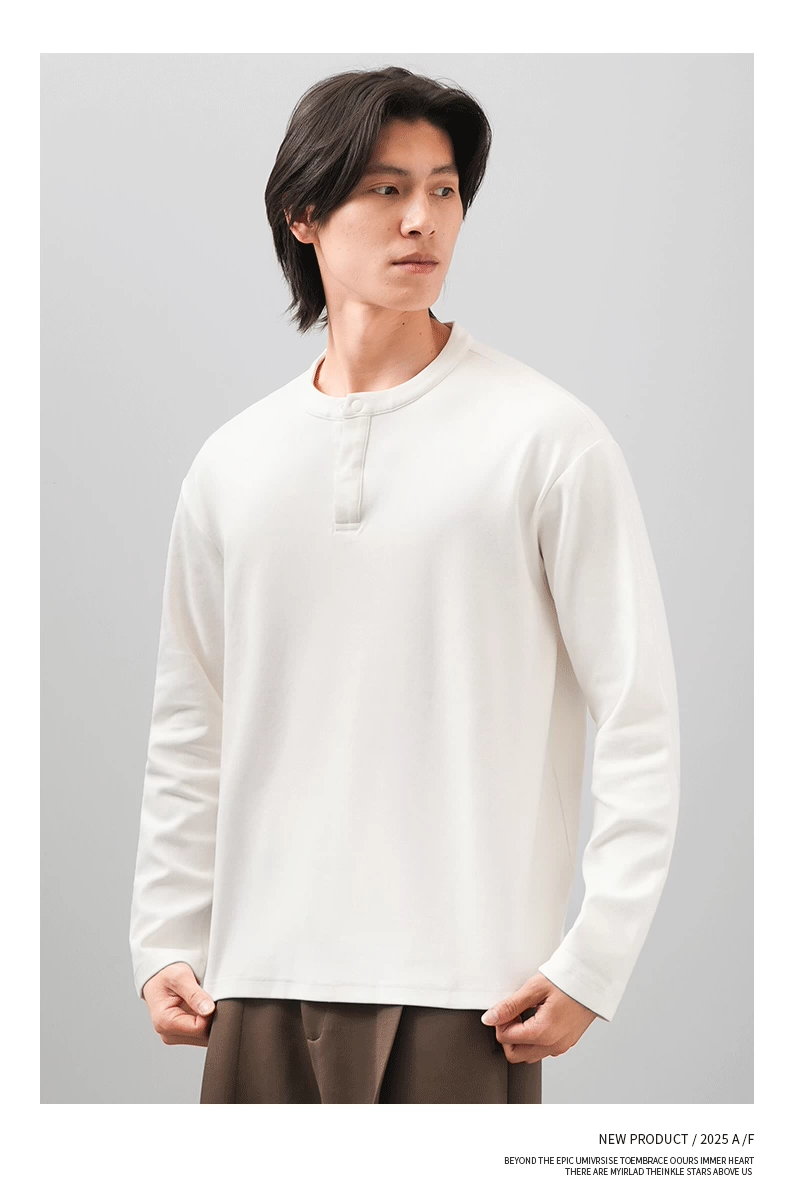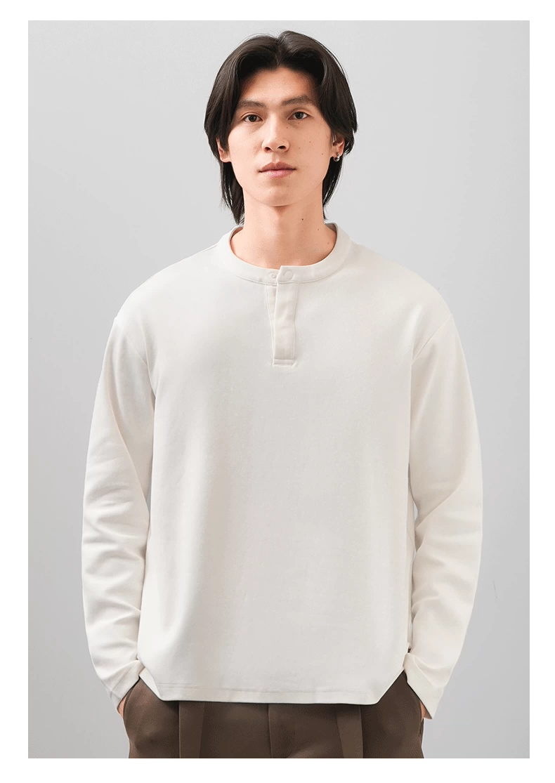- Áo thun cổ henley hạng nặng OMZM300G dành cho nam, tay dài, áo nỉ đơn giản phong cách Mỹ mùa thu, áo sơ mi trắng phong cách tiền cổ điển.