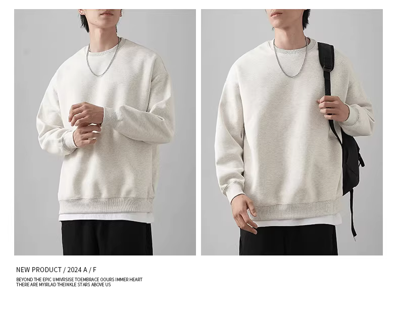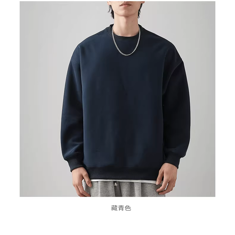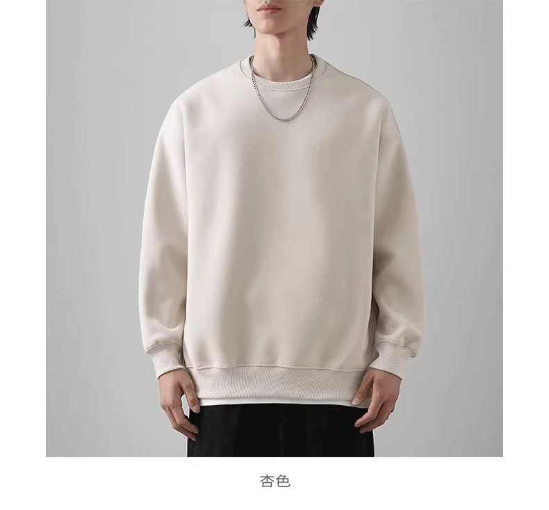 - Áo thun cổ tròn hạng nặng 460G kiểu Mỹ dành cho nam, áo sơ mi dày màu trơn mùa xuân và mùa thu, áo khoác dài tay không mũ trùm đầu dành cho nam