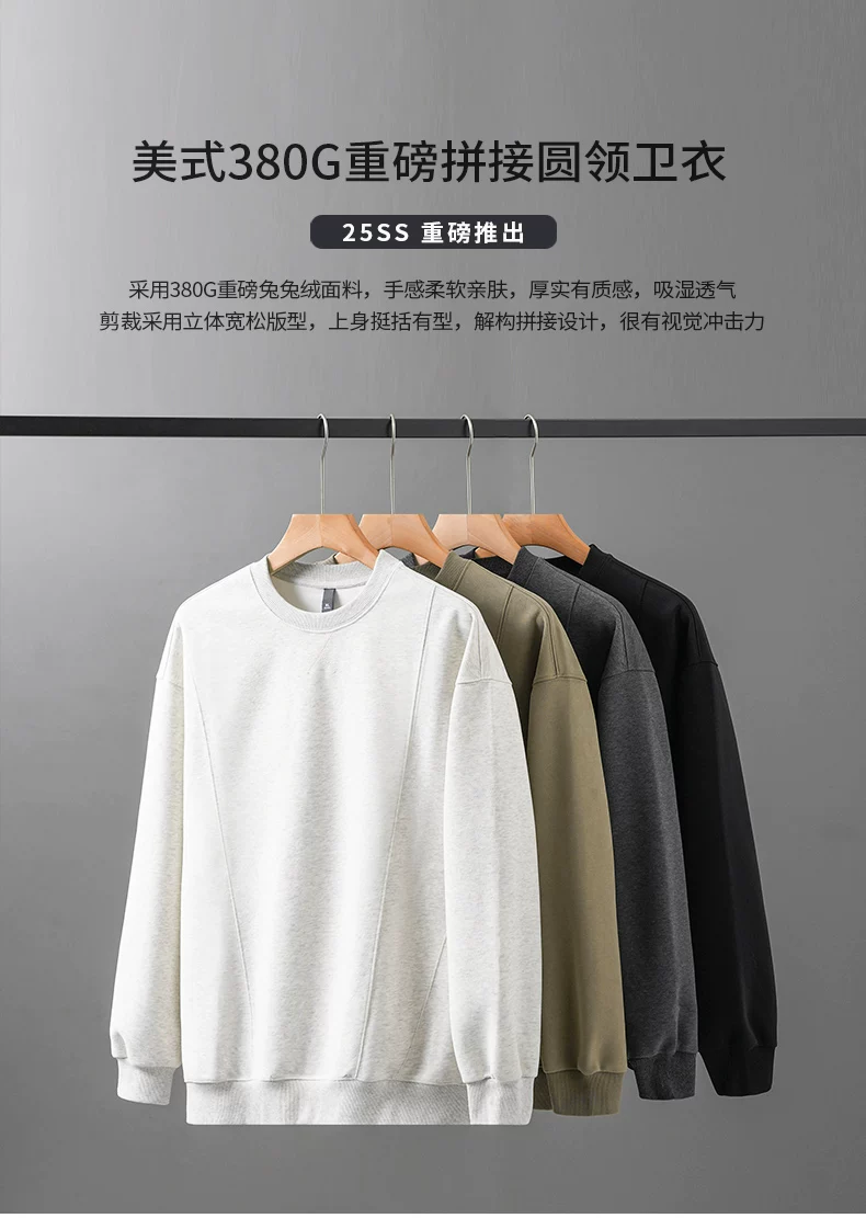 - Áo thun cổ tròn hạng nặng OMZM380G dành cho nam, áo thun chắp vá phong cách Mỹ mùa thu, áo khoác không mũ dành cho giới trẻ
