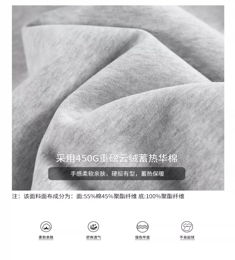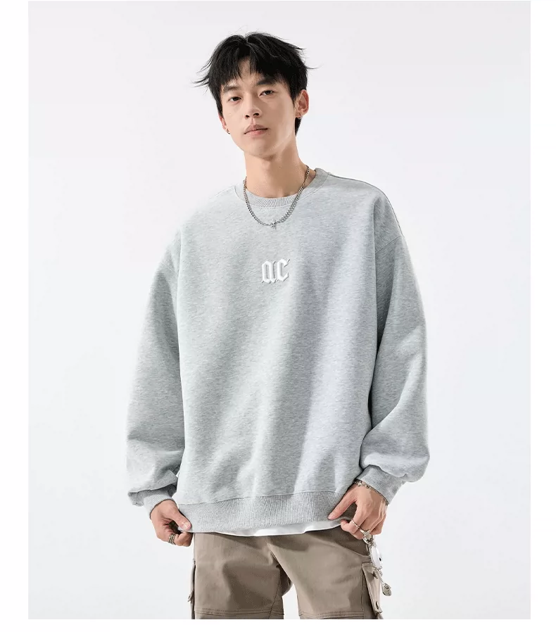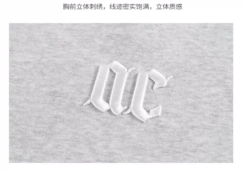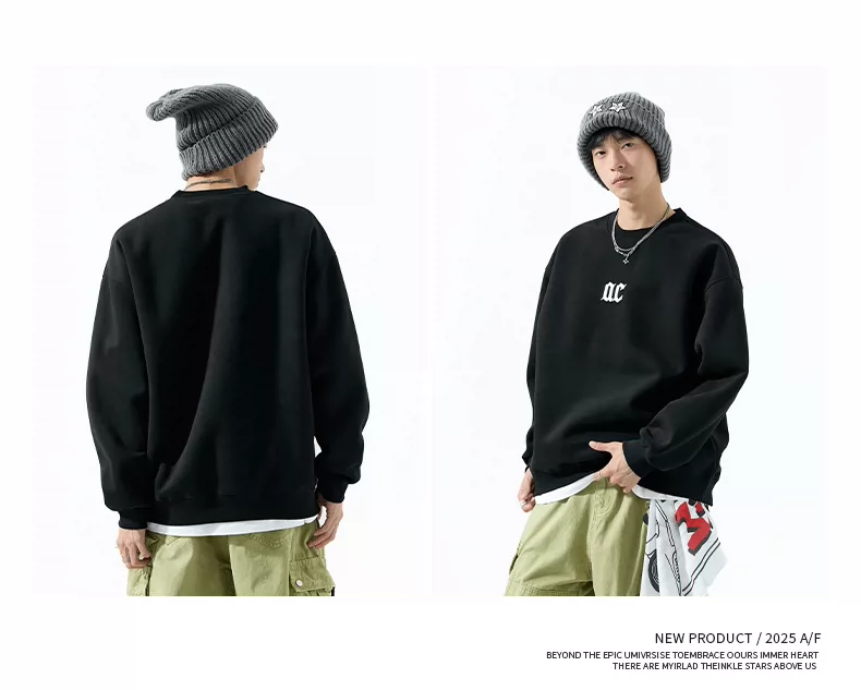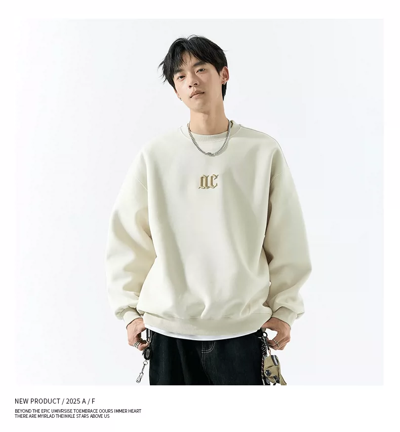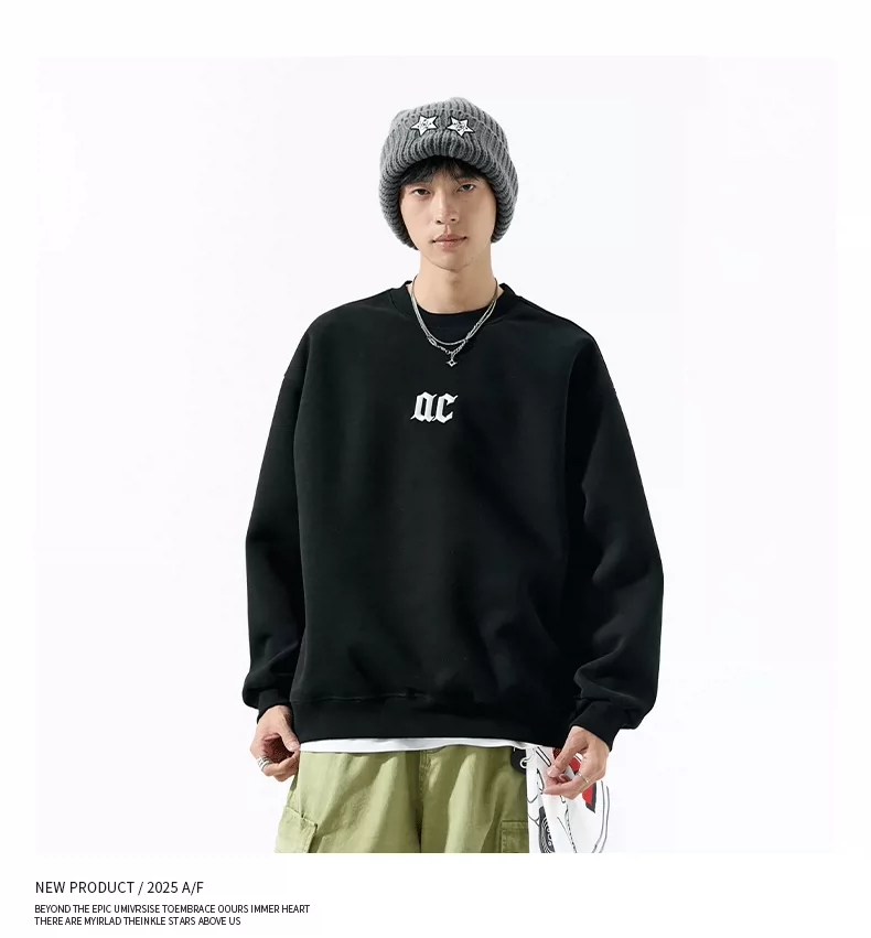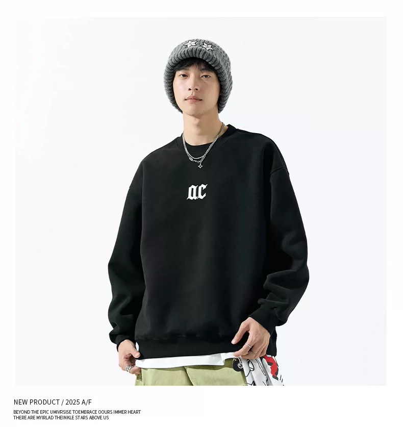 - Áo thun cổ tròn hạng nặng OMZM450G dành cho nam, mùa thu phong cách Mỹ thêu chữ lớp bên trong áo sơ mi không có mũ trùm đầu